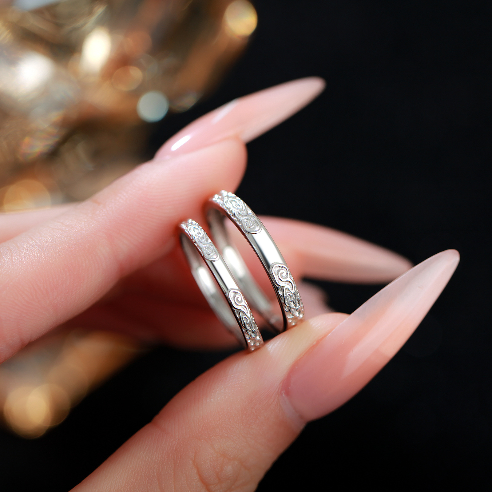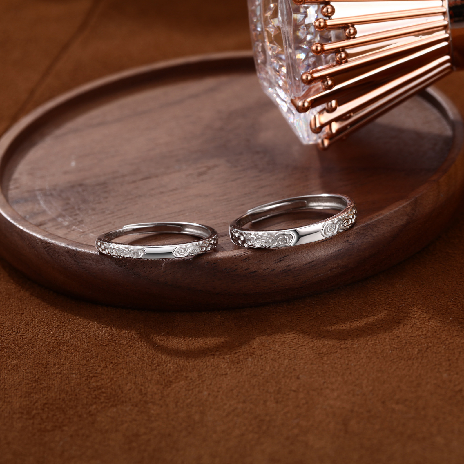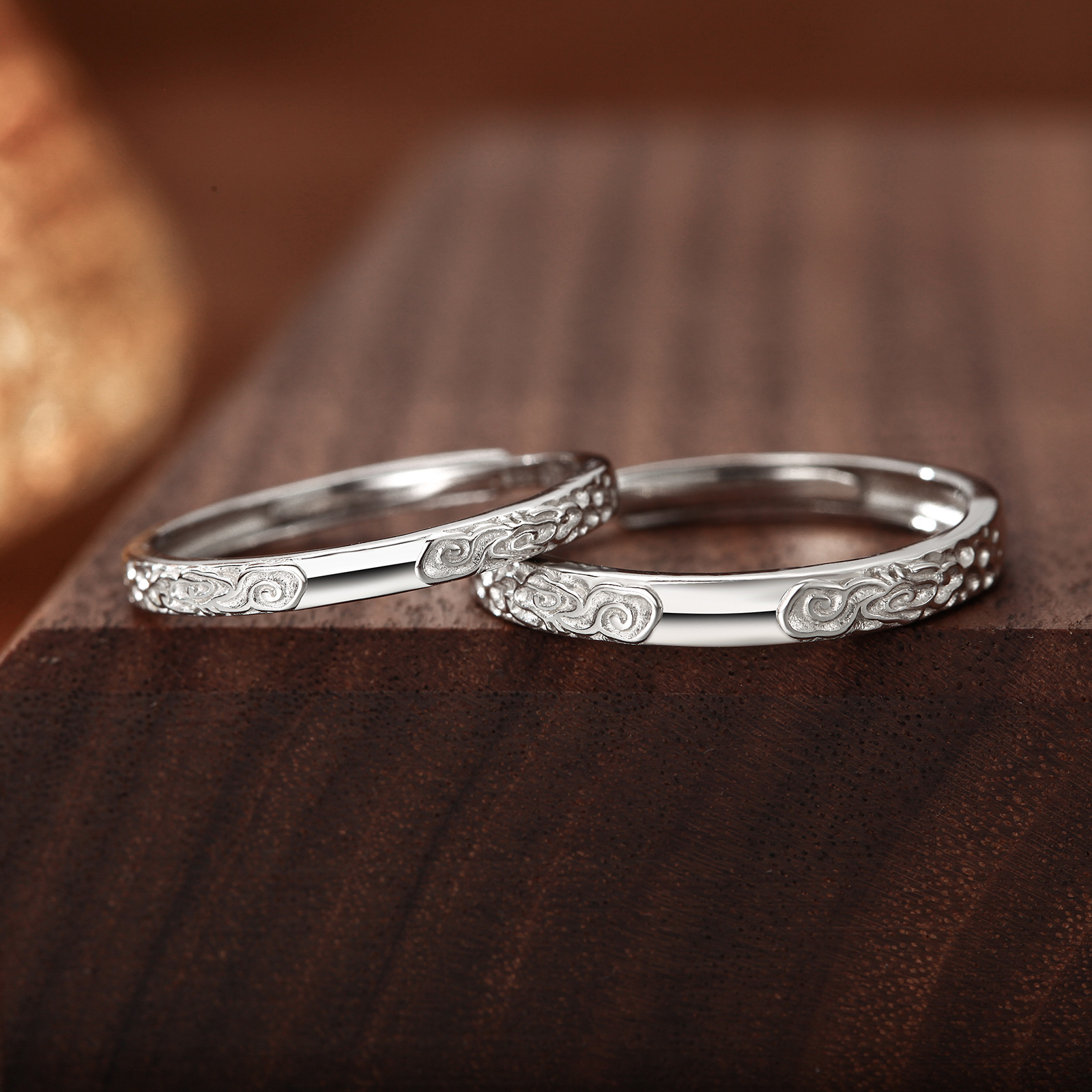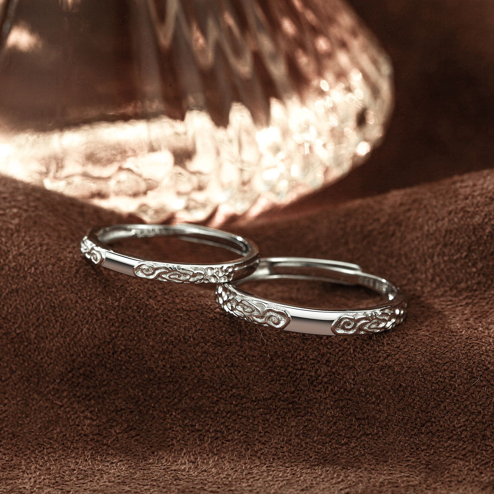 S999纯银足银情侣戒指女男轻奢祥云指环节日高级感情侣对戒礼物
