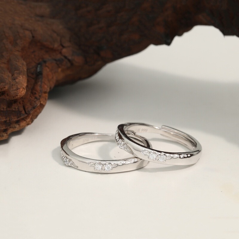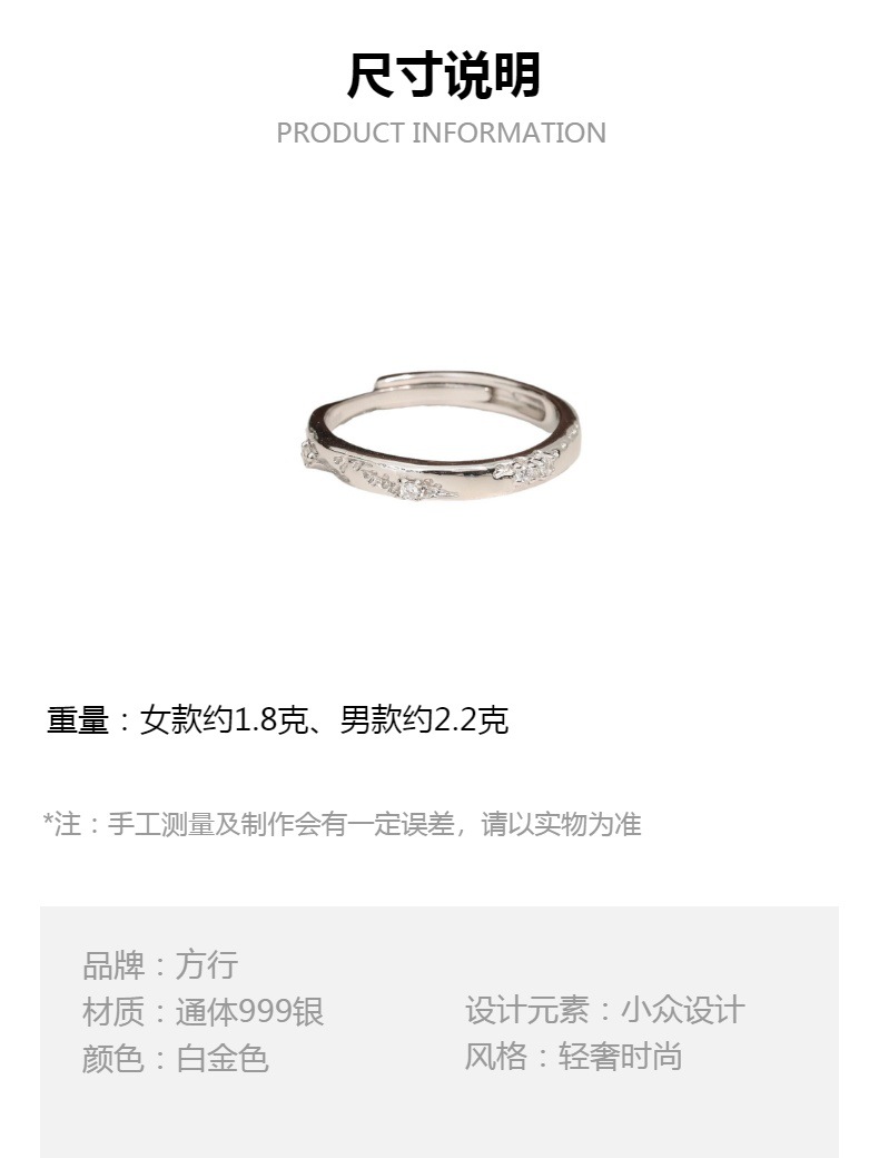 方行冰川情侣对戒S999纯银小众设计感轻奢冷淡风男女戒指开口一对
