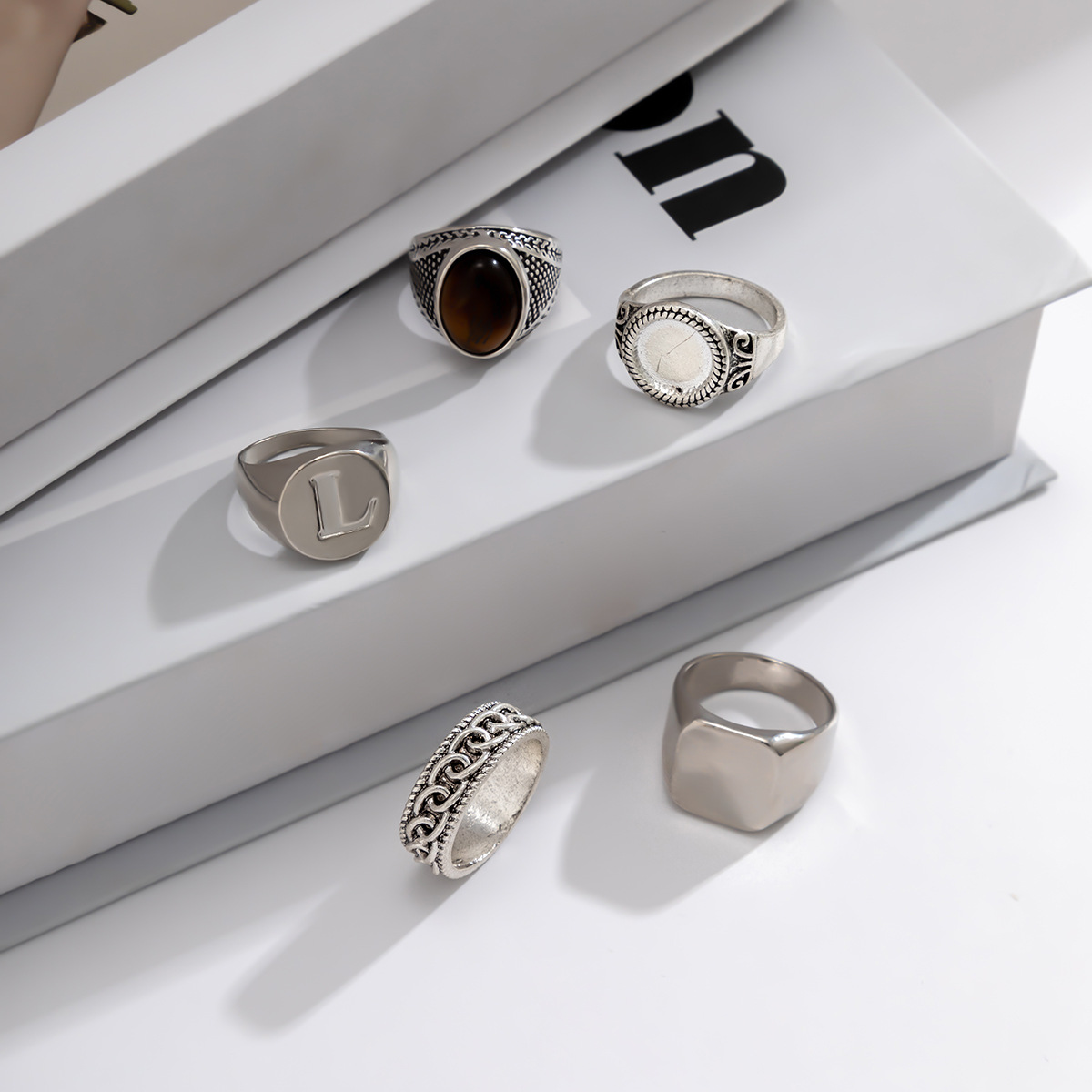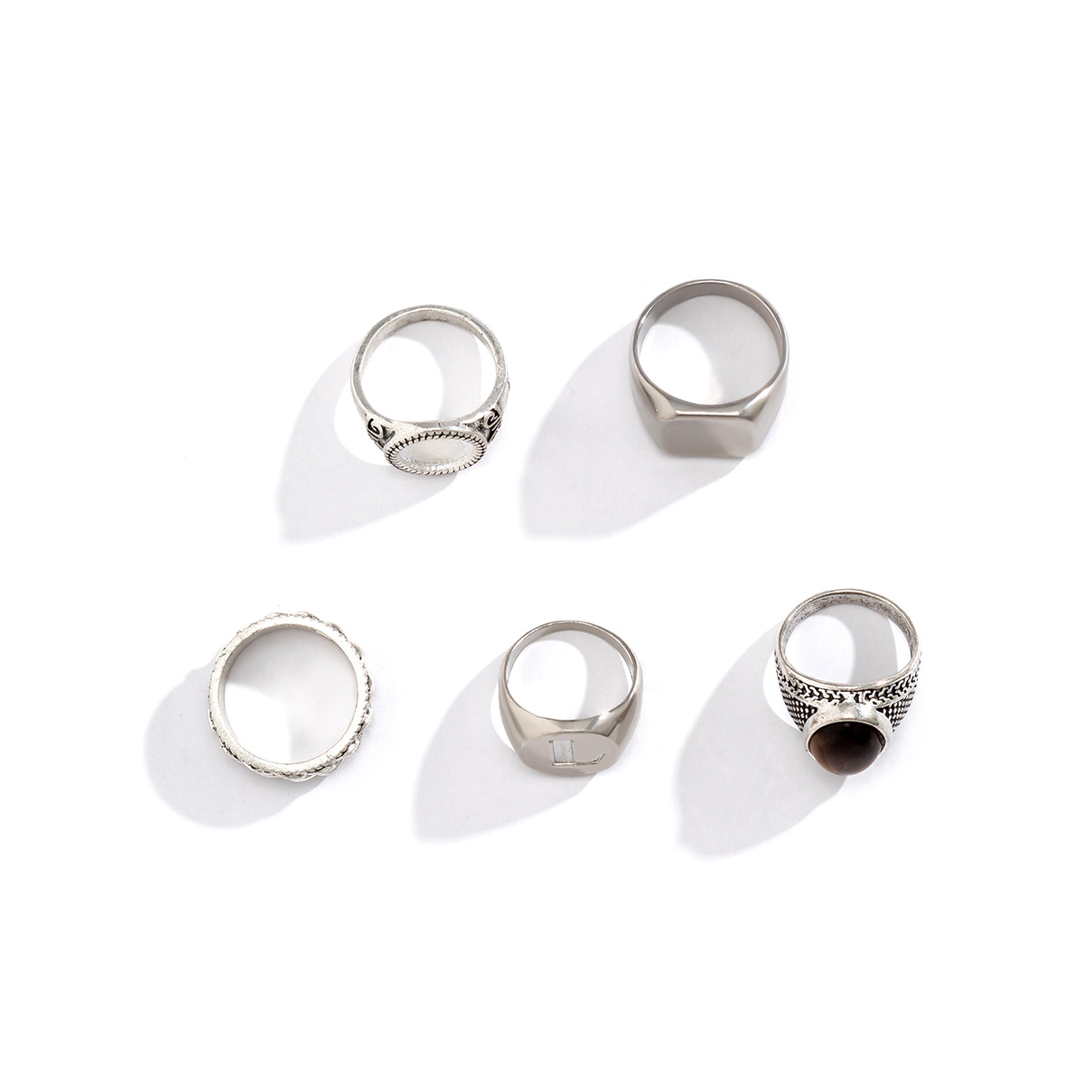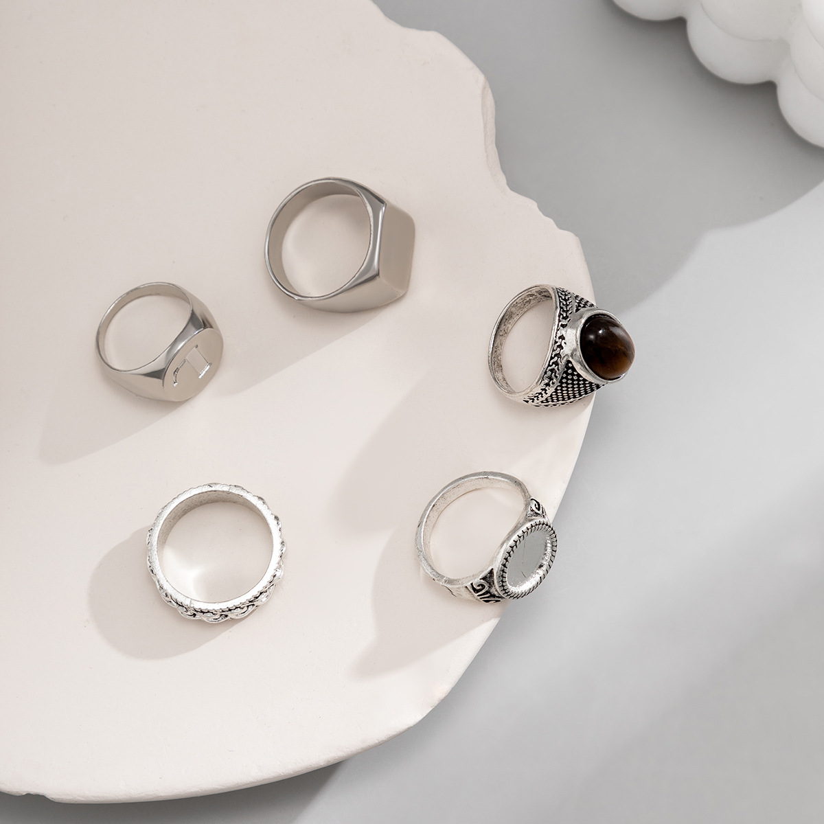 欧美跨境戒指套装男高级感简约时尚个性戒指几何合金属食指戒指环