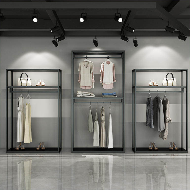 服装店展示架双层挂衣架男女服装店货架铁艺陈列架侧挂衣架落地式