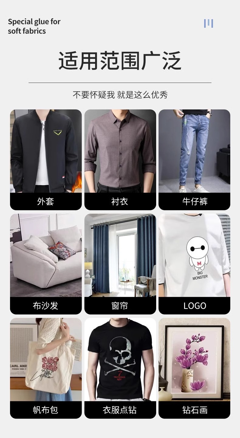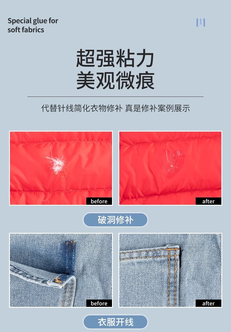 布料胶补衣专用胶强力粘衣服布料的胶补衣沾衣物印花布艺软胶批发