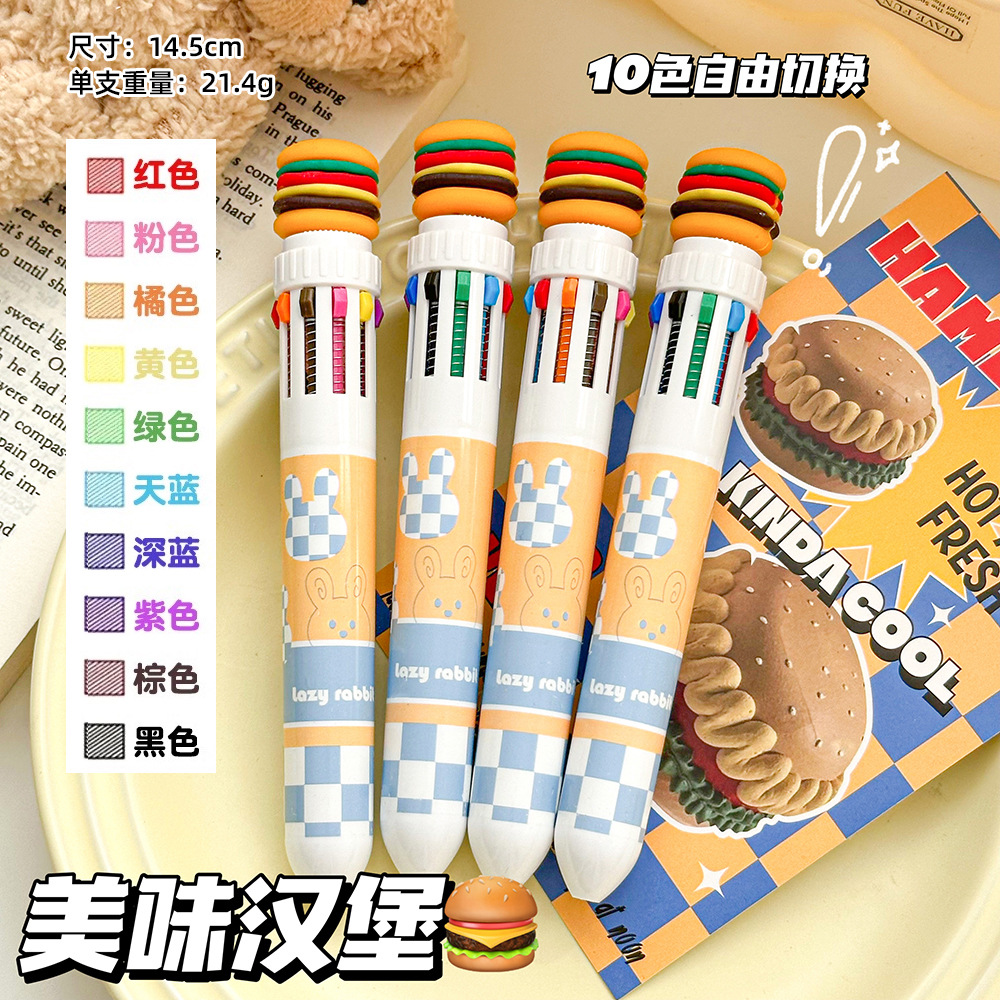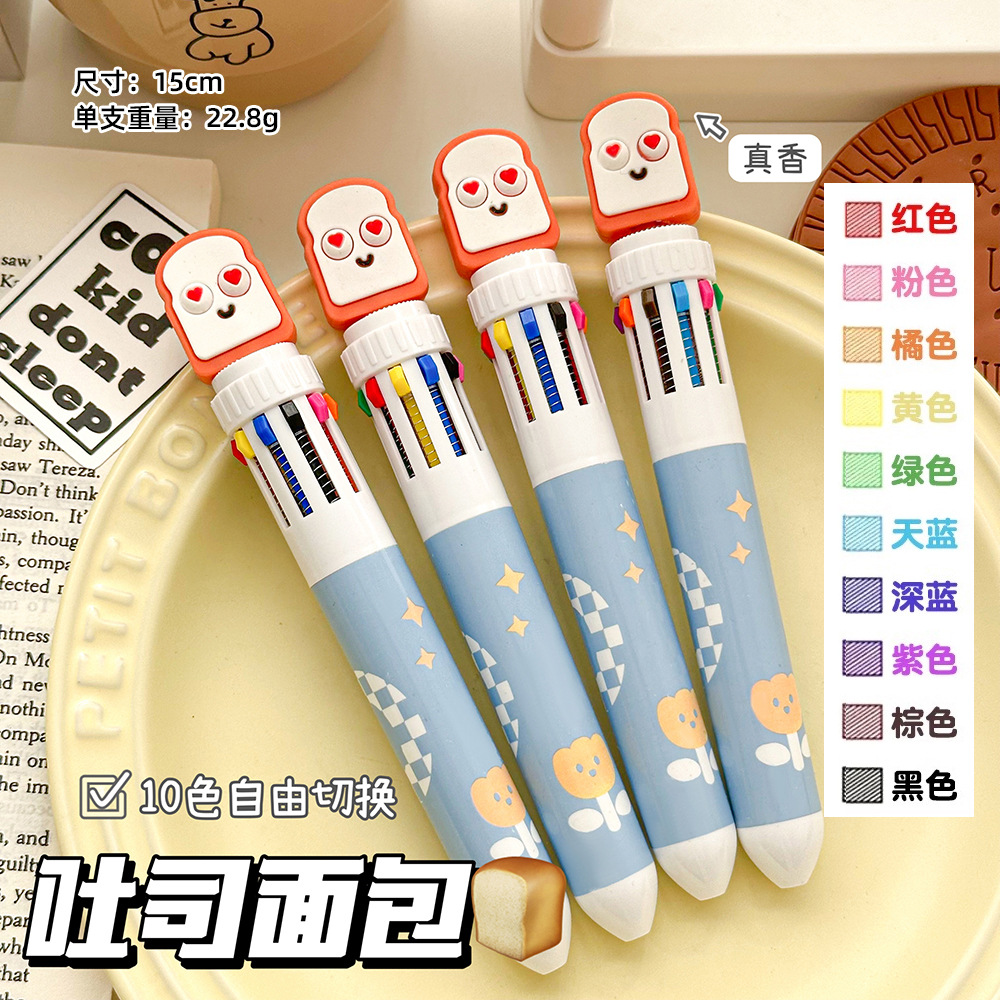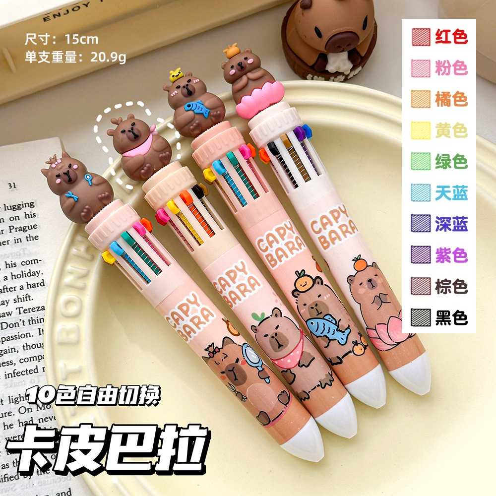 卡皮巴拉十色笔卡通按动10色圆珠笔学生文具多色手账笔涂鸦笔油笔