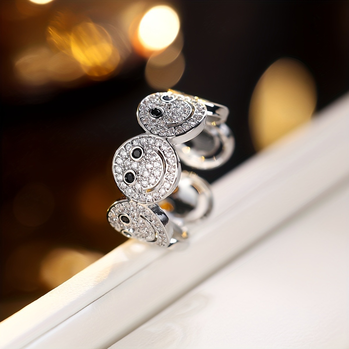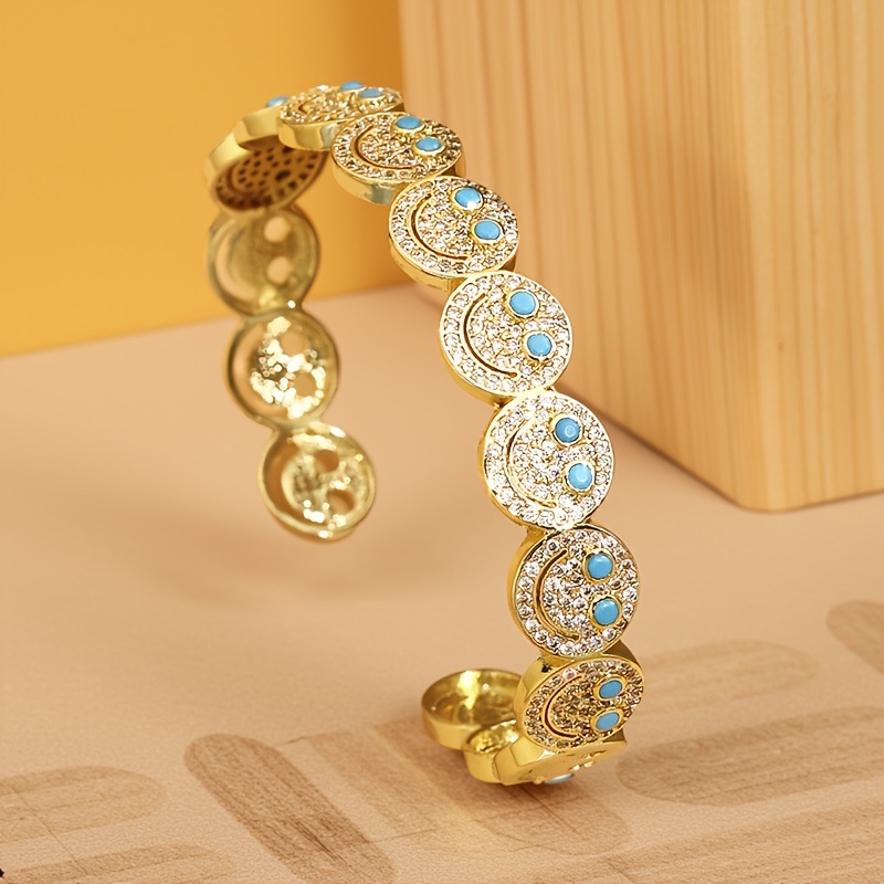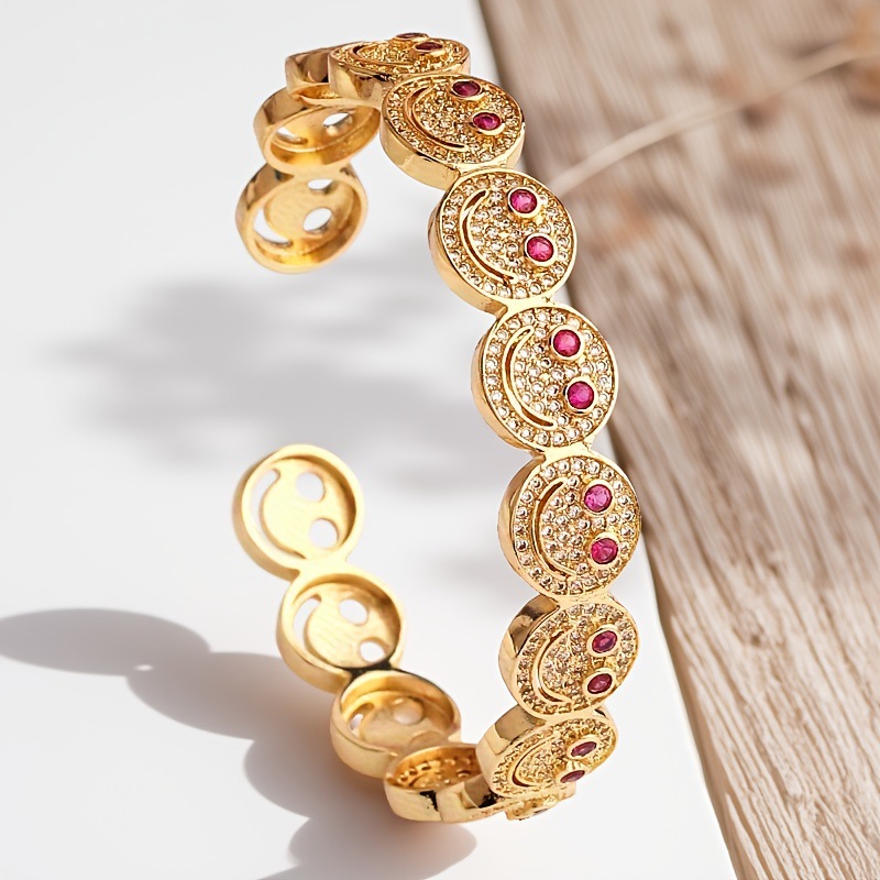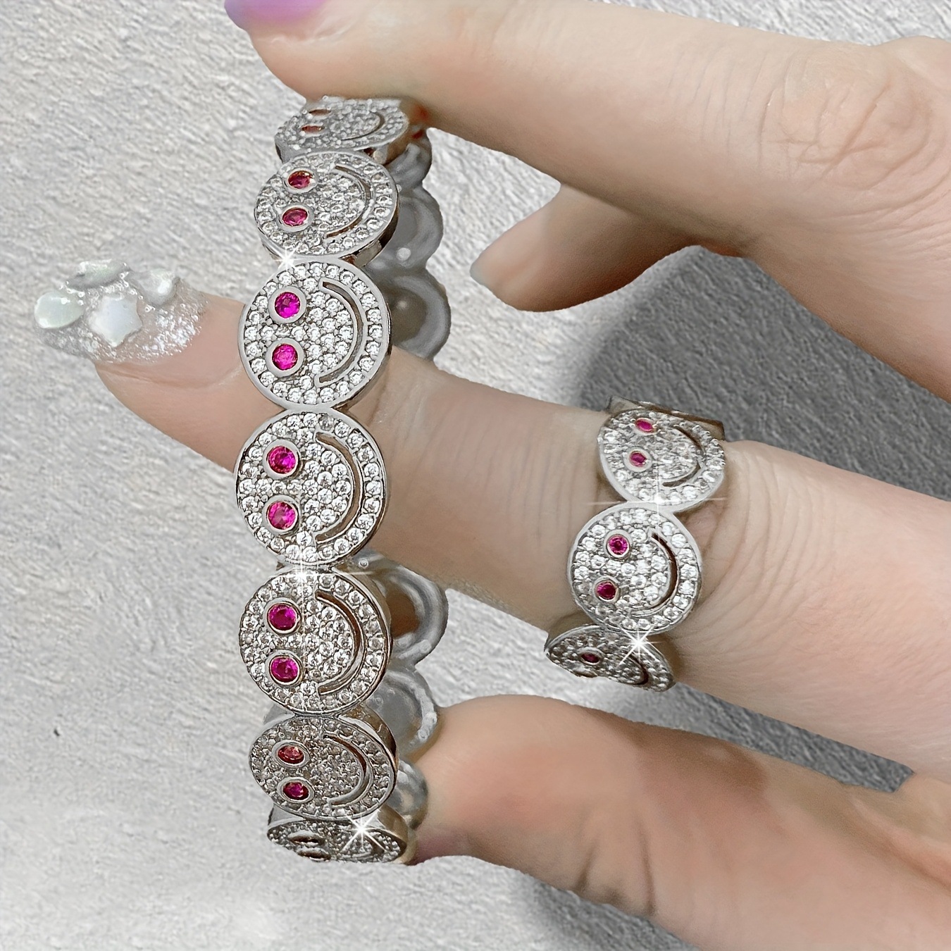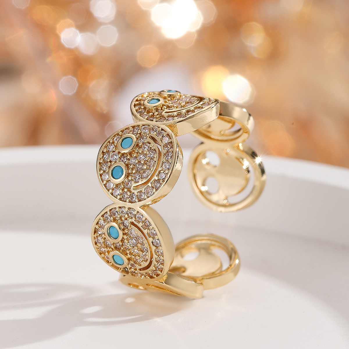 欧美跨境复古铜锆石笑脸手镯戒指套装时尚气质百搭开口手镯手饰