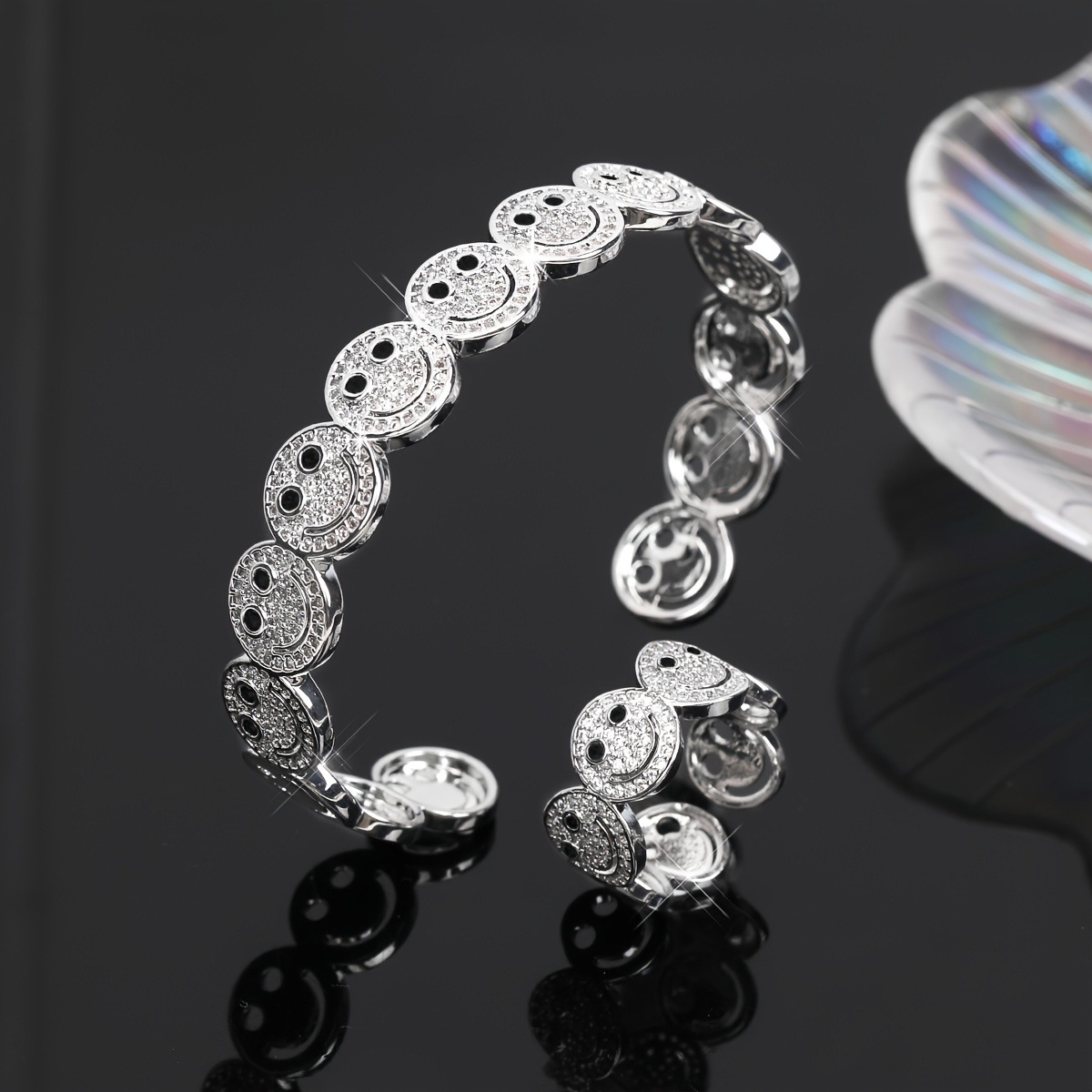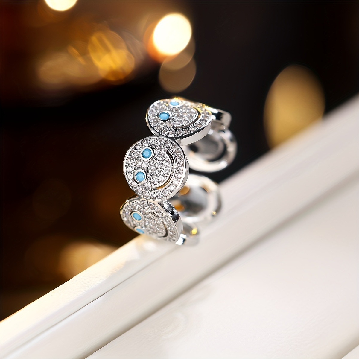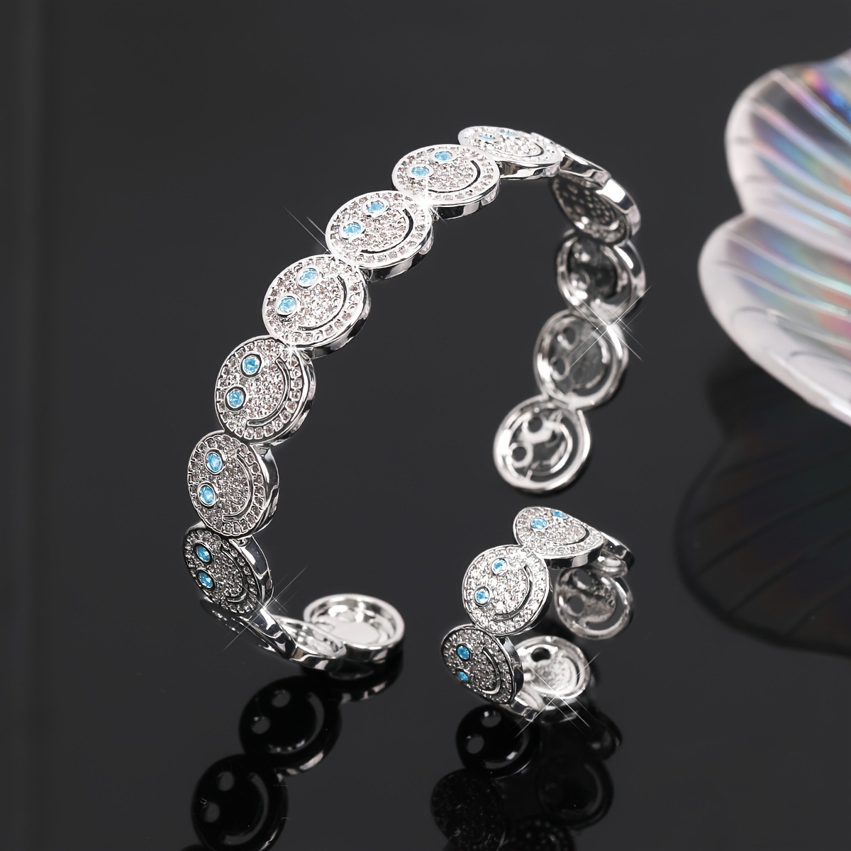 欧美跨境复古铜锆石笑脸手镯戒指套装时尚气质百搭开口手镯手饰