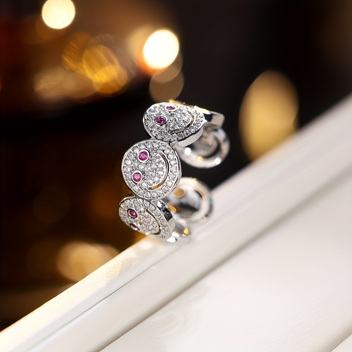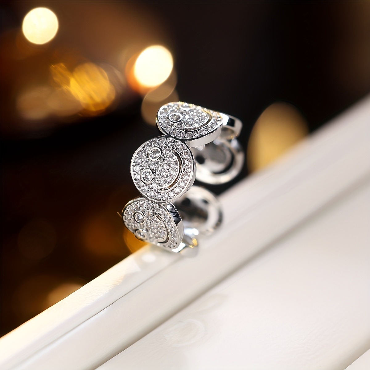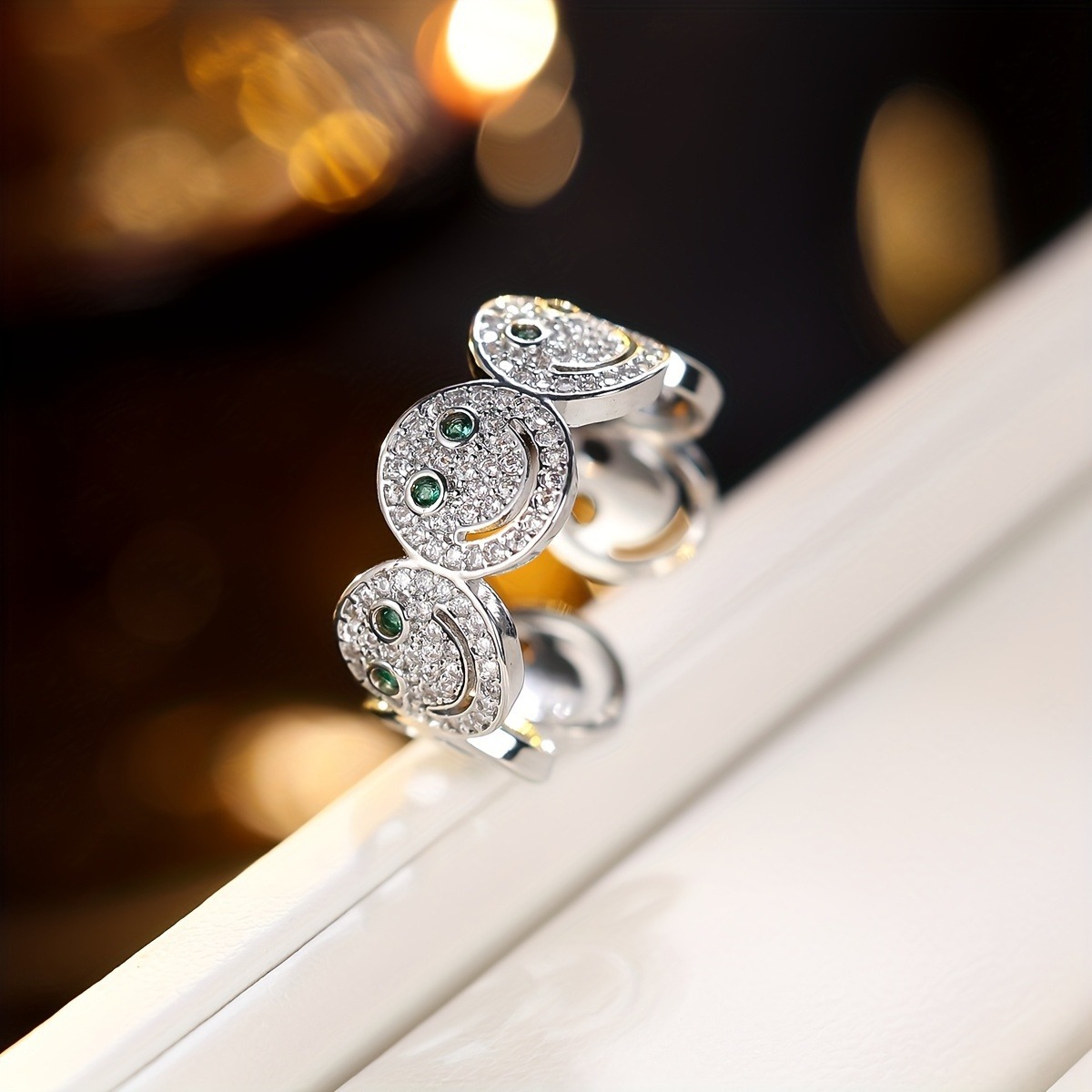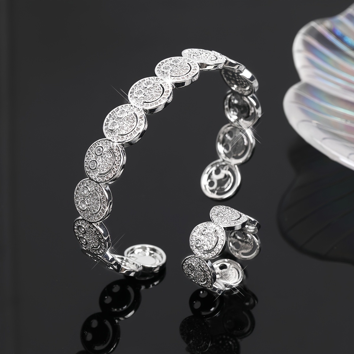 欧美跨境复古铜锆石笑脸手镯戒指套装时尚气质百搭开口手镯手饰