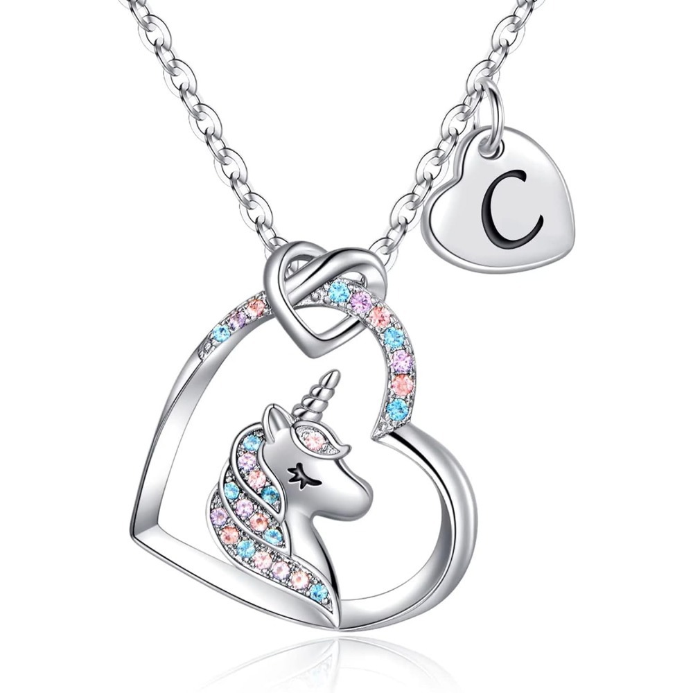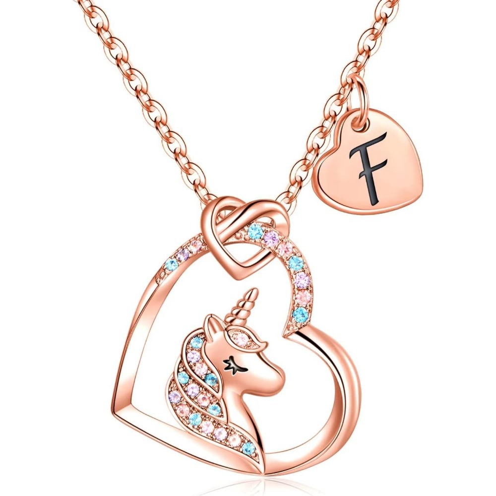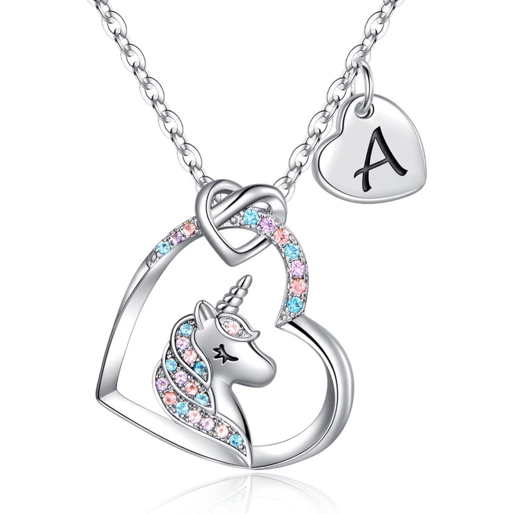 欧美跨境热销26个字母彩色锆石铜材质爱心吊坠儿童饰品独角兽项链