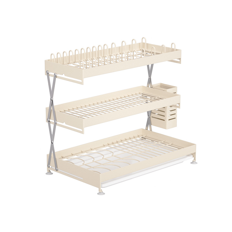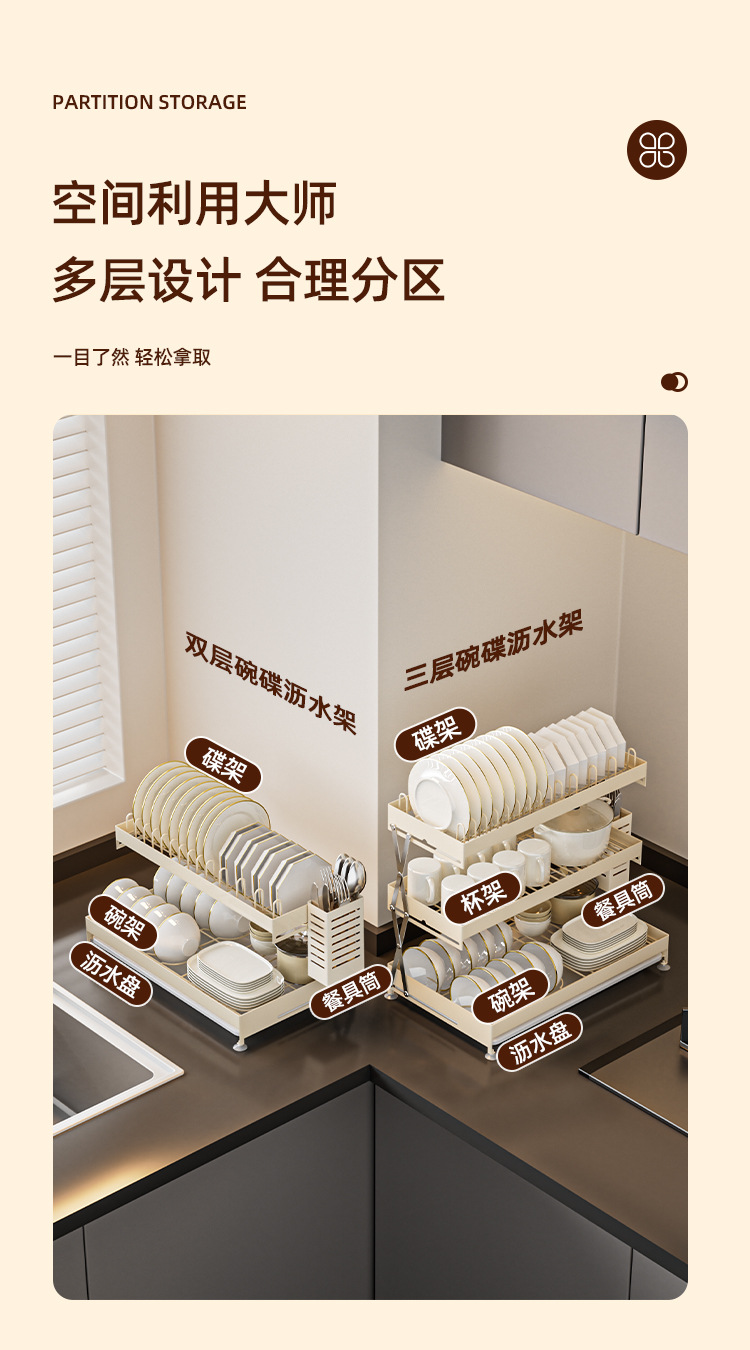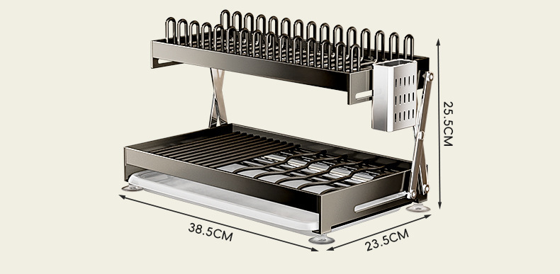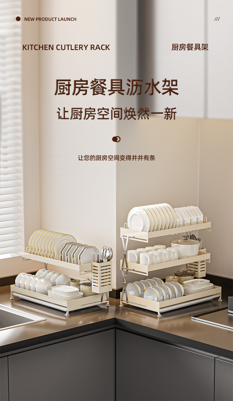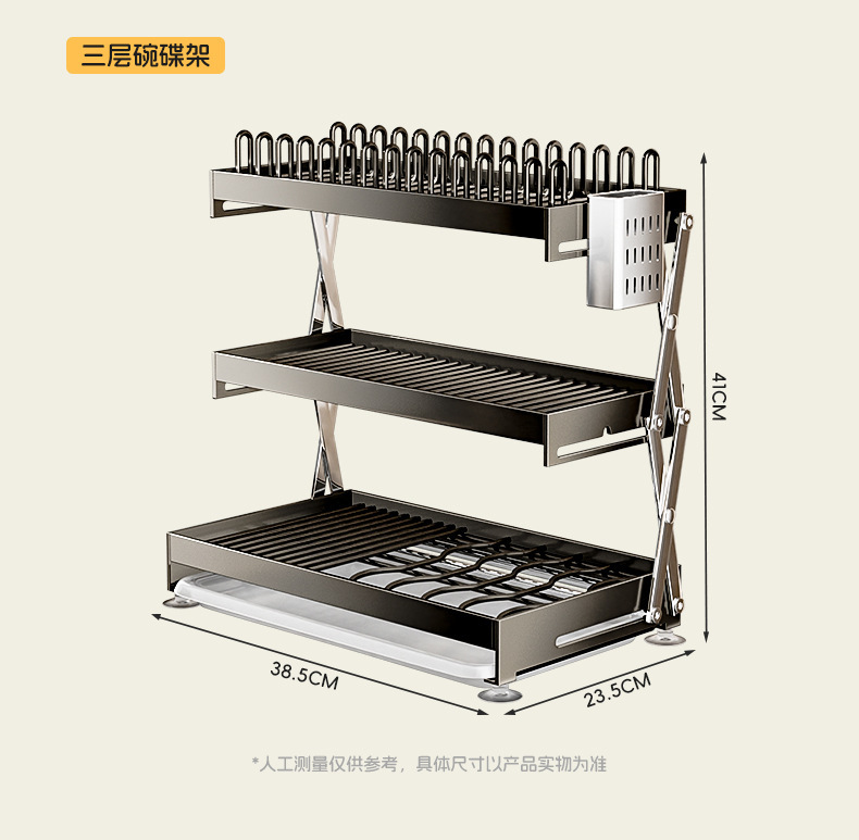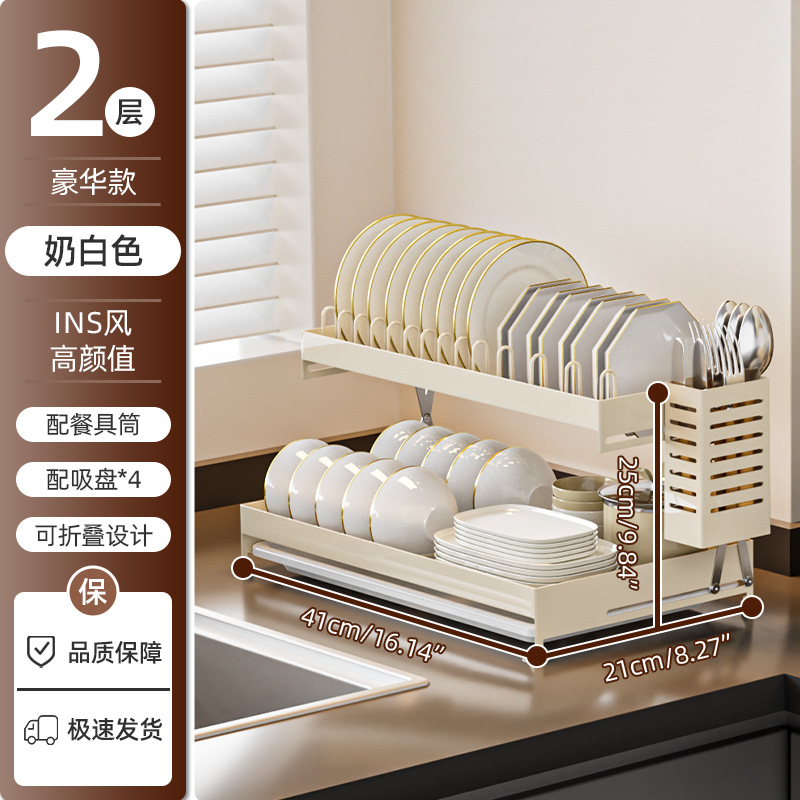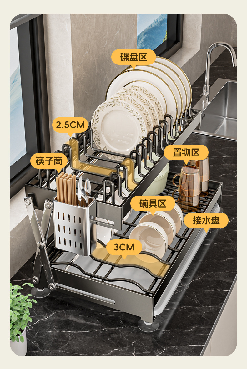可折叠厨房碗碟架带筷子筒免安装沥水收纳架防滑脚垫置物