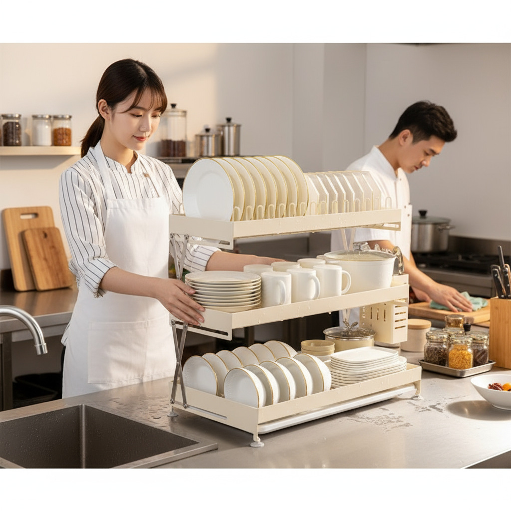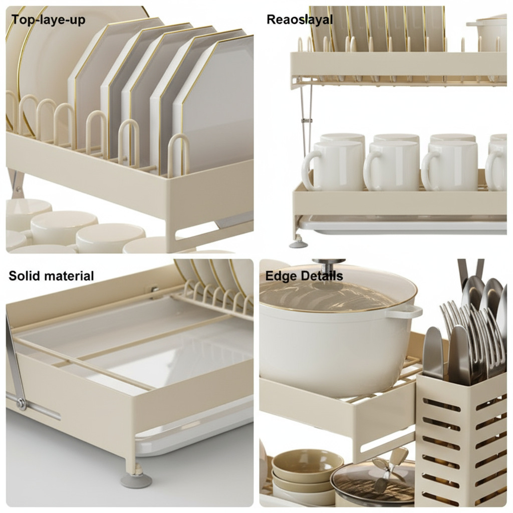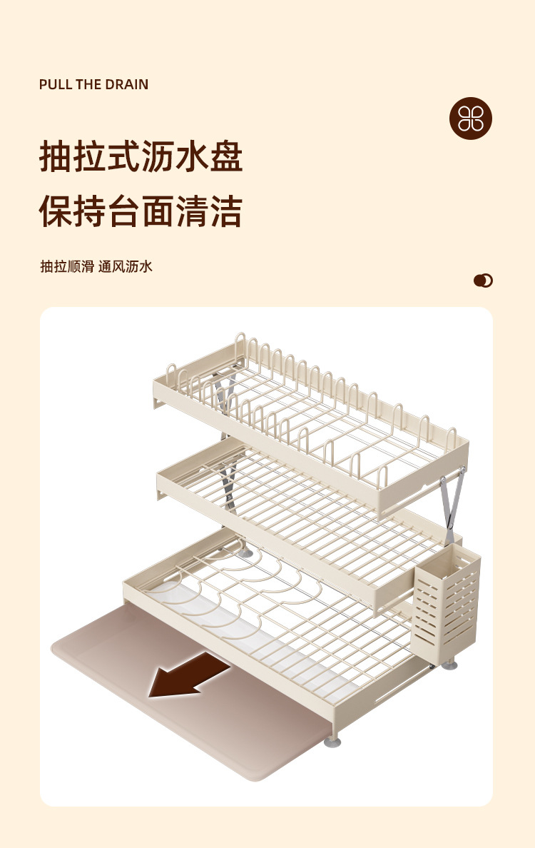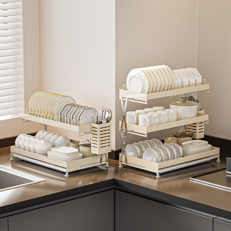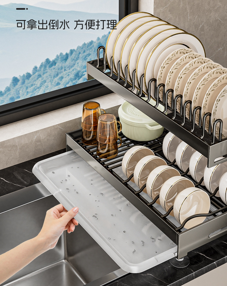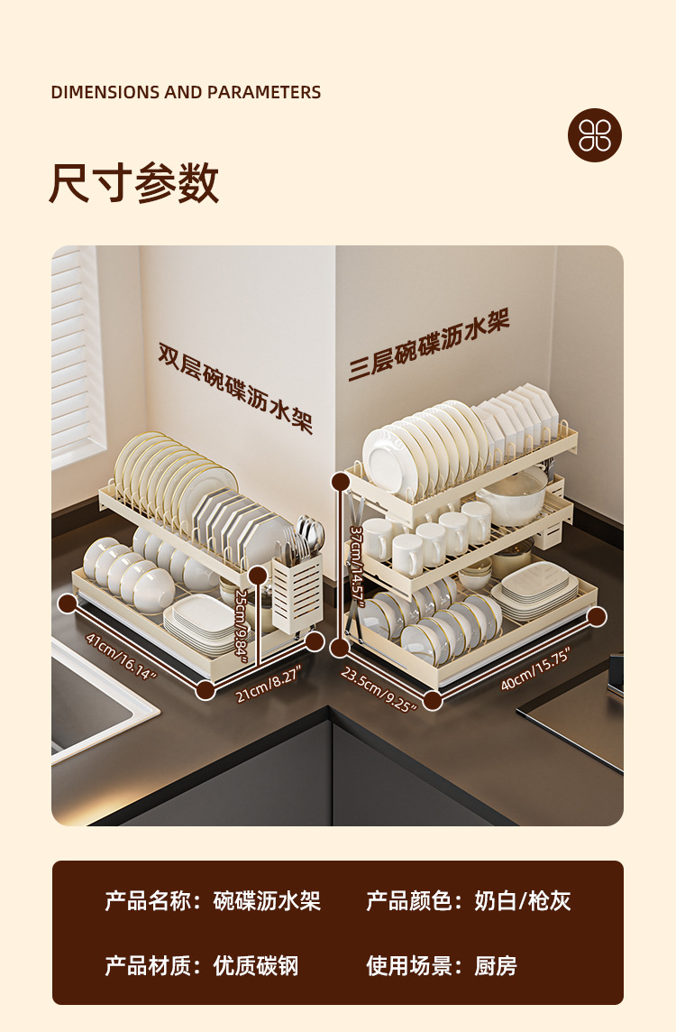 可折叠厨房碗碟架带筷子筒免安装沥水收纳架防滑脚垫置物