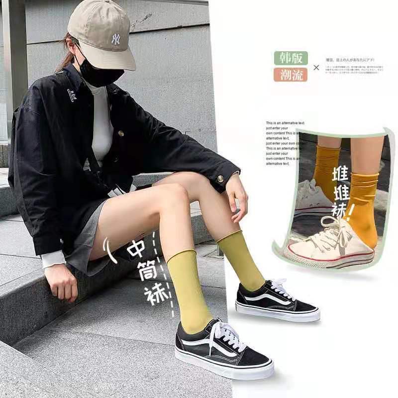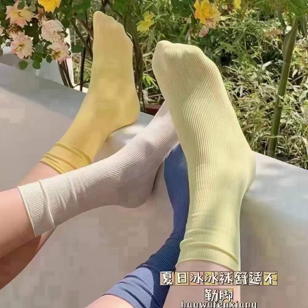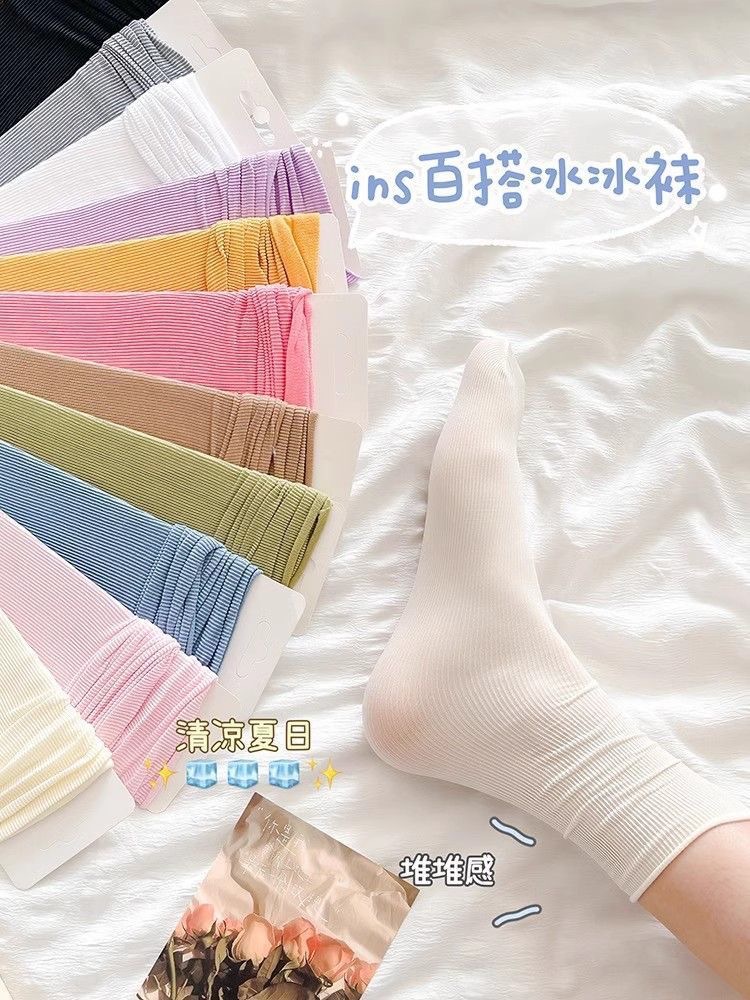 诸暨春夏袜子女冰冰袜休闲百搭糖果色堆堆袜凉感冰丝透气中筒女袜