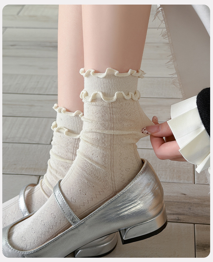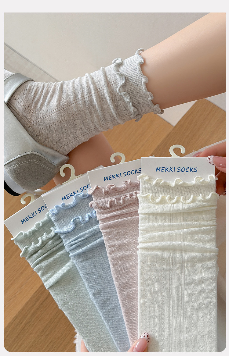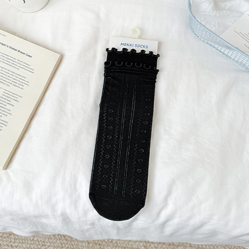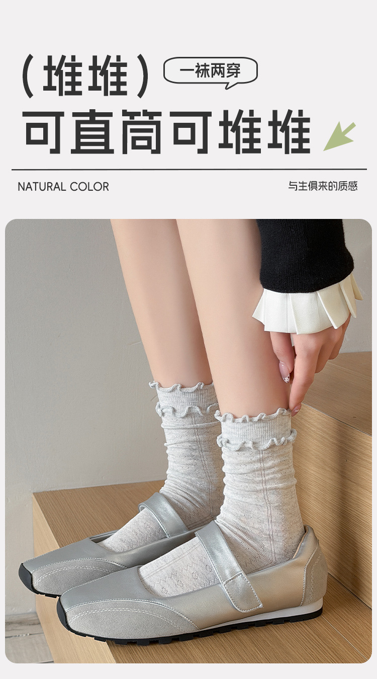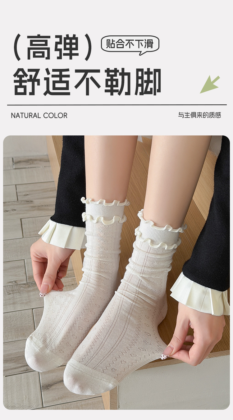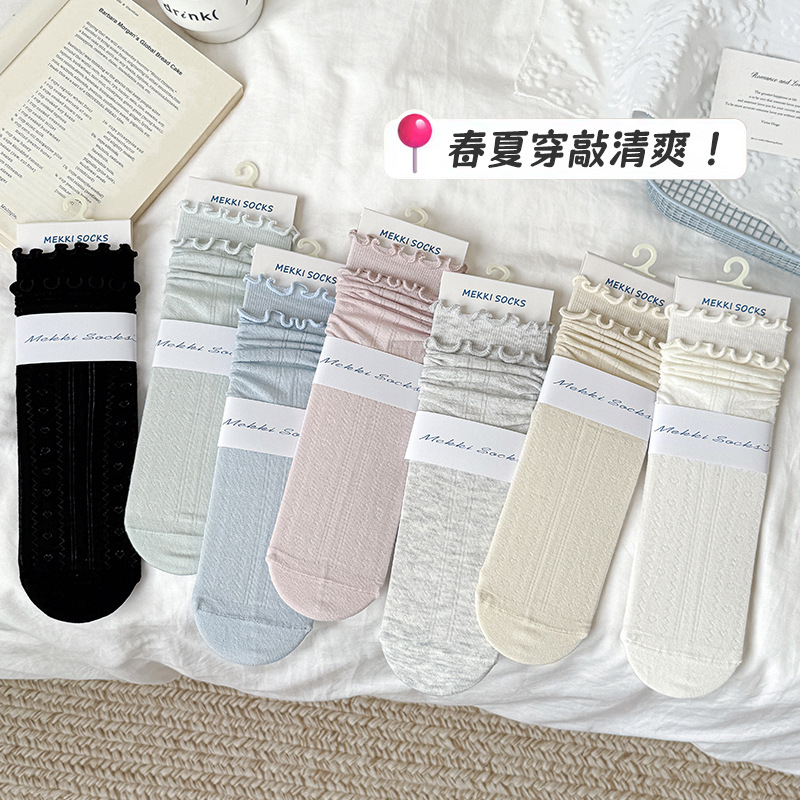 花边袜子女夏薄款堆堆袜网眼透气韩版甜美芭蕾风无骨中筒女袜批发