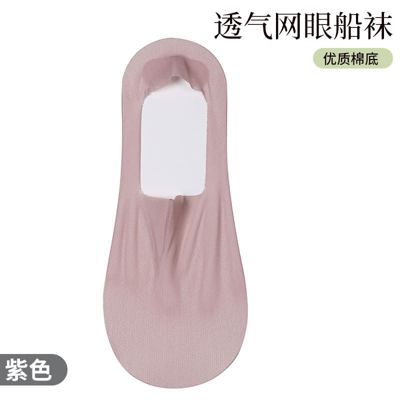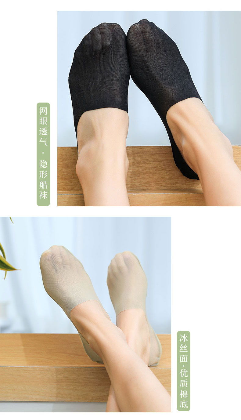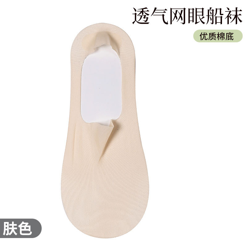 夏季超薄冰丝网孔袜子女船袜女夏天全棉底浅口隐形硅胶防滑不掉跟