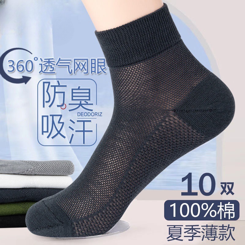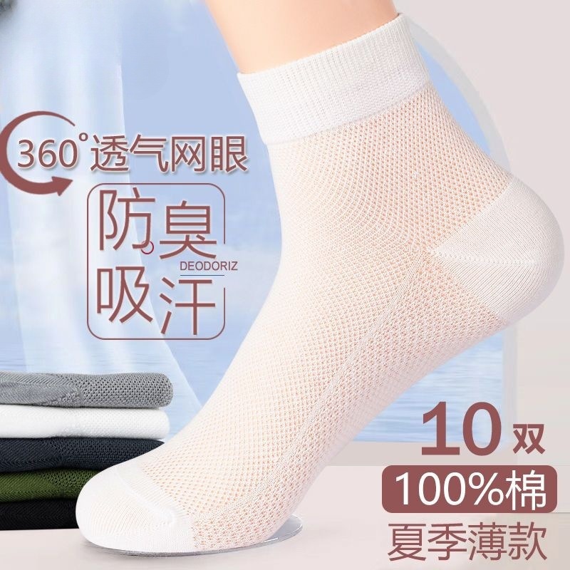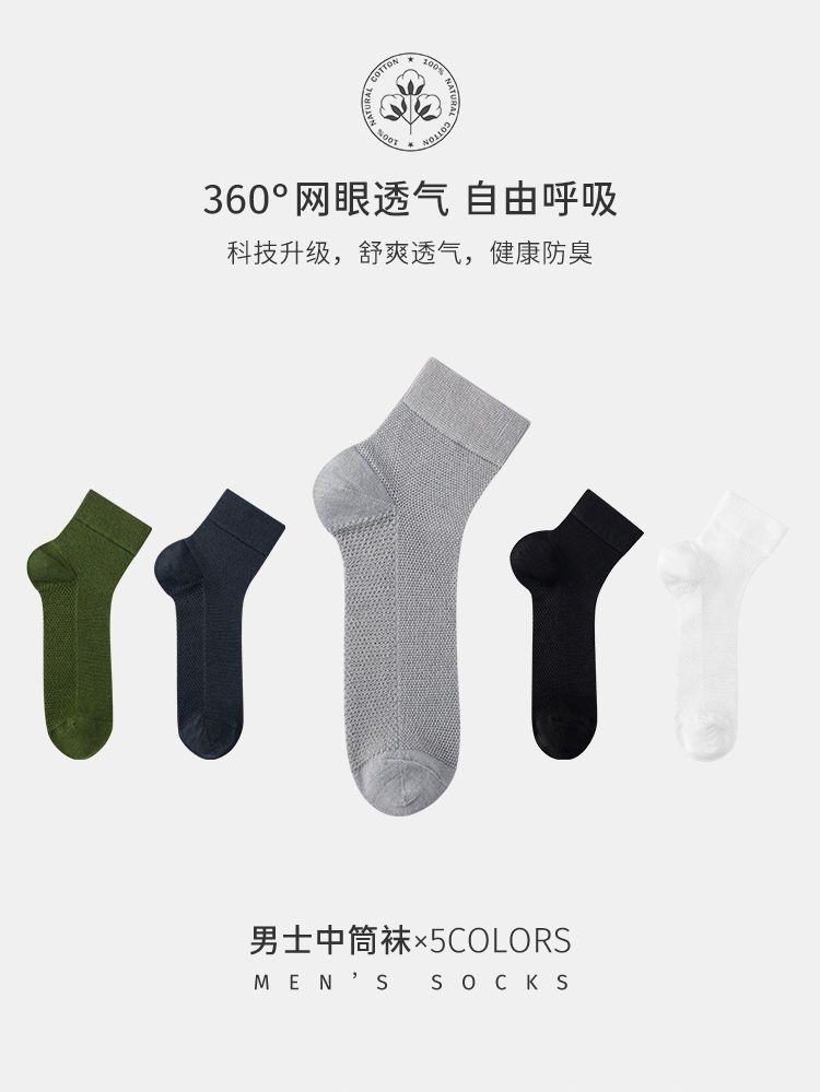 夏天穿的网眼袜子男夏季超薄款中筒短袜男士袜中筒吸汗透气男袜