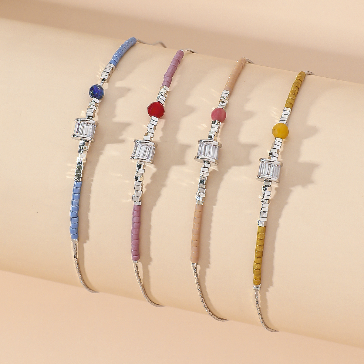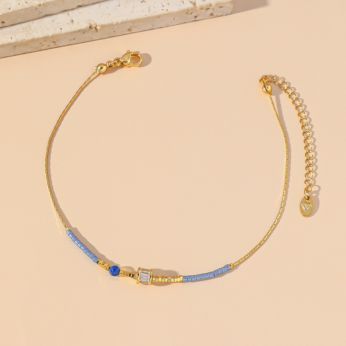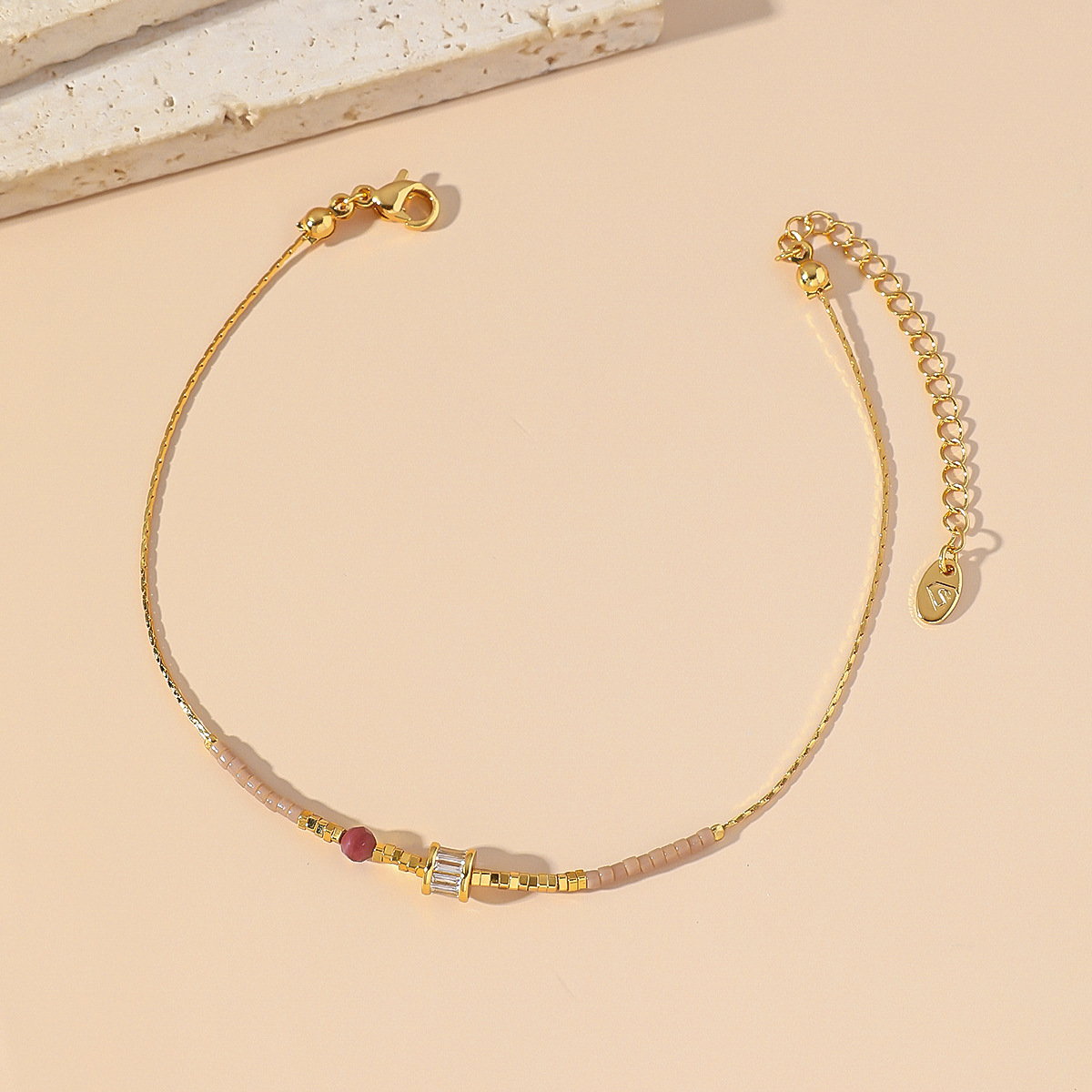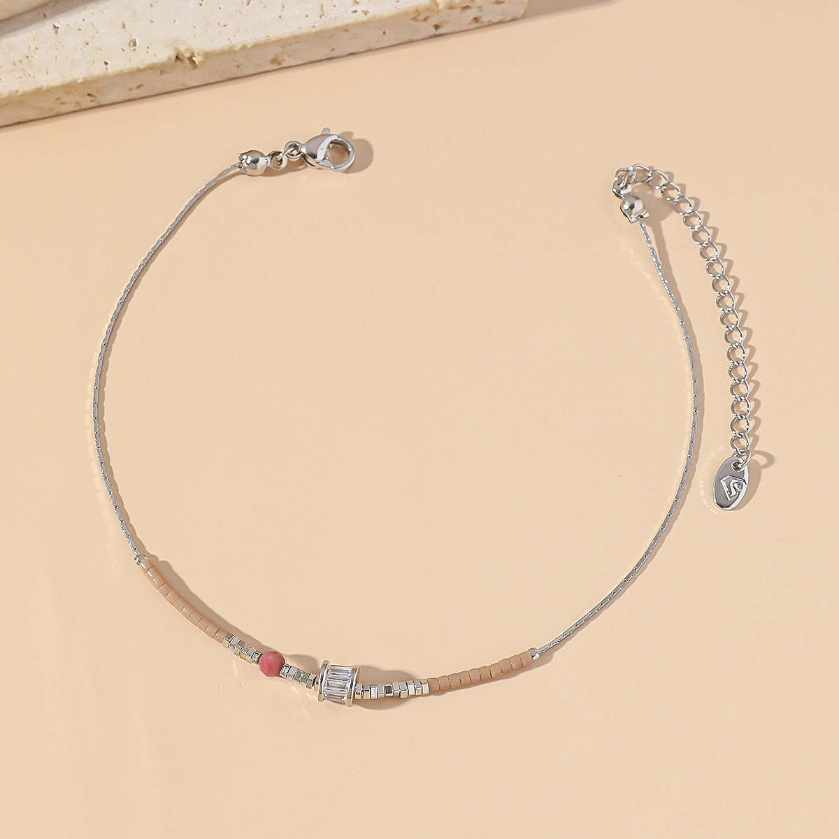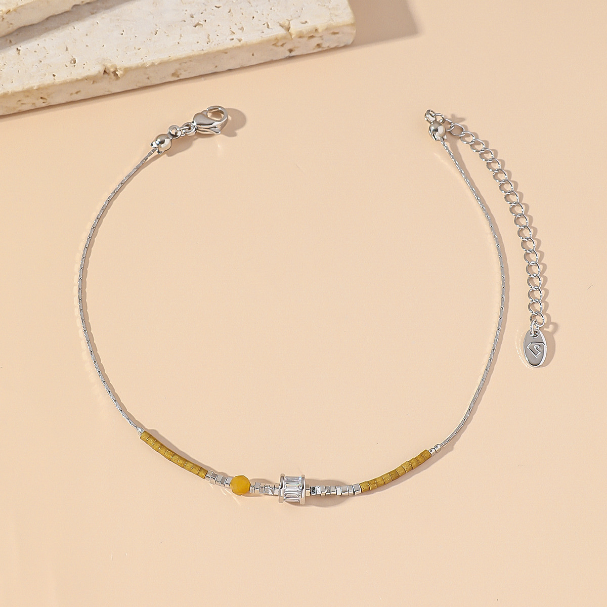 新款天然石日本米珠多色钛钢脚链夏季饰品轻奢甜美脚链爆款批发