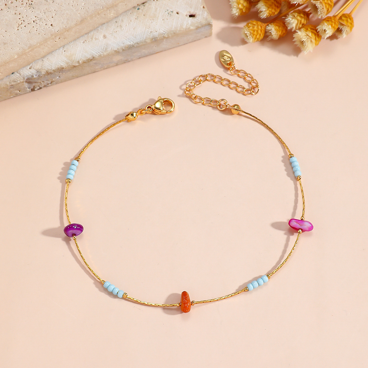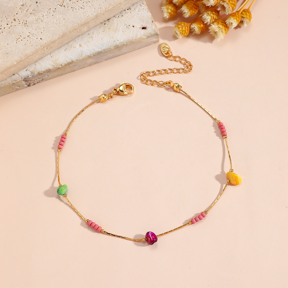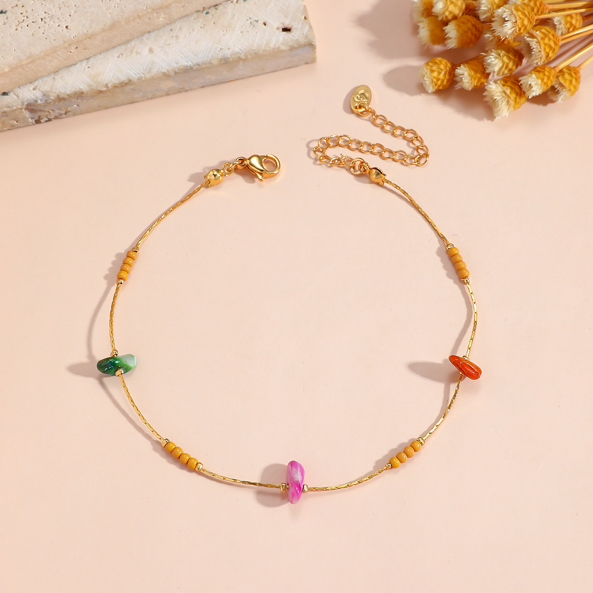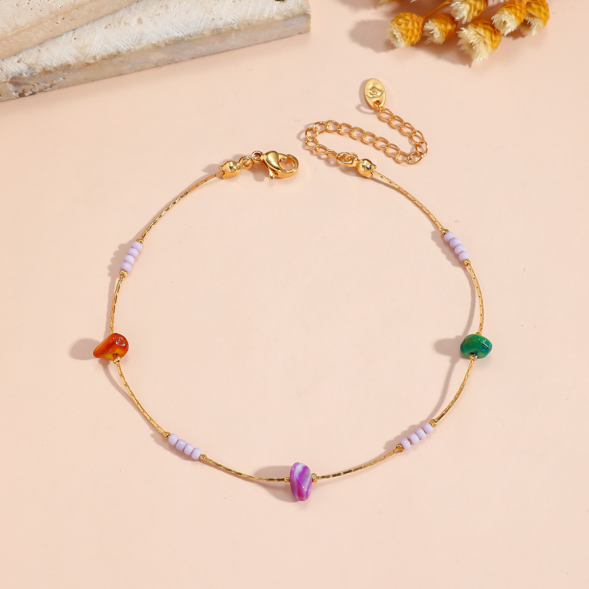 跨境热销彩色天然石小众百搭手链脚链民族风配饰钛钢链子时尚套装
