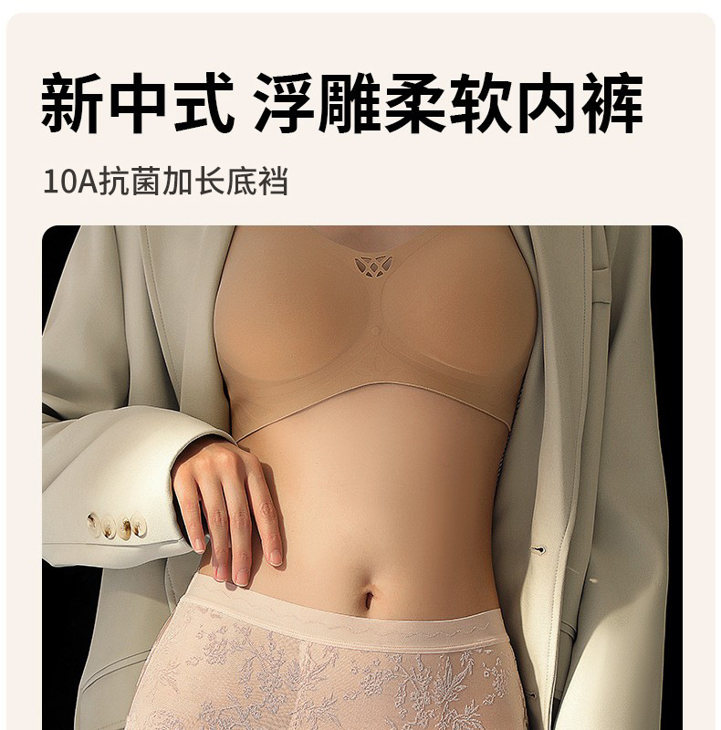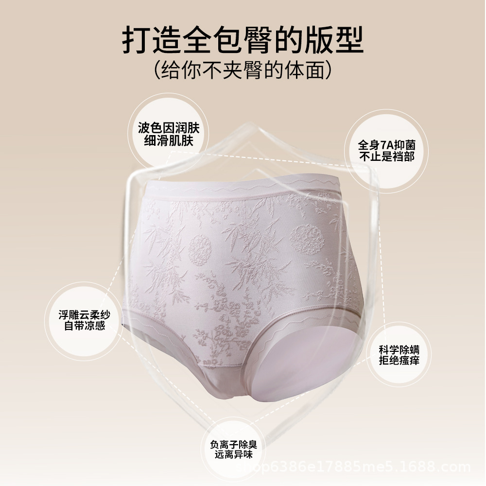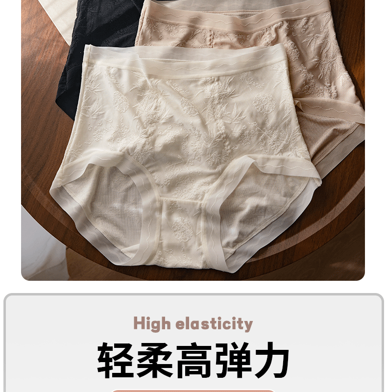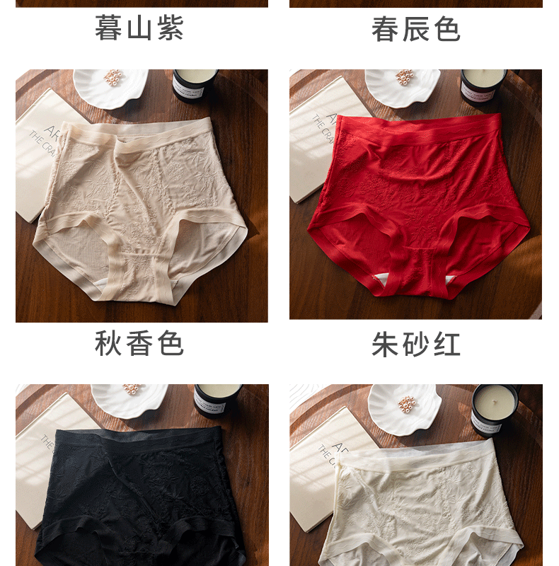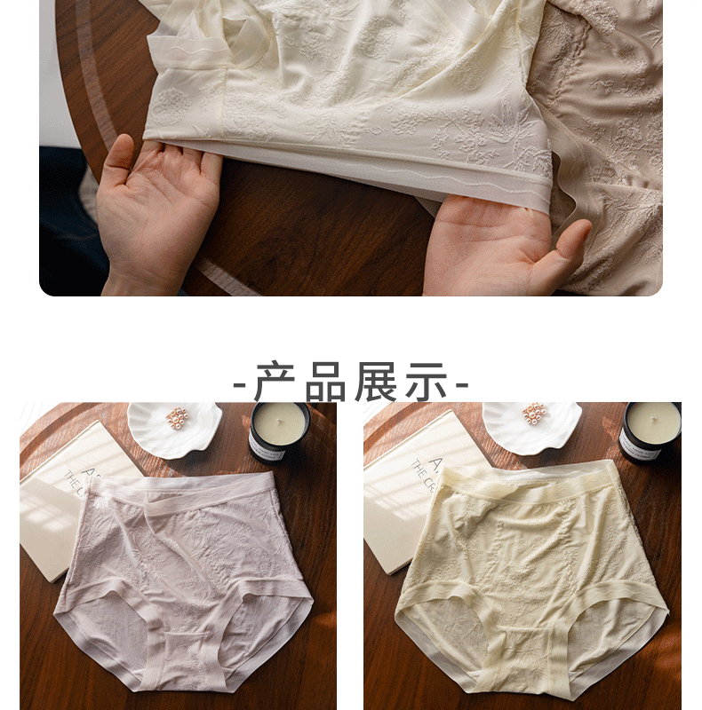 内裤女蕾丝高腰大码无痕桑蚕丝加长裆冰丝大码女士内裤性感三角裤