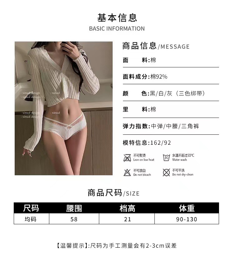 日系螺纹公主纯棉女士内裤低腰镂空透气纯棉裆交叉绑带蕾丝三角裤