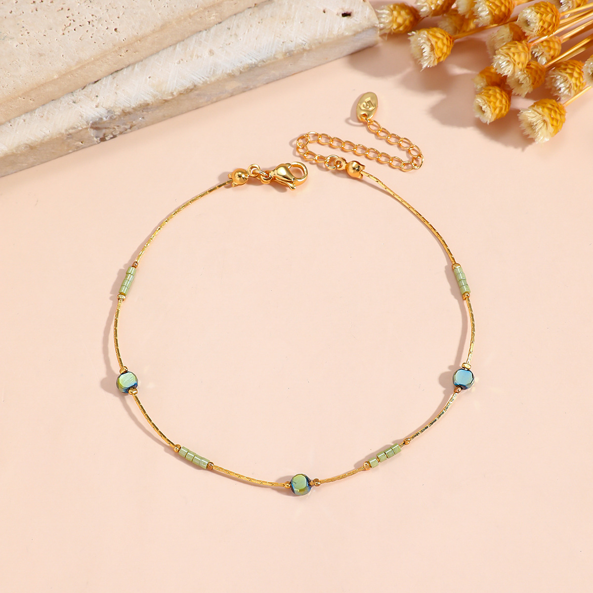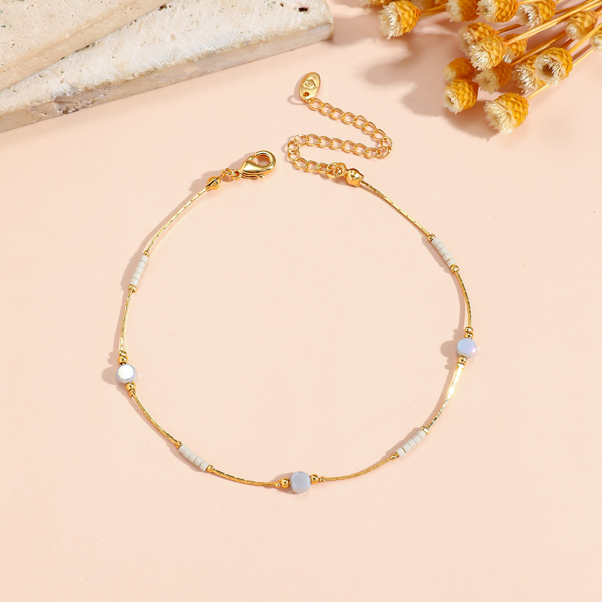夏季新款ins分水晶脚链时尚气质极细日本米珠手链女生钛钢不掉色