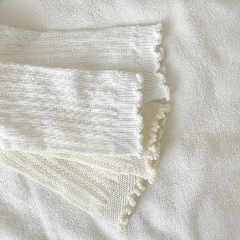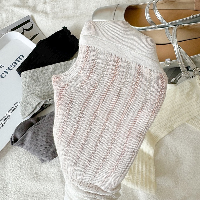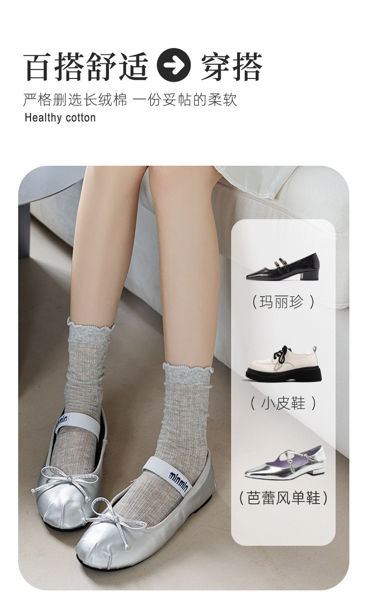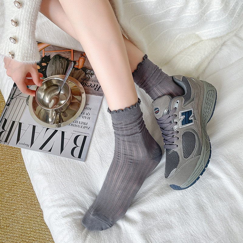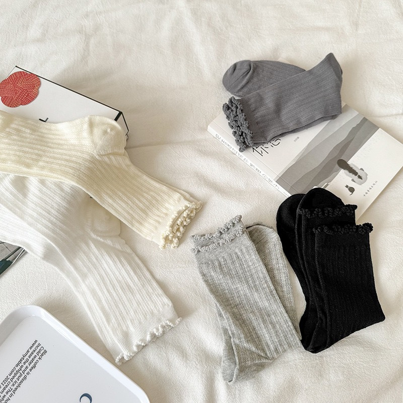 袜子女夏季薄款ins纯色花边中筒袜夏天女士吸汗透气堆堆袜百搭款