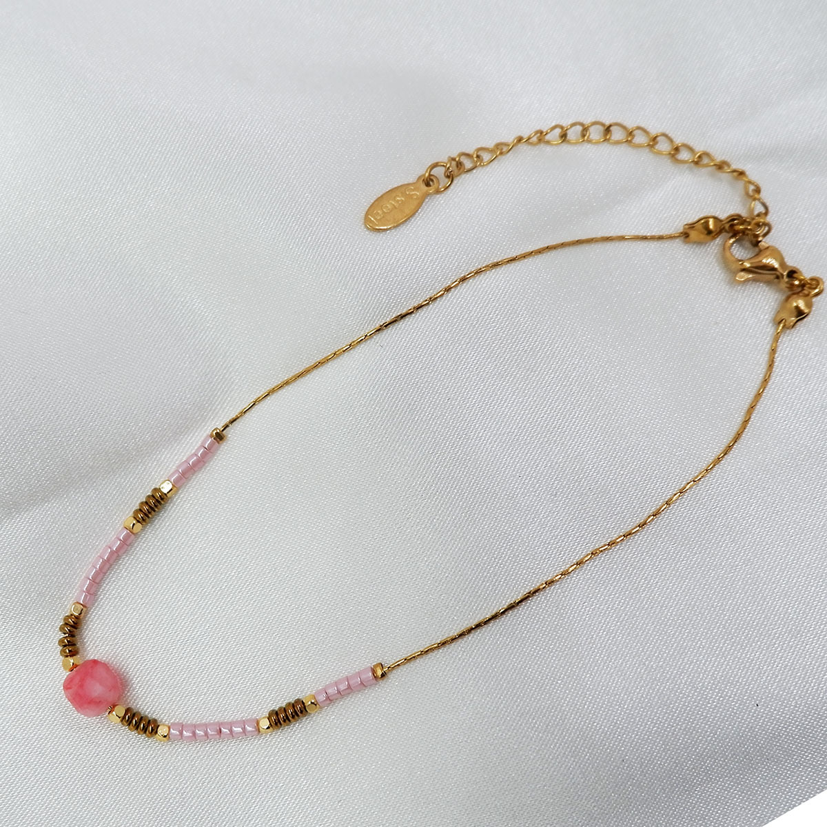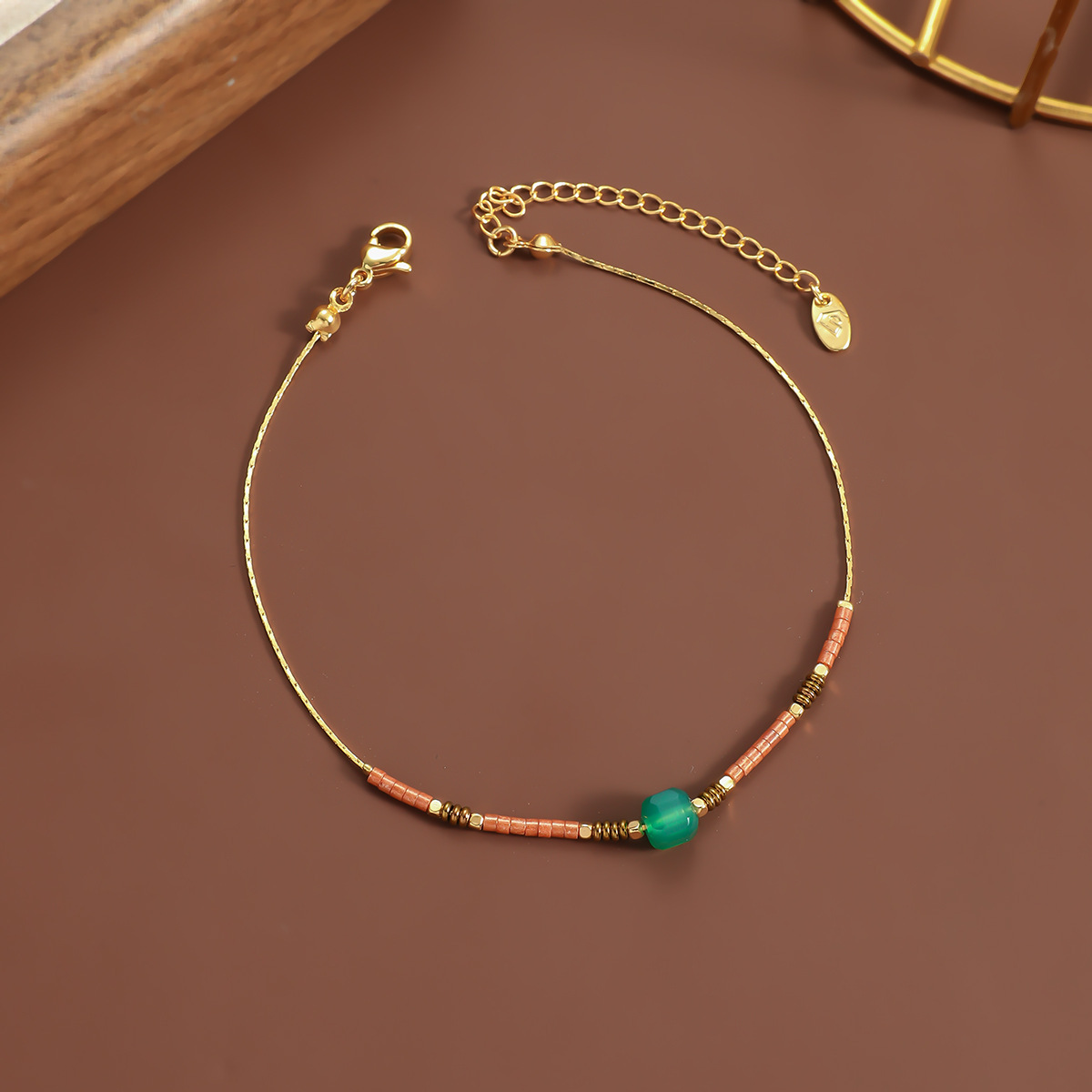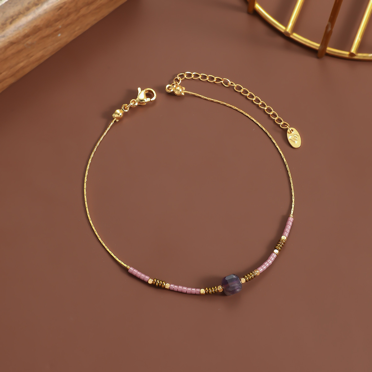 春夏新款紫水晶脚链简约轻奢天然石手工串珠不锈钢钛钢沙滩足链