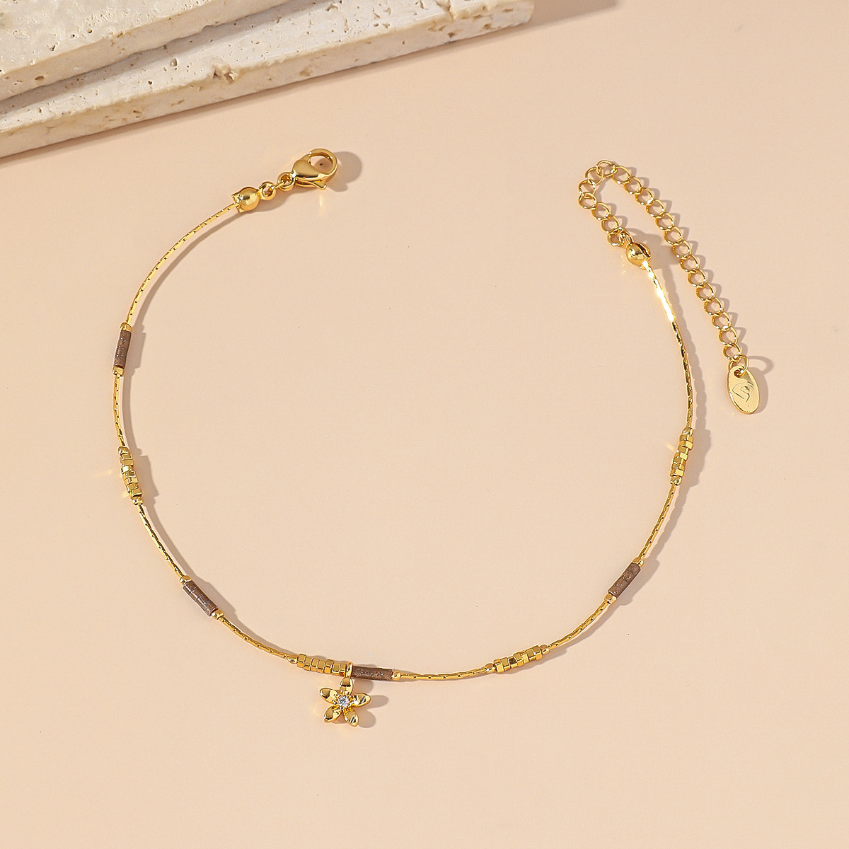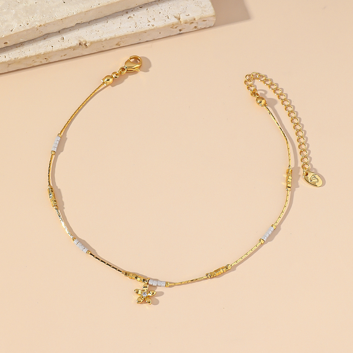 不锈钢日本米珠小花吊坠手链气质仙气精致小众设计高级手链送女友