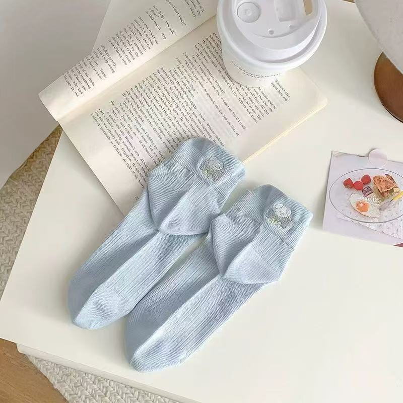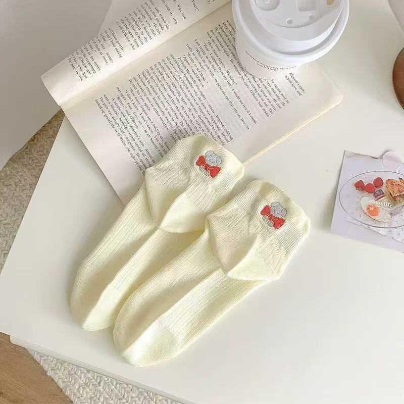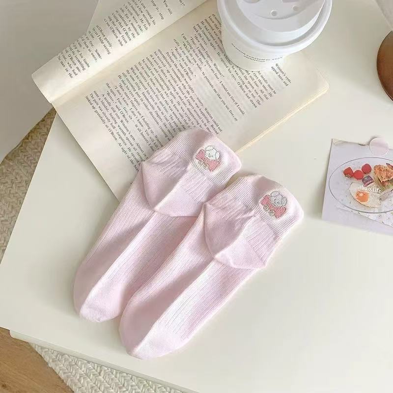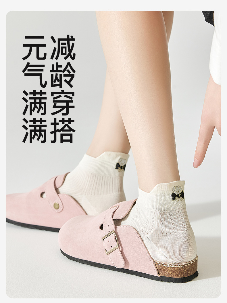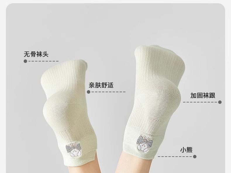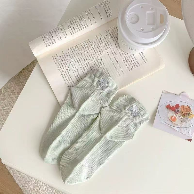 100%纯棉女士夏天薄款网眼袜子可爱风提耳短袜女生春夏季透气防臭