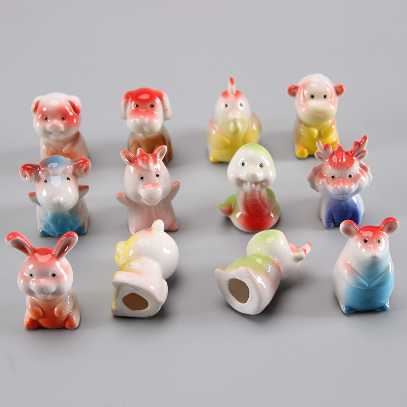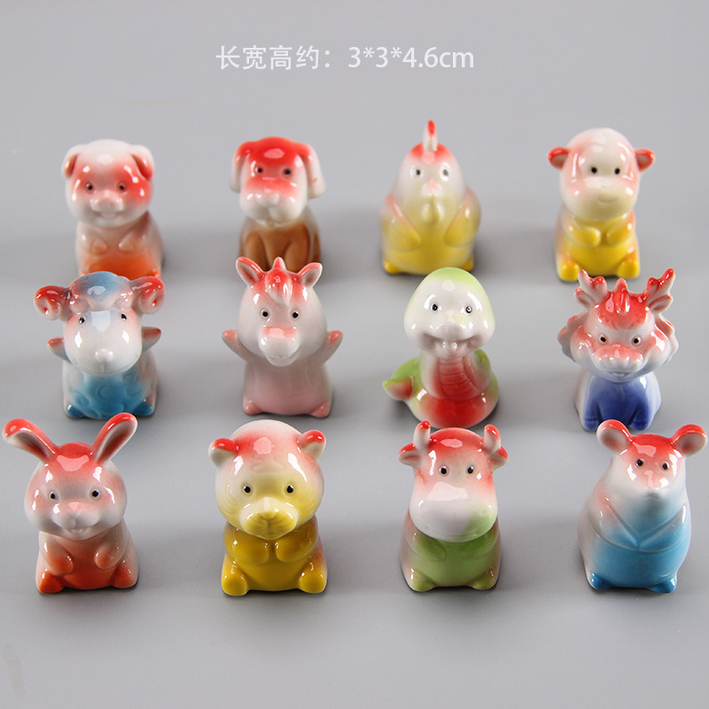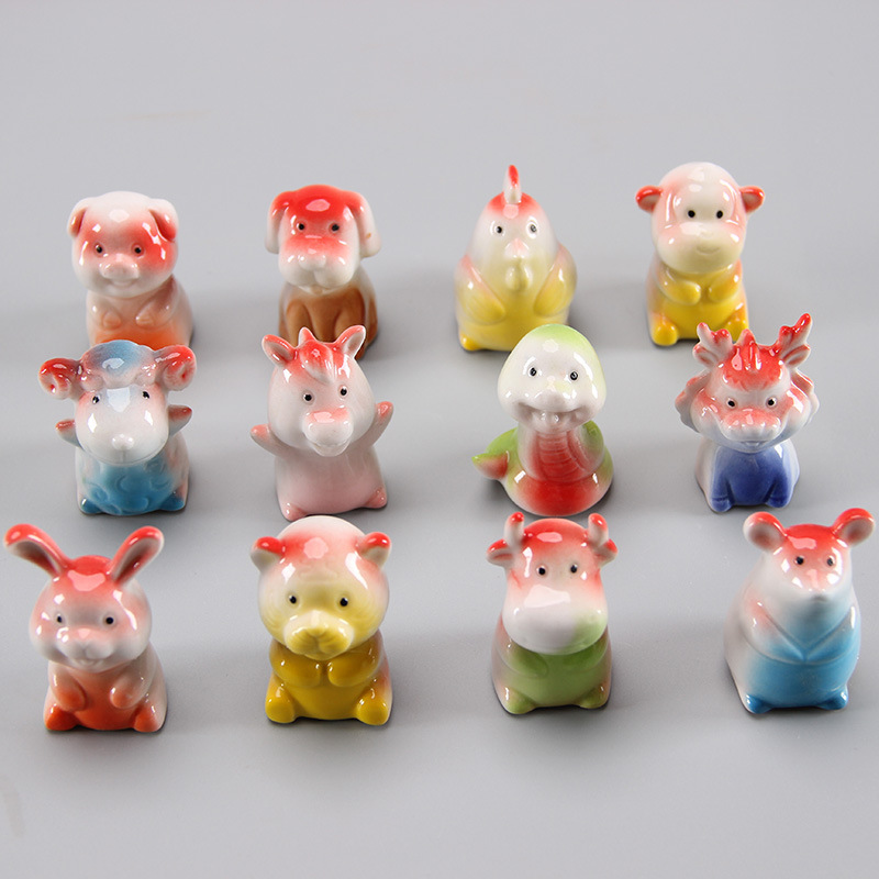 12生肖小摆件十二生肖陶瓷小摆件网红转转小配件家居装饰小摆件