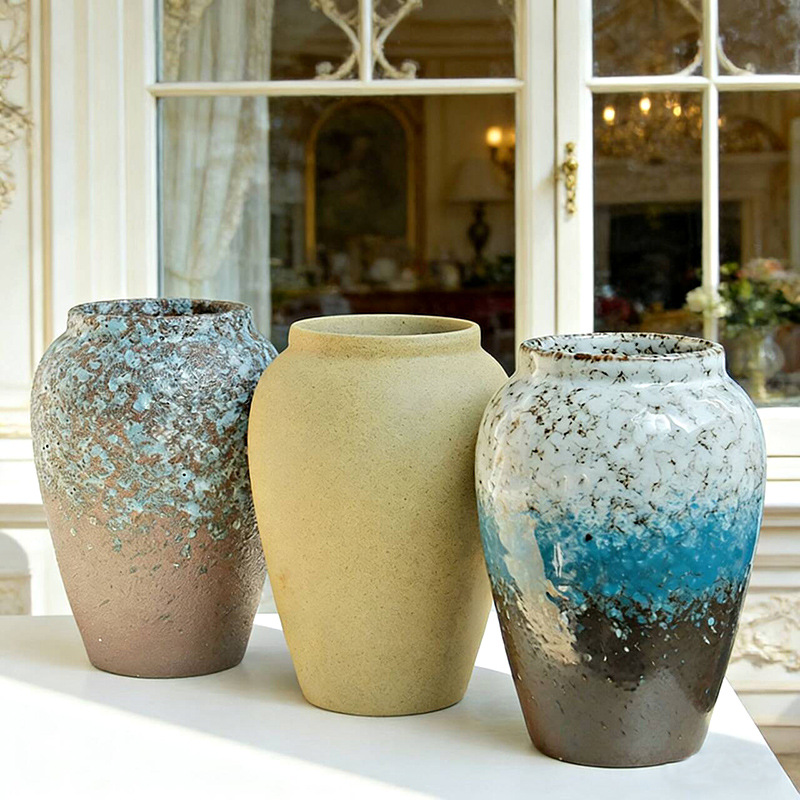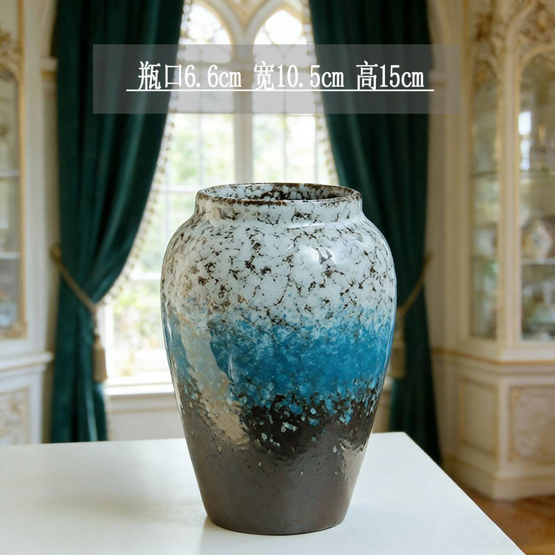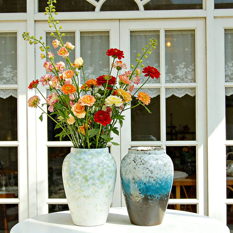 清新多巴胺森林绿复古陶瓷花瓶水培鲜花手工釉彩花瓶家居装饰摆件