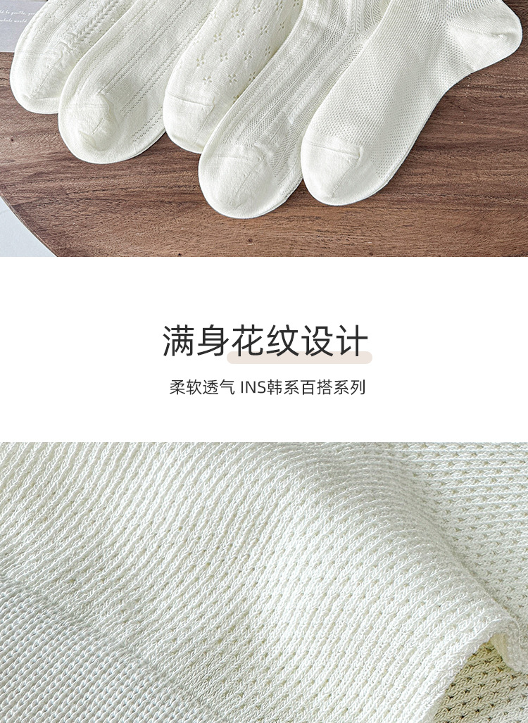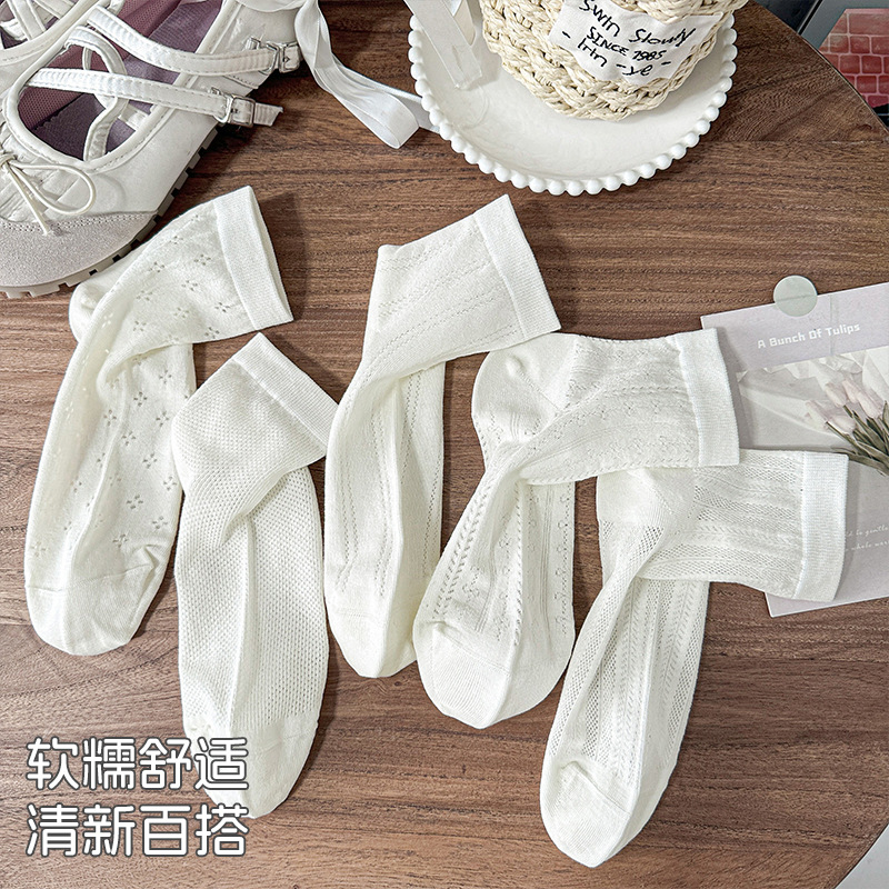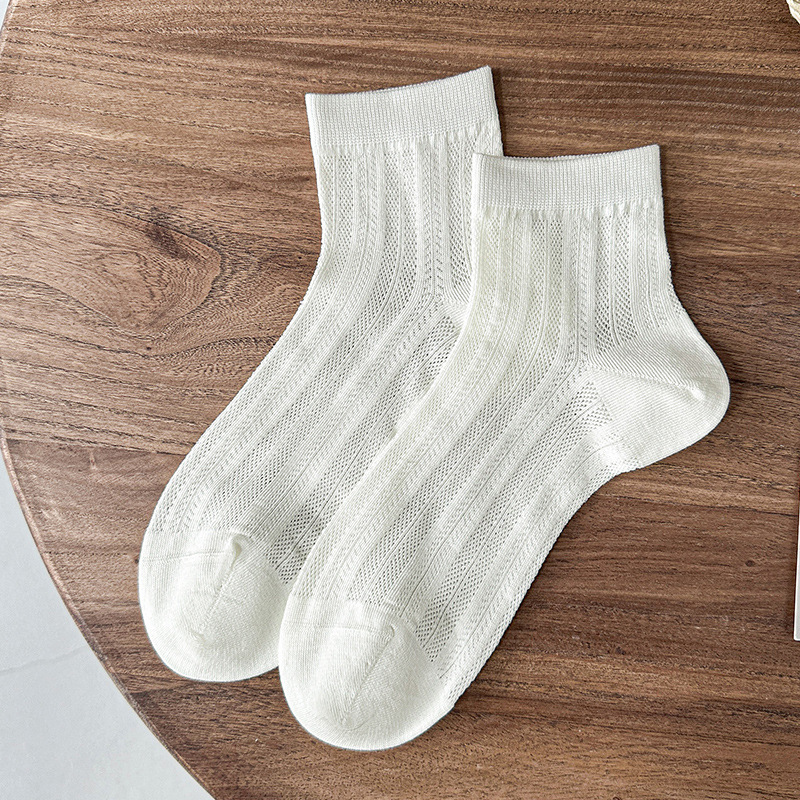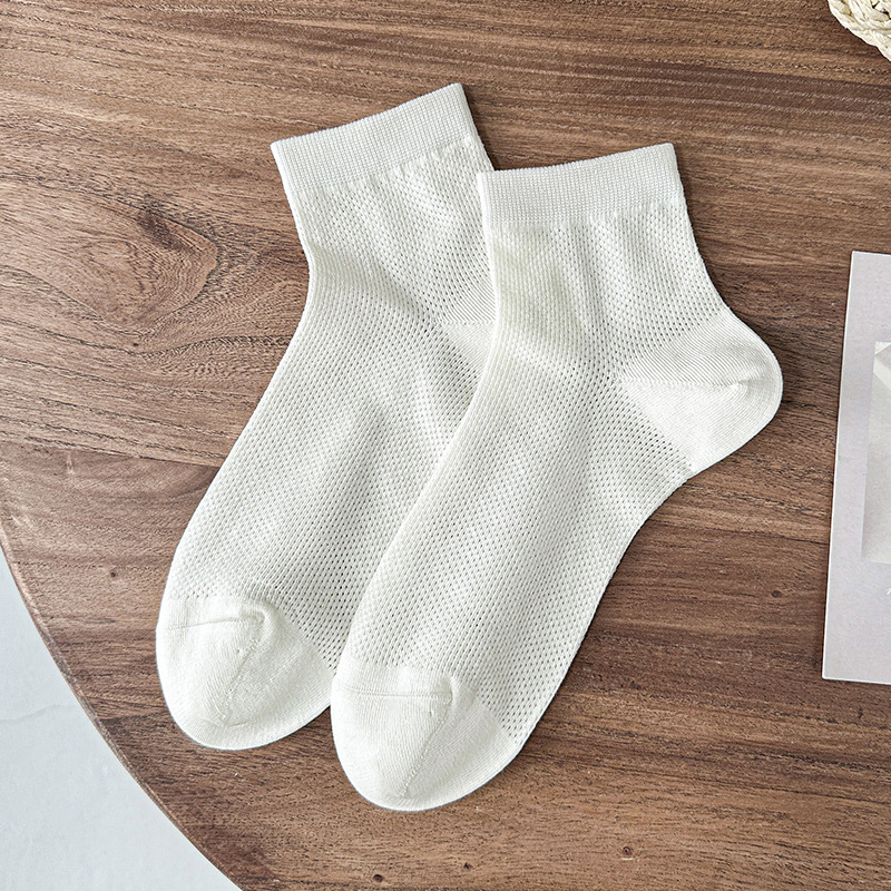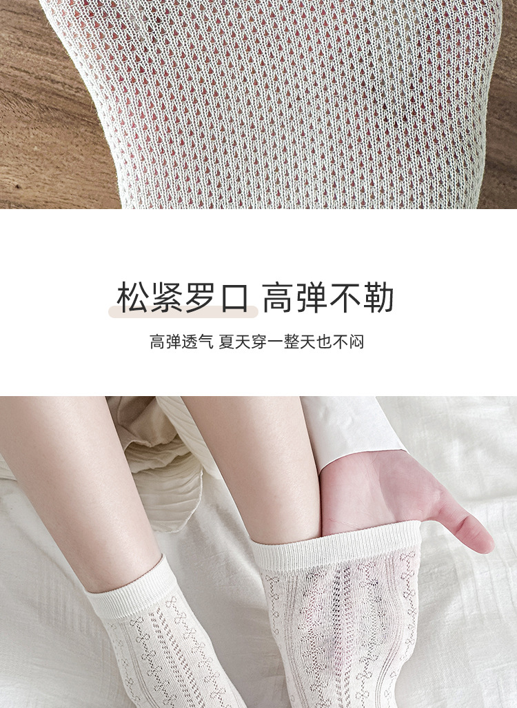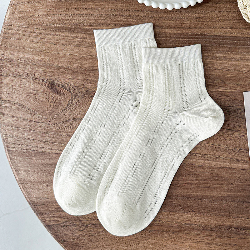 白色袜子夏女短袜夏季薄款网眼透气女士中筒袜纯色棉袜夏天女袜