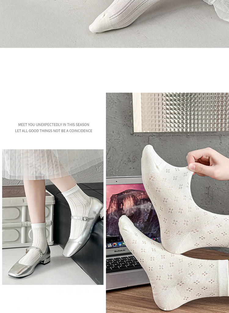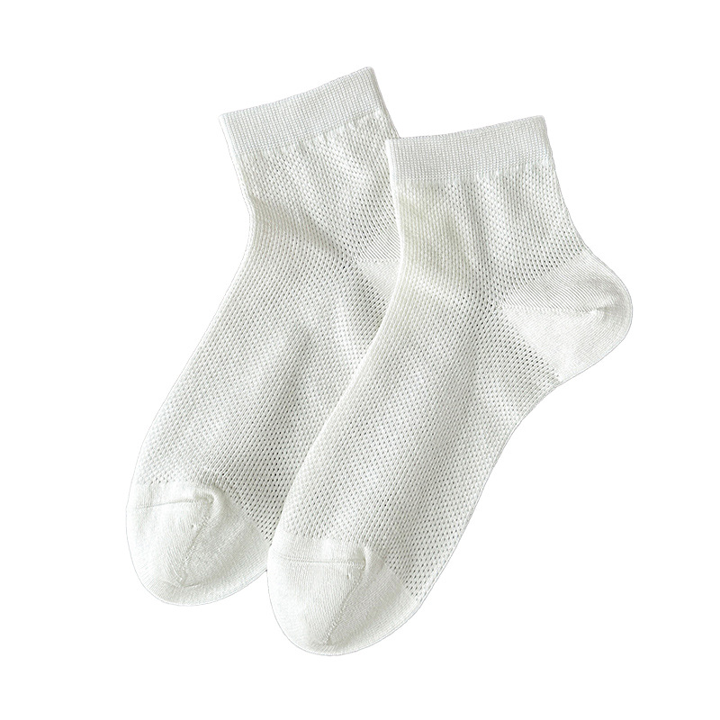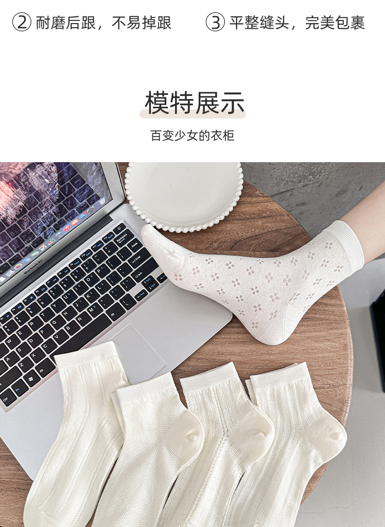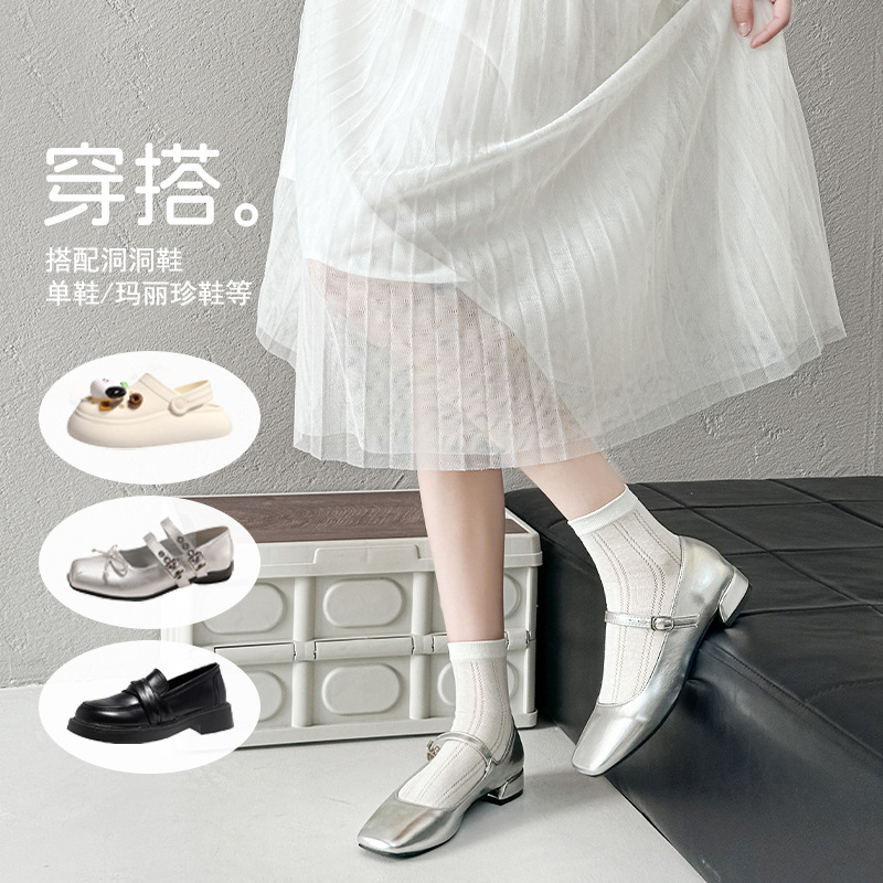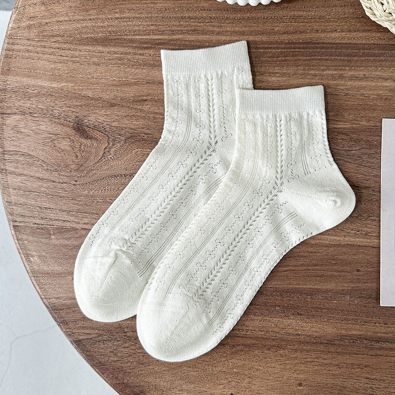 白色袜子夏女短袜夏季薄款网眼透气女士中筒袜纯色棉袜夏天女袜