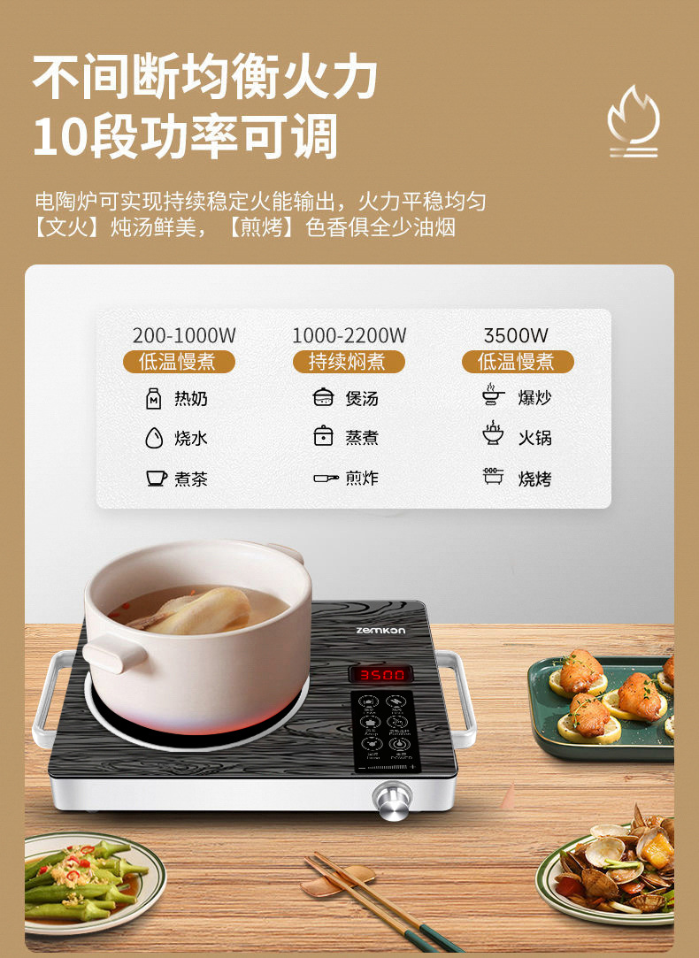 德国Zemkon电陶炉家用3500W不挑锅围炉煮茶电磁炉electric cooker