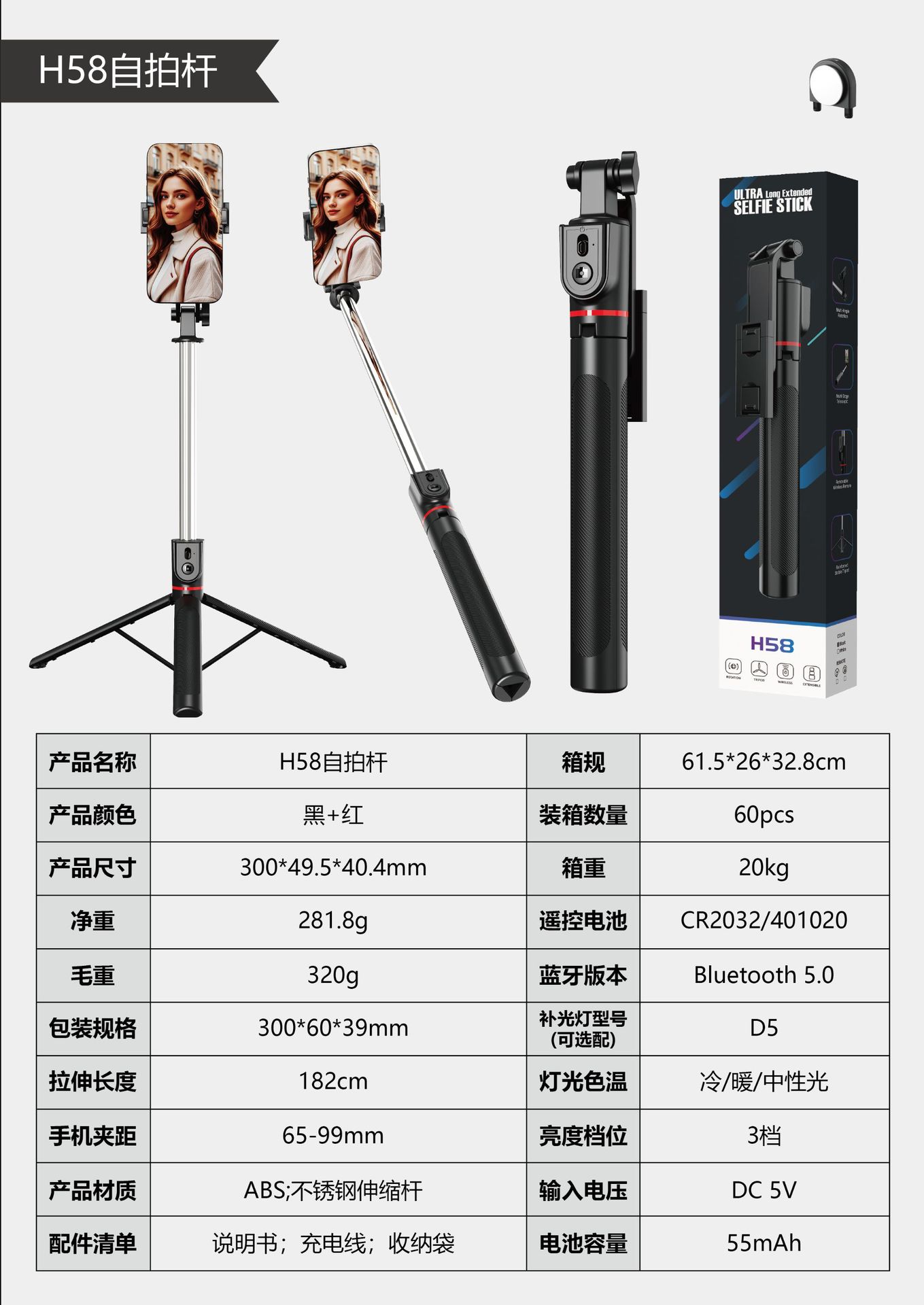手机R1自拍杆蓝牙抖音直播伸缩便携拍照摄影支架三脚架通用