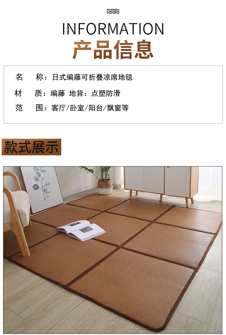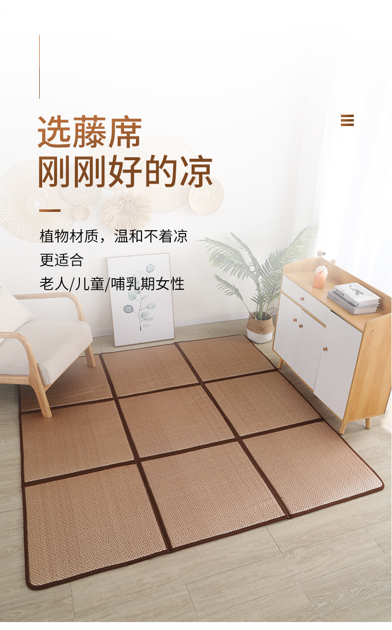 简约藤席席子凉席家用全铺拼接地垫耐脏易打理防滑垫子厂家批发