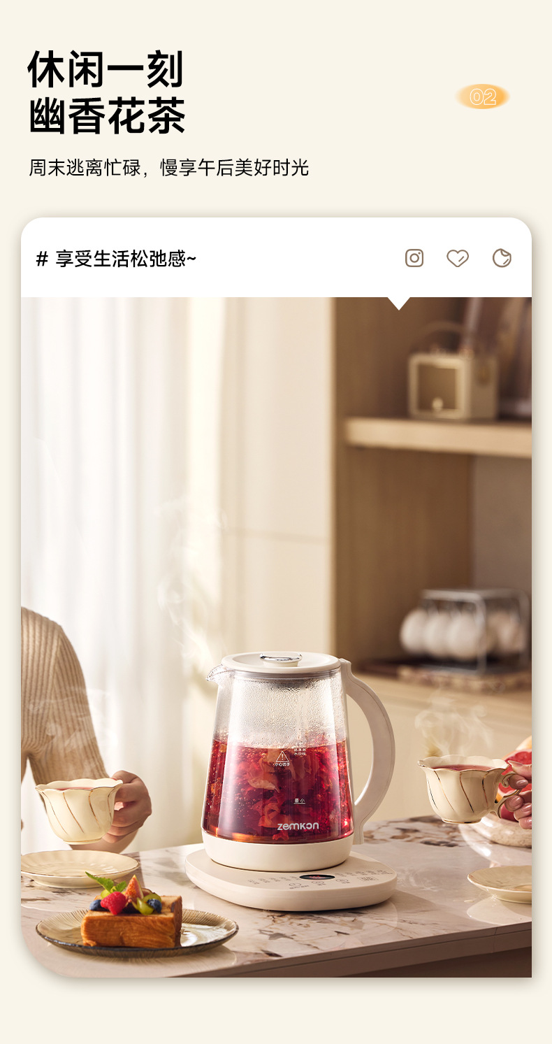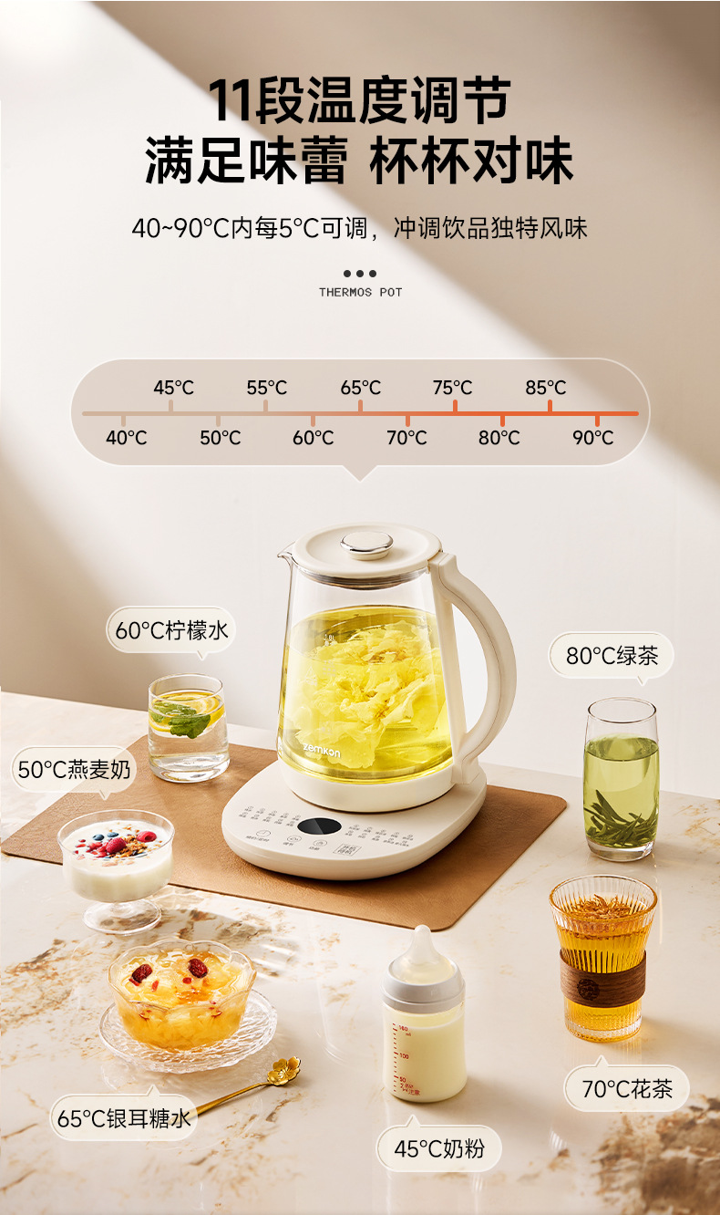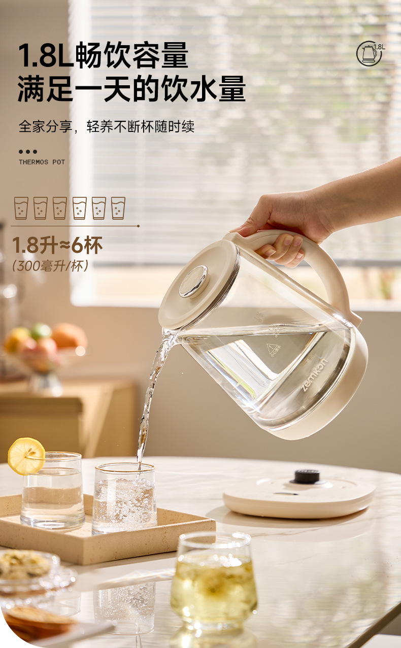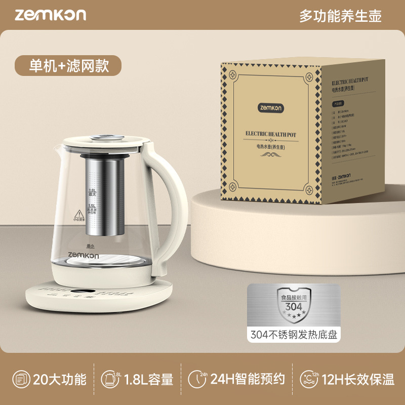 德国Zemkon养生壶多功能恒温壶家用烧水壶加厚玻璃全自动煮茶壶