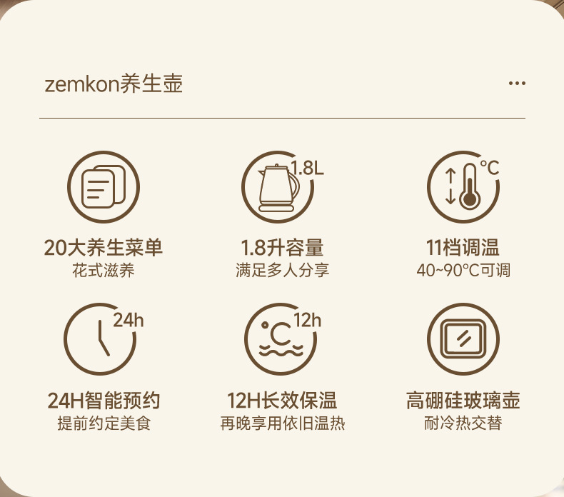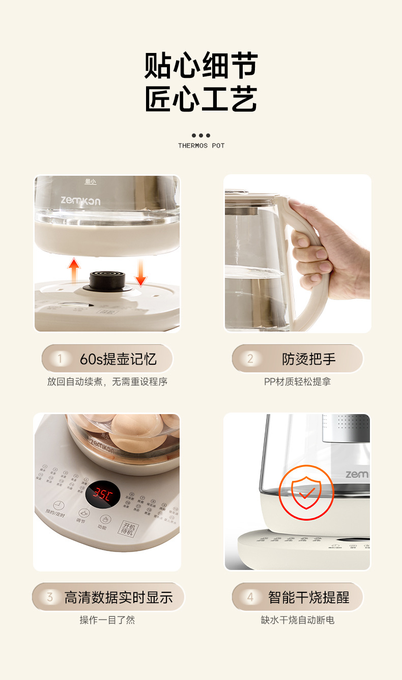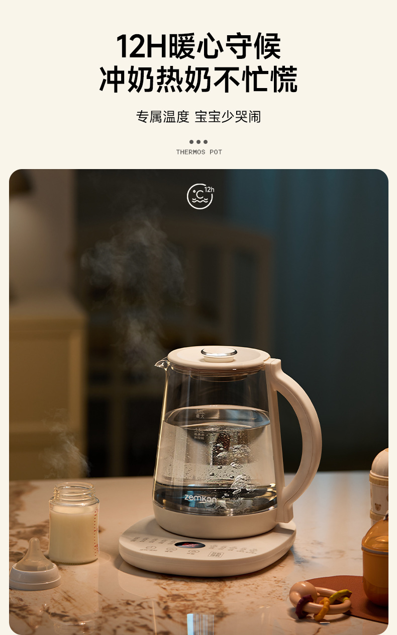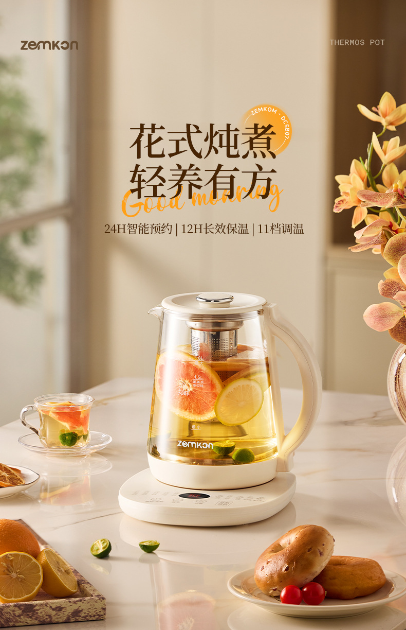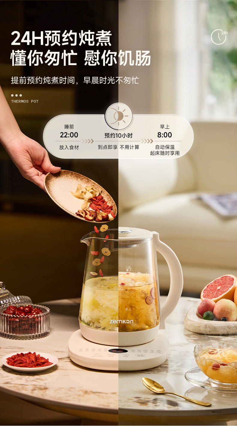 德国Zemkon养生壶多功能恒温壶家用烧水壶加厚玻璃全自动煮茶壶
