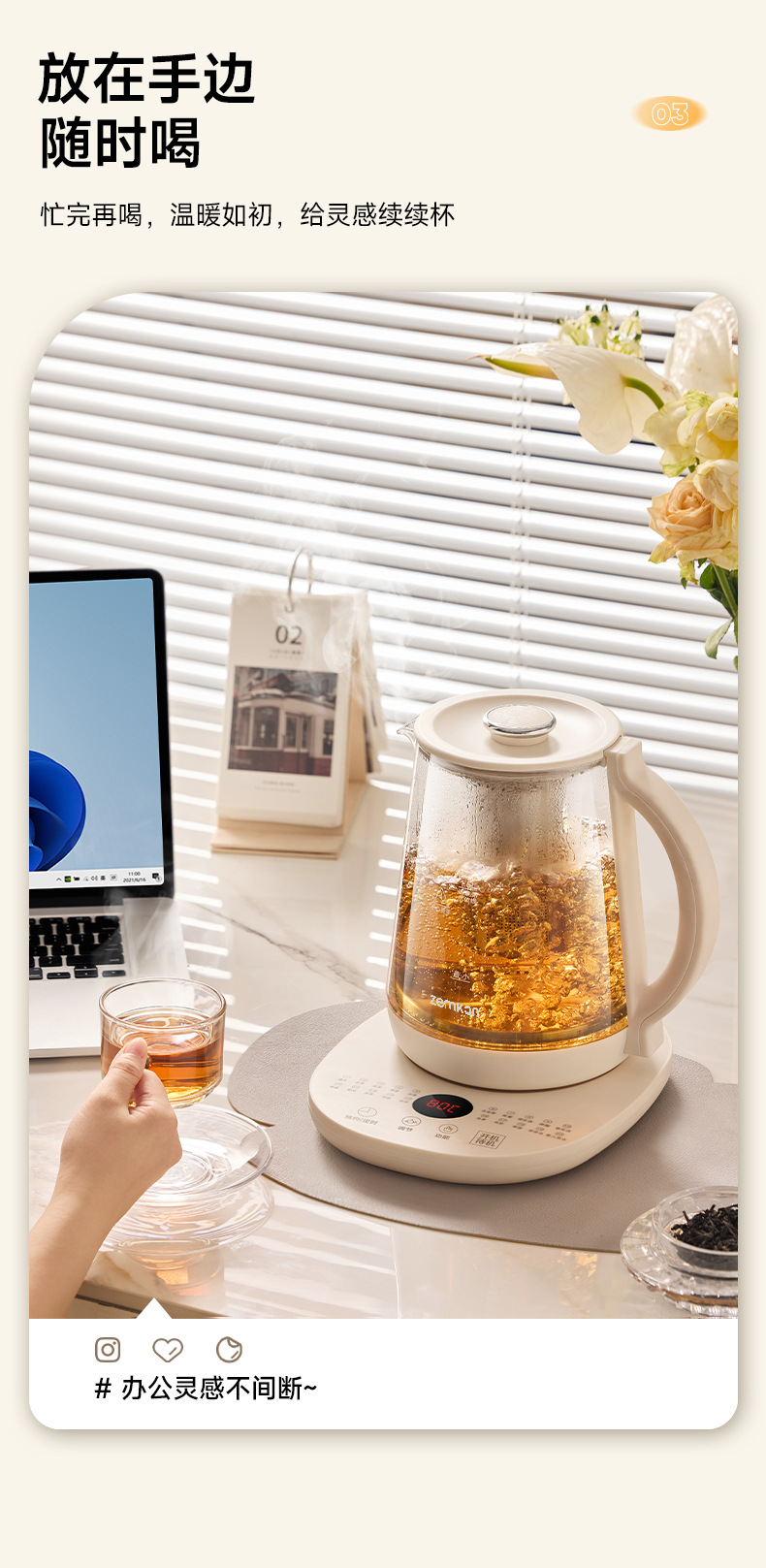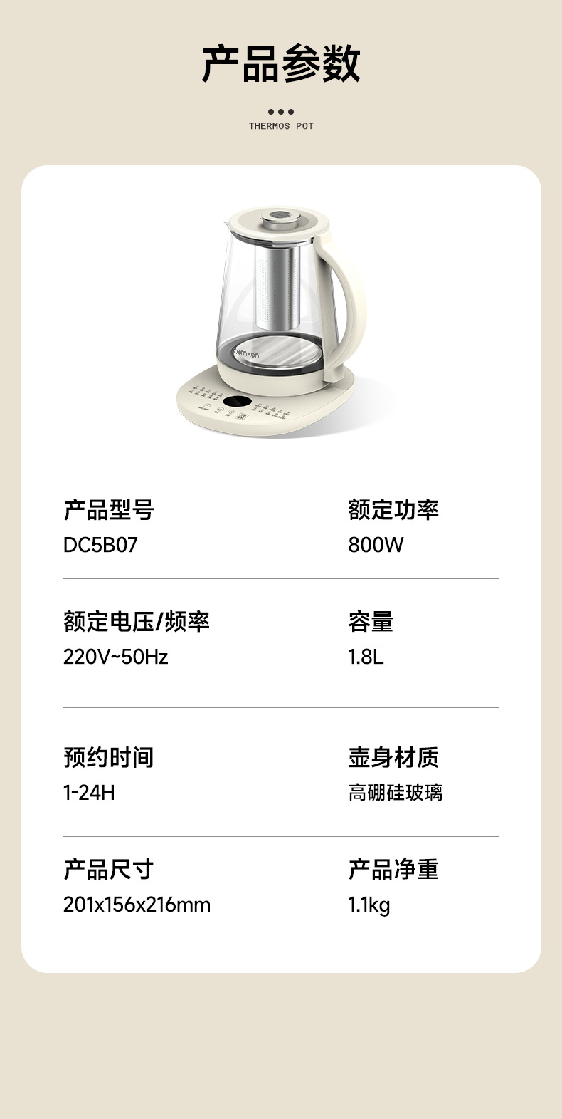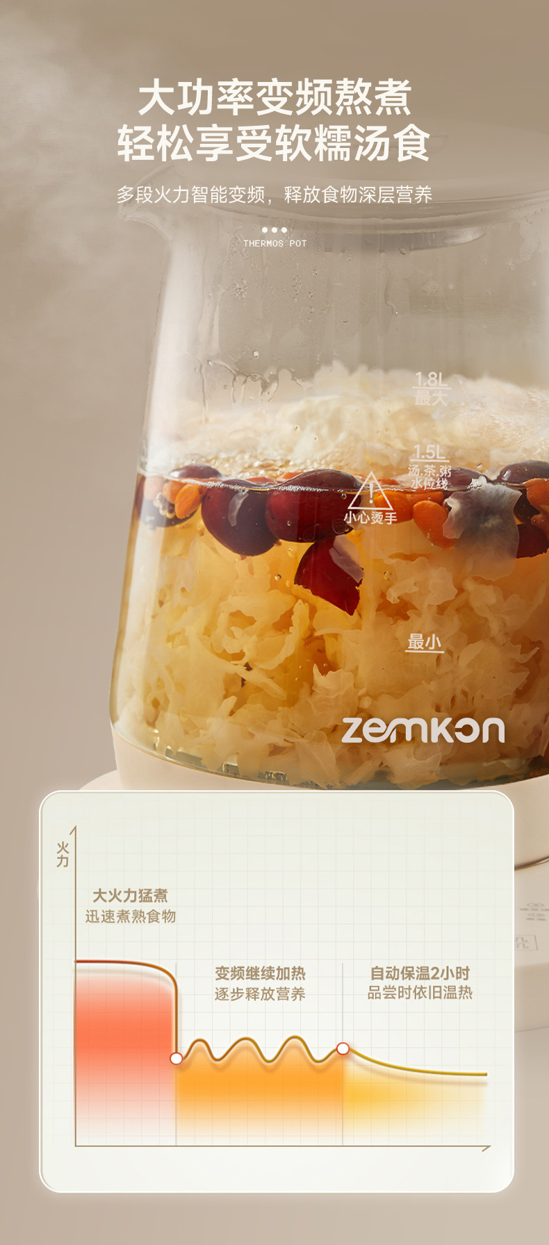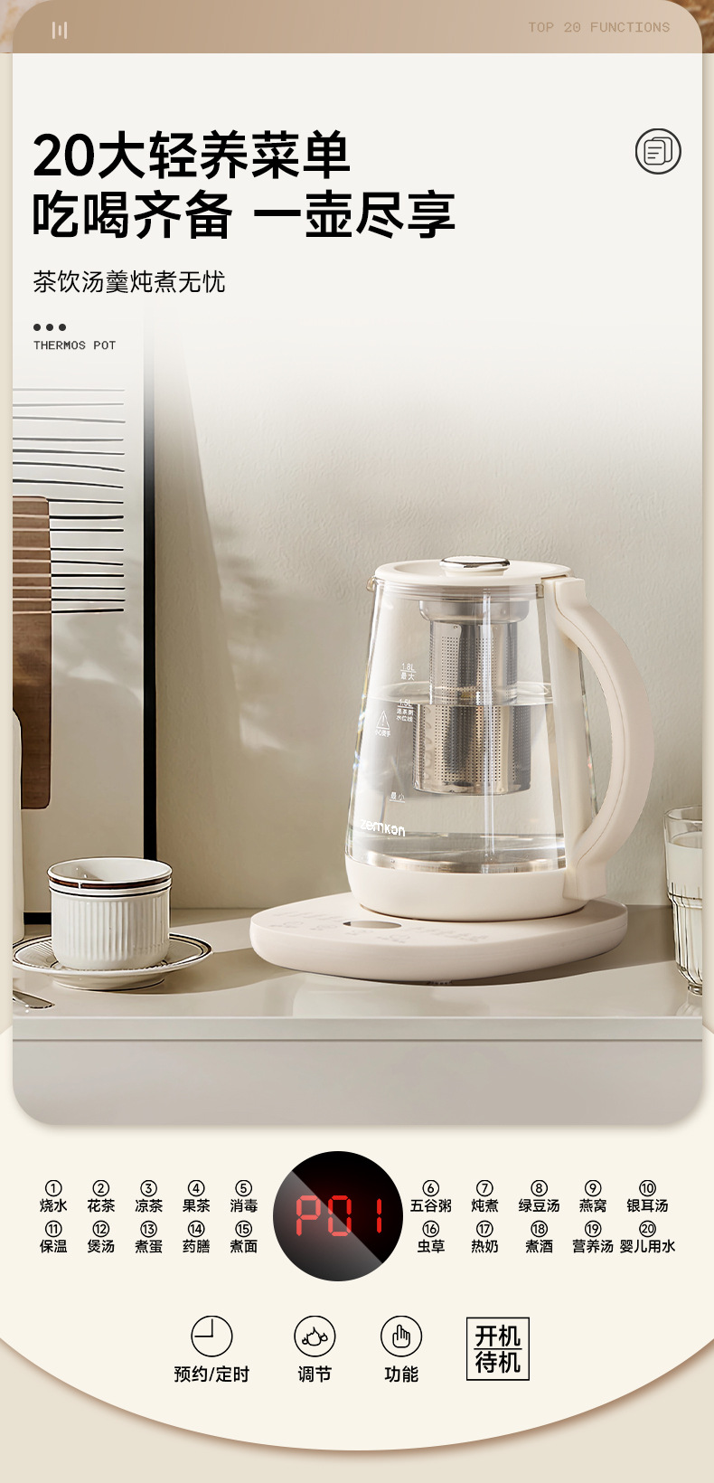 德国Zemkon养生壶多功能恒温壶家用烧水壶加厚玻璃全自动煮茶壶