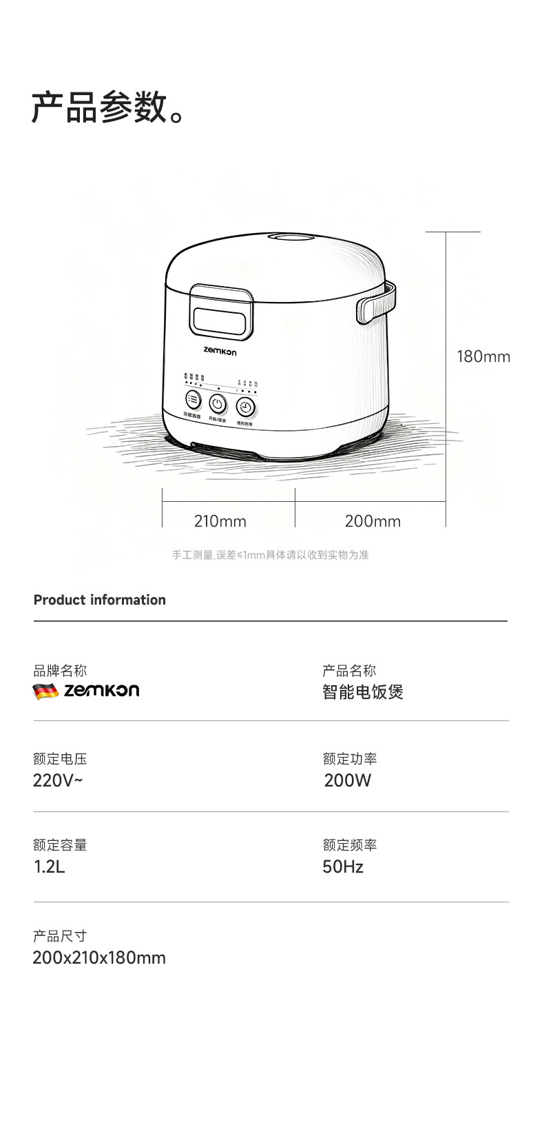 Zemkon迷你小电饭煲一人家用1-2人蒸煮一体钛胆小型小2人电饭锅