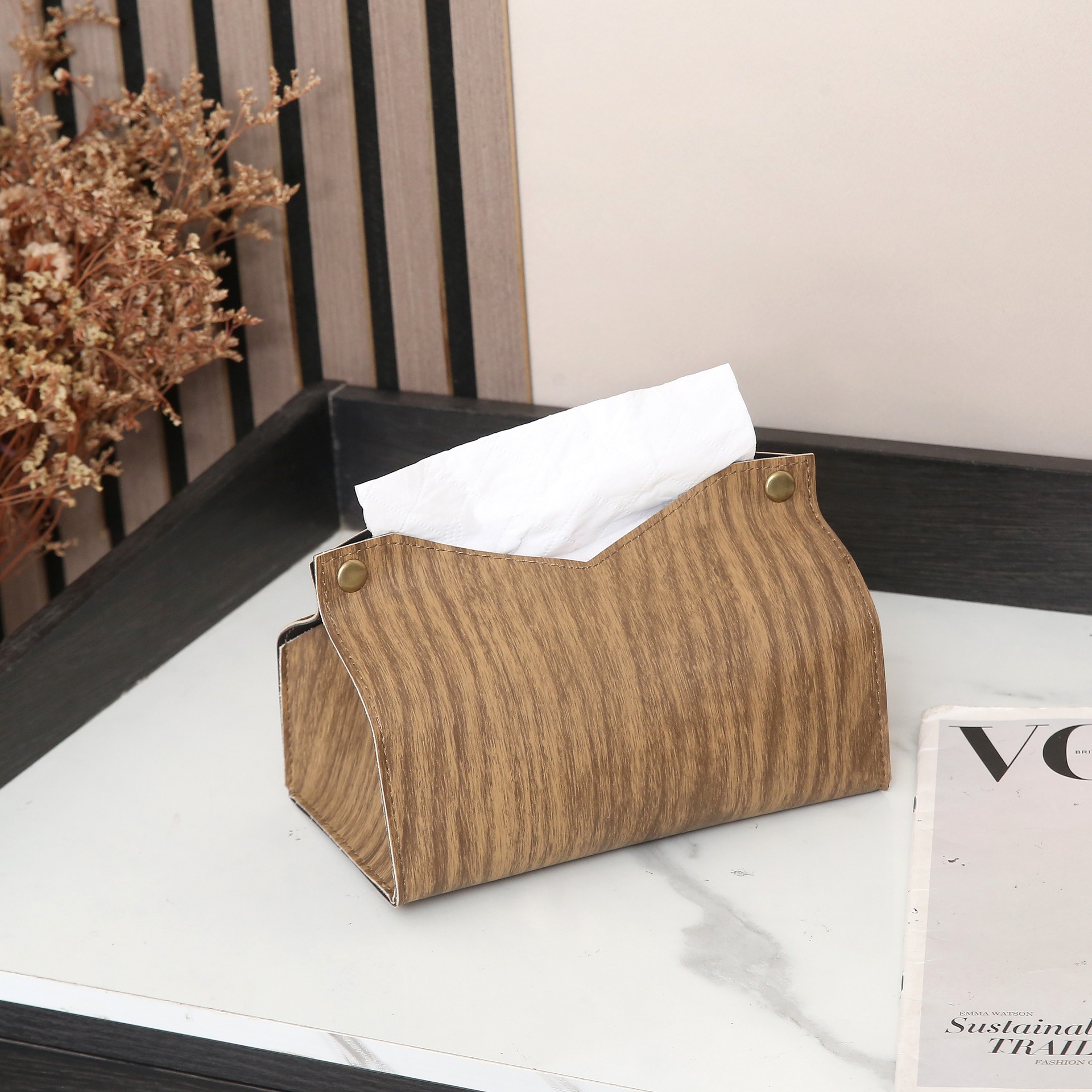 皮革木纹纸巾盒酒店抽纸盒车用家用轻奢高级感皮革材质纸巾盒批发