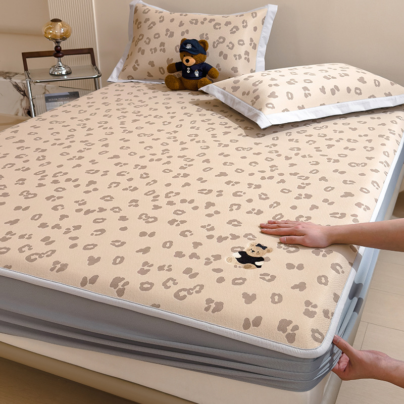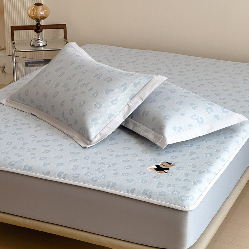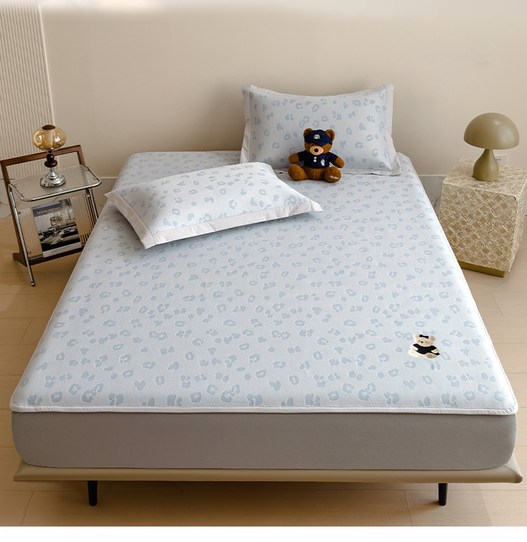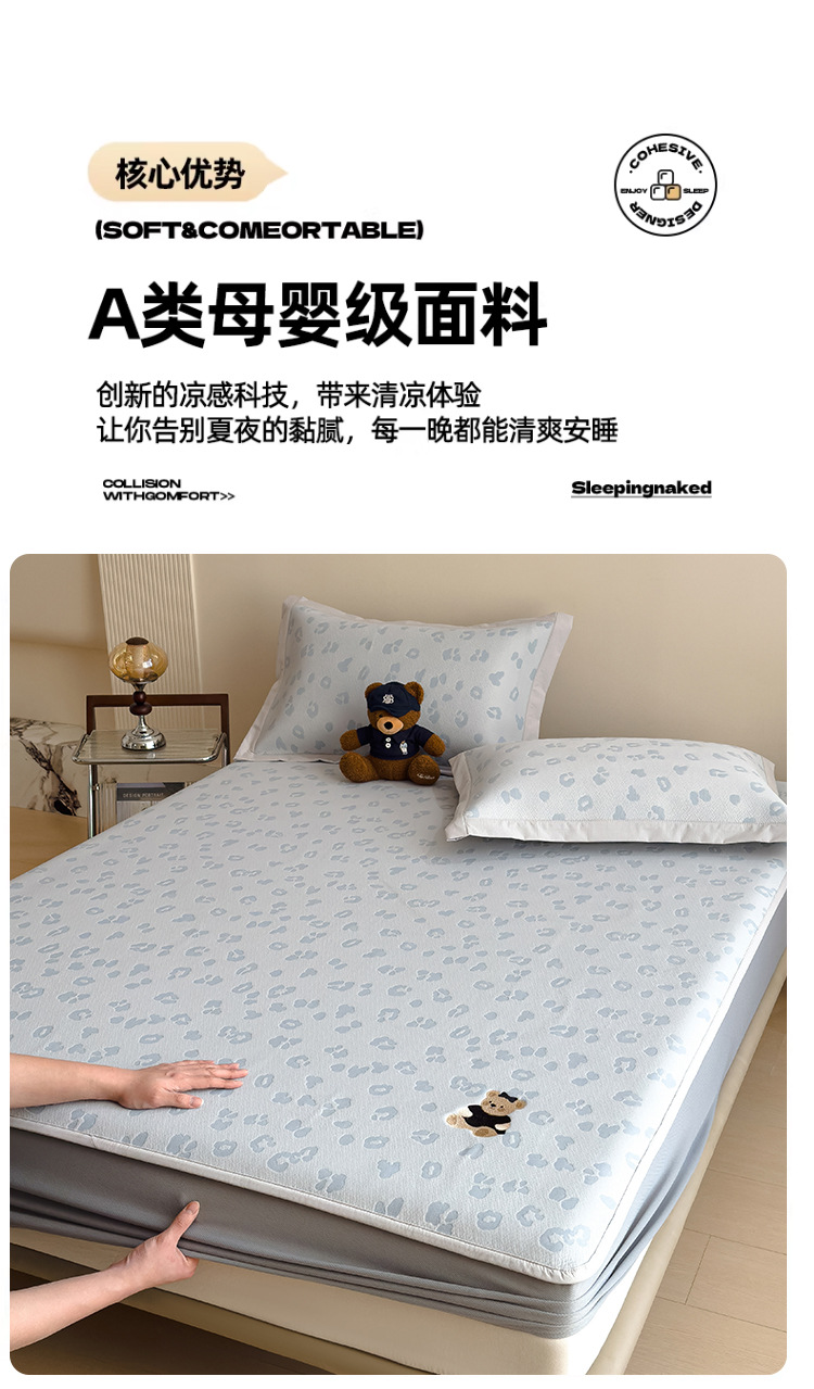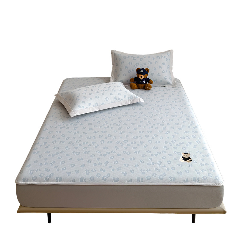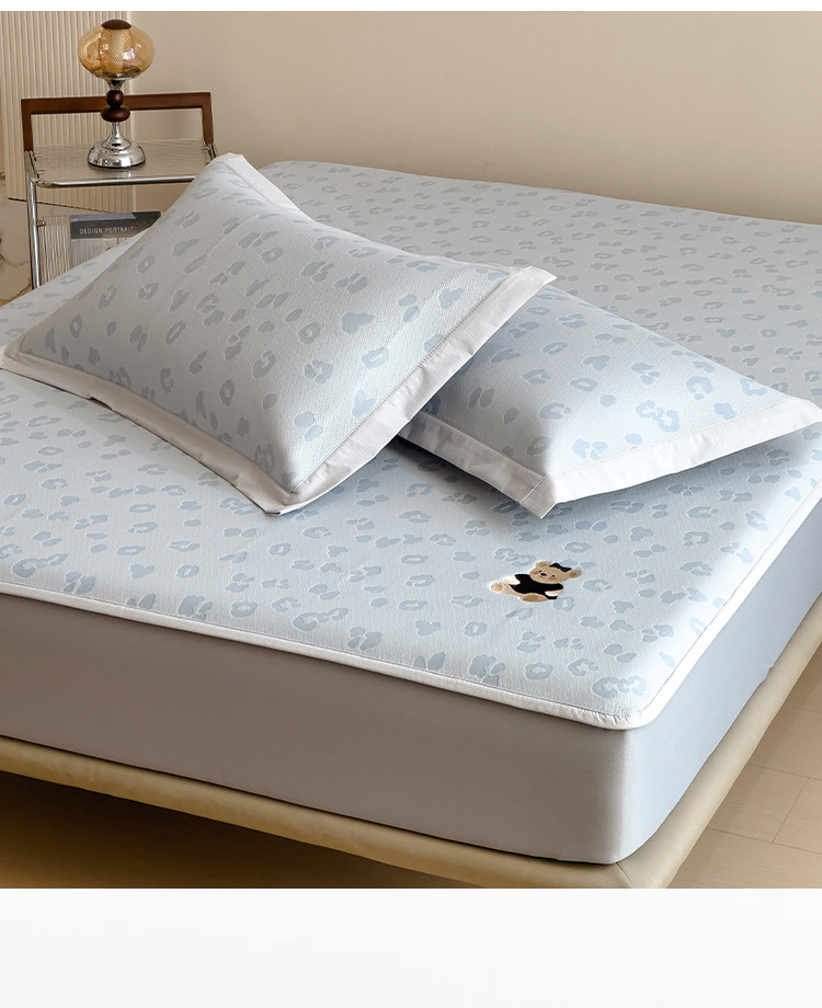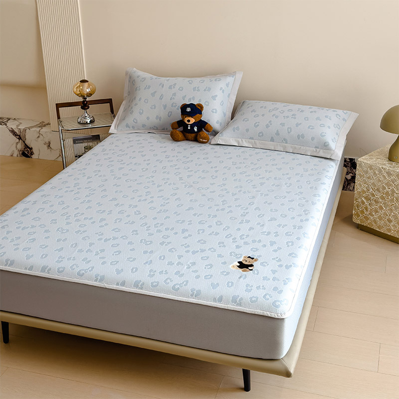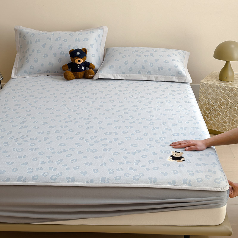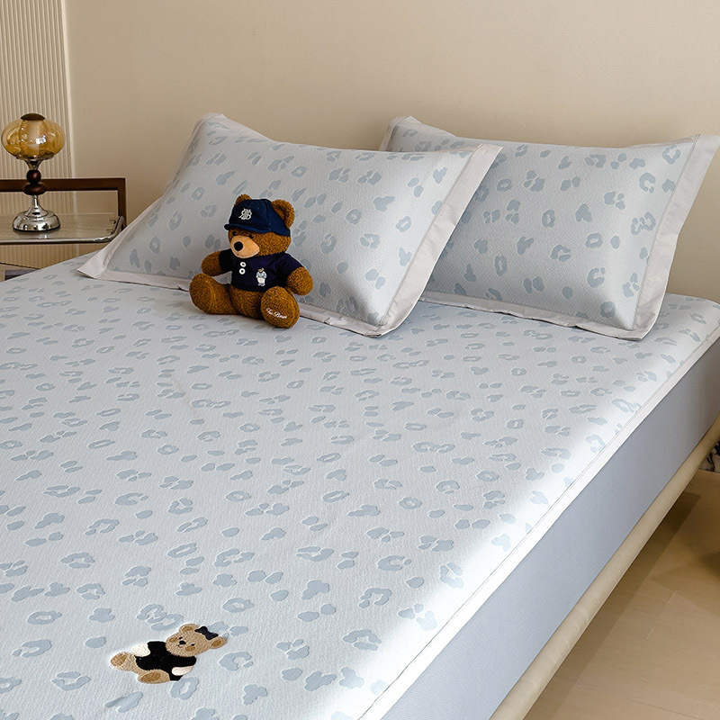 小清新冰豆豆豹纹小熊刺绣凉感值过0.21夏季必备的冰丝席凉席床笠