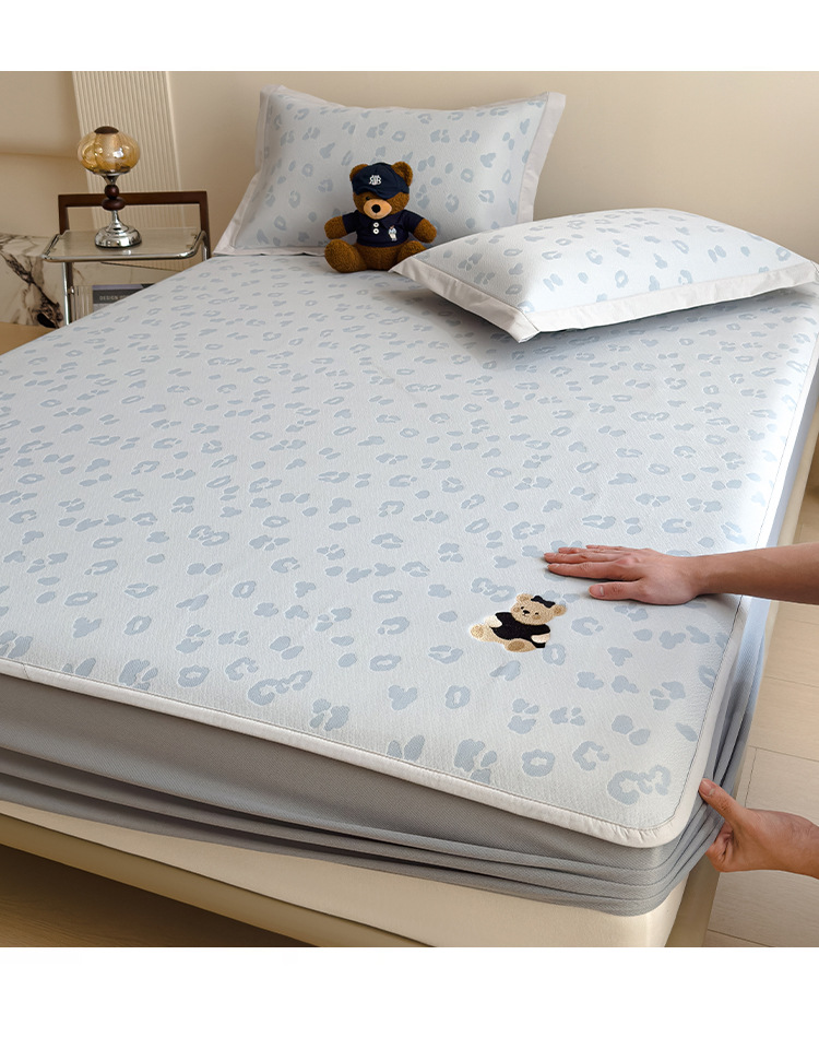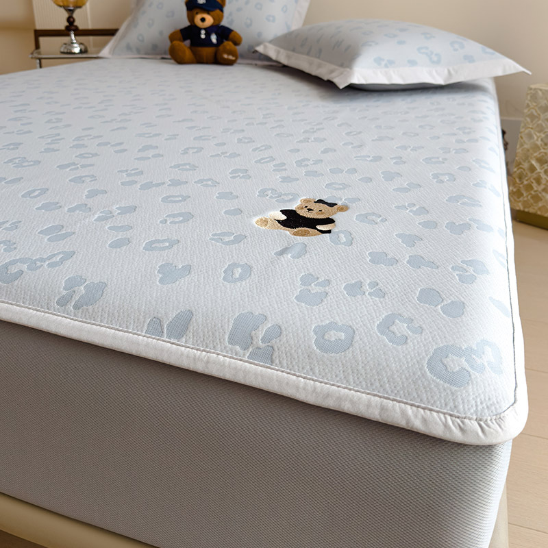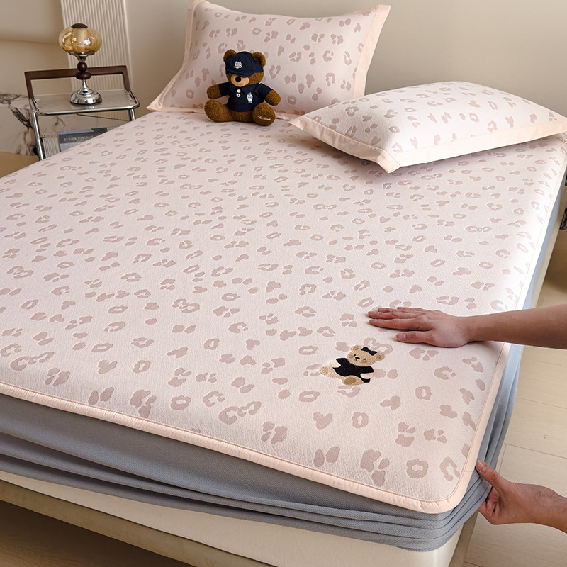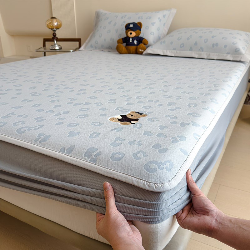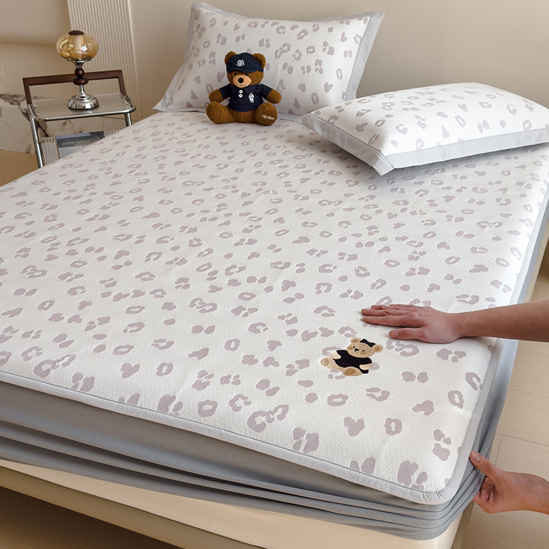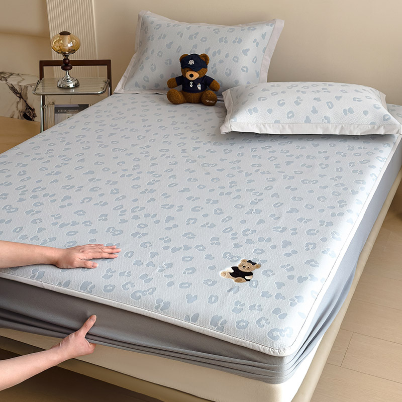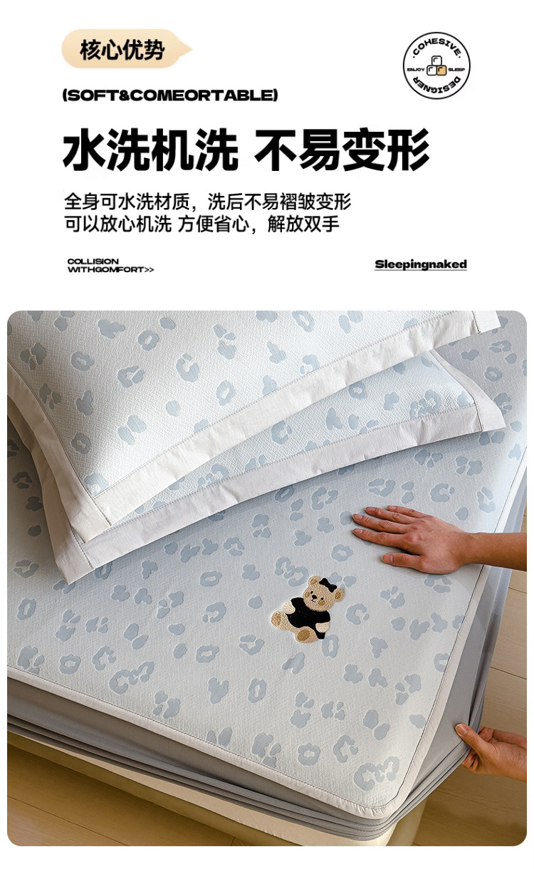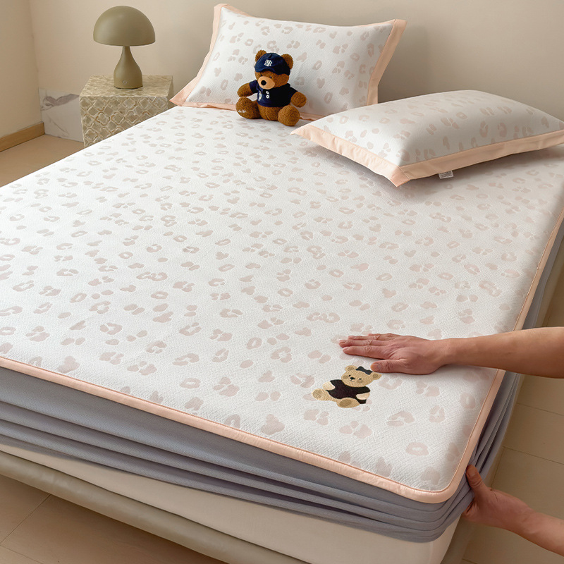 小清新冰豆豆豹纹小熊刺绣凉感值过0.21夏季必备的冰丝席凉席床笠