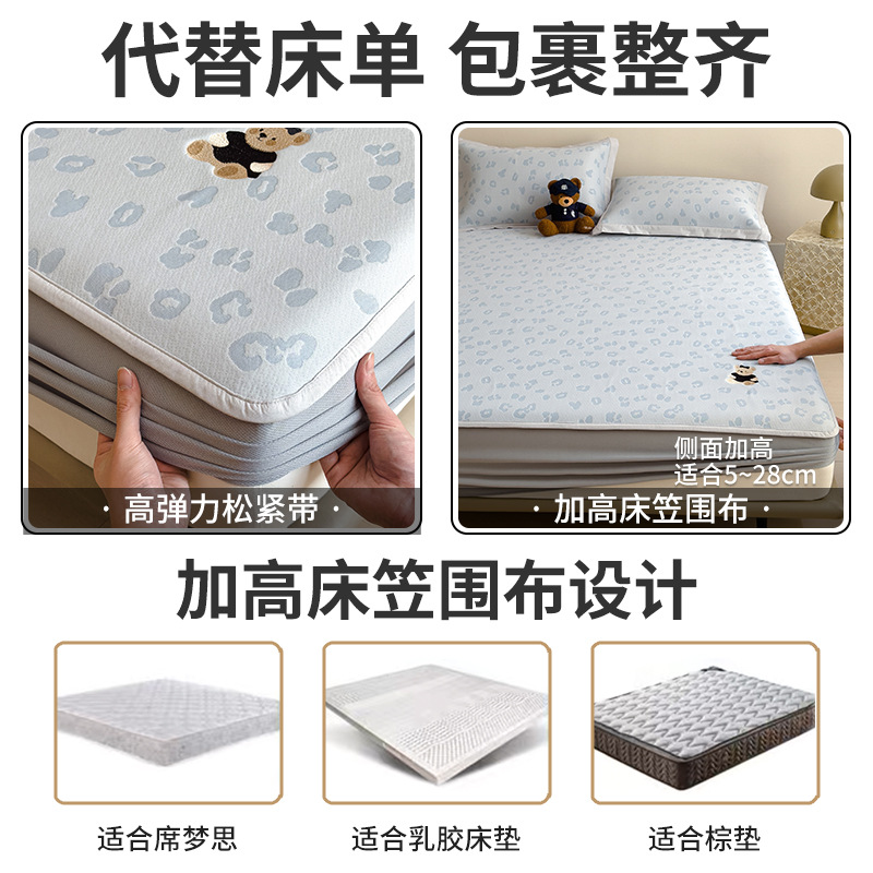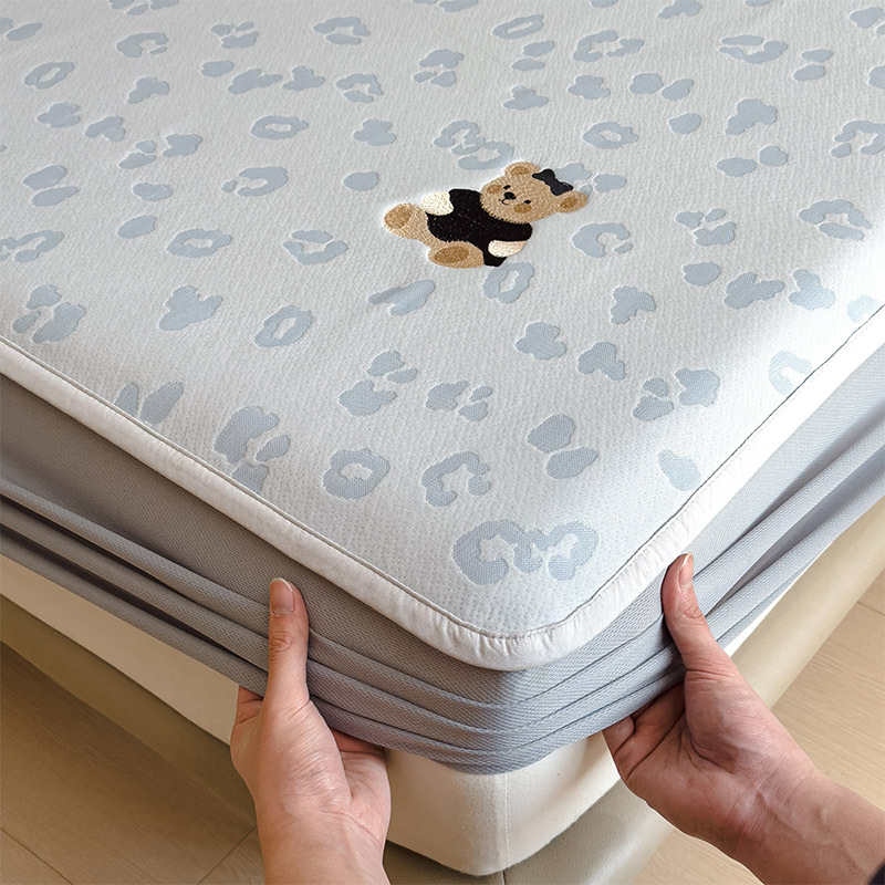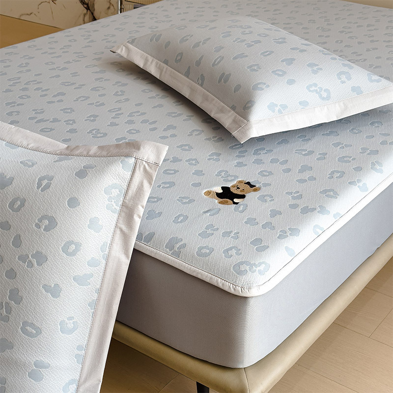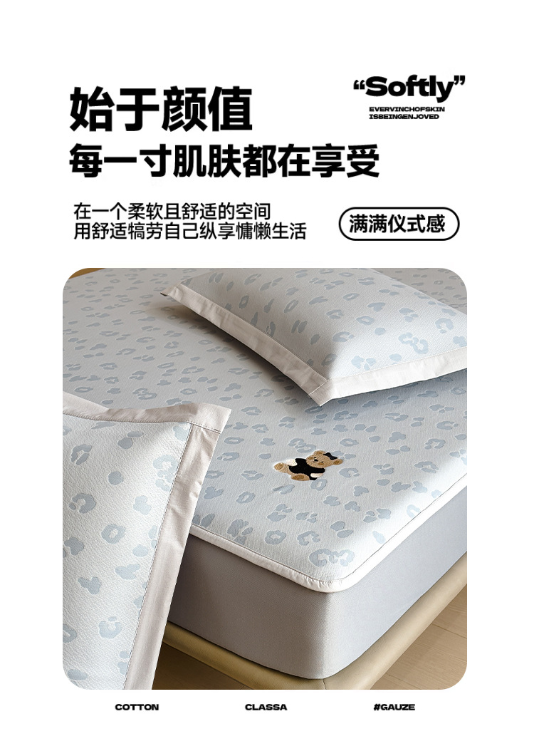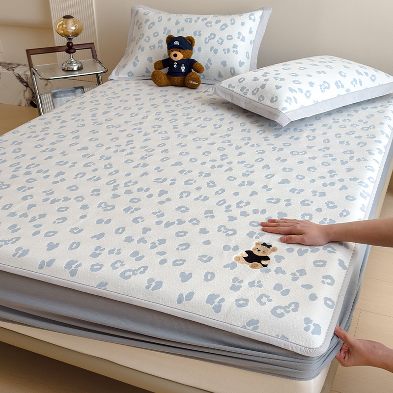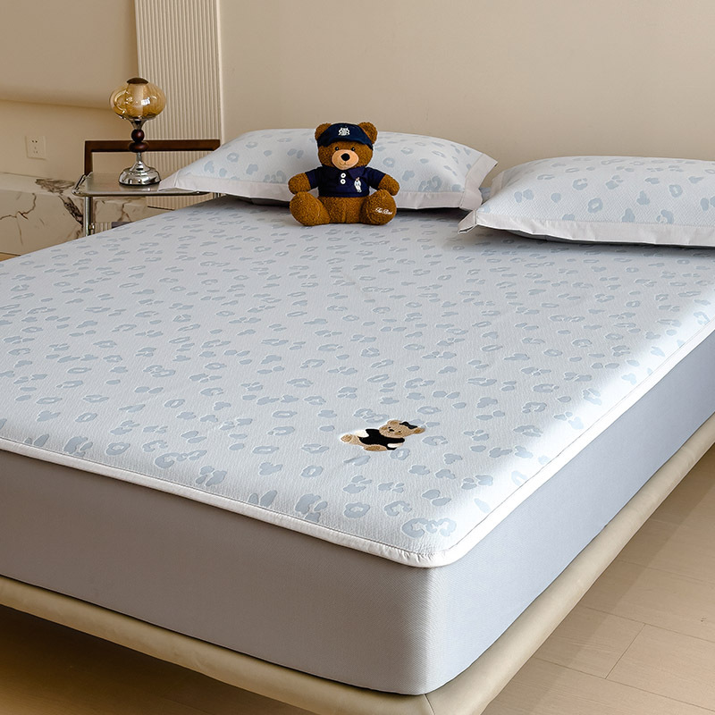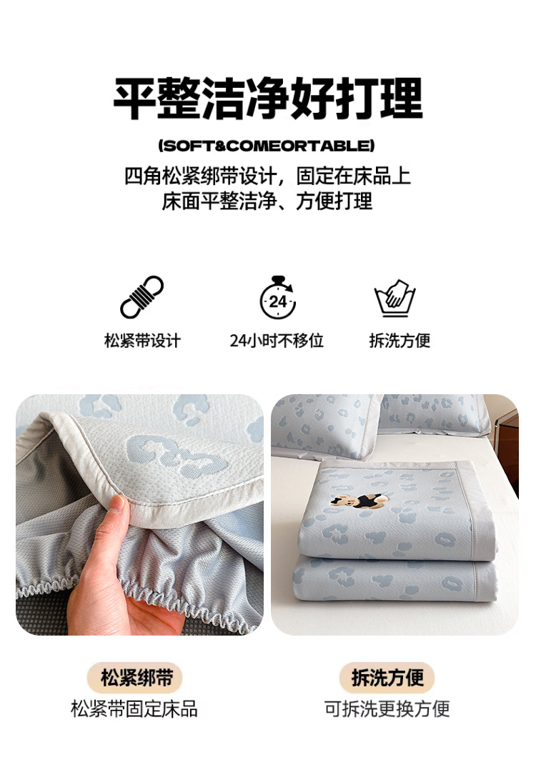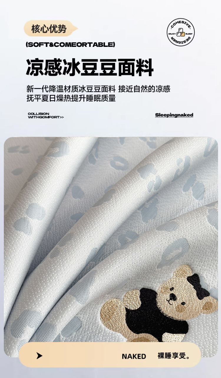 小清新冰豆豆豹纹小熊刺绣凉感值过0.21夏季必备的冰丝席凉席床笠