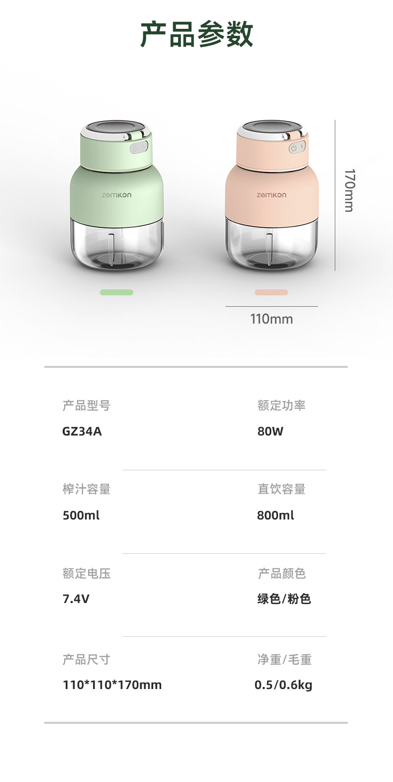 德国Zemkon榨汁机便携小质水果做果汁机多功能榨汁桶榨汁杯吨吨杯