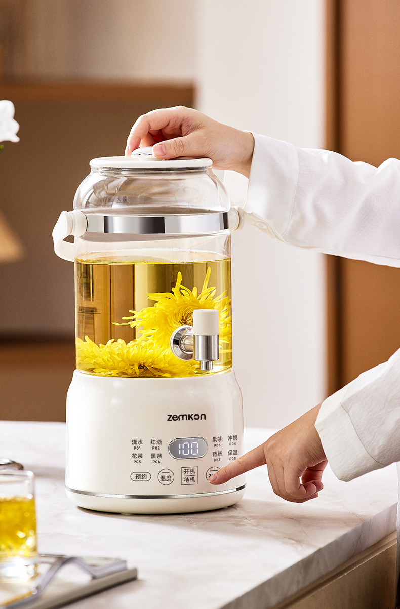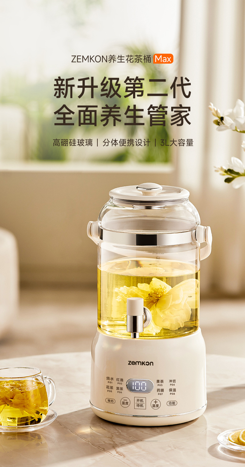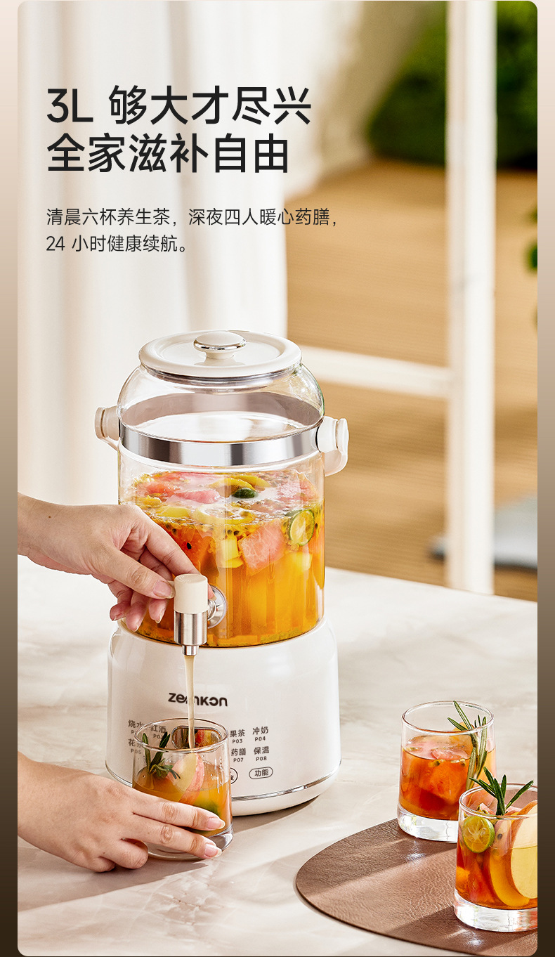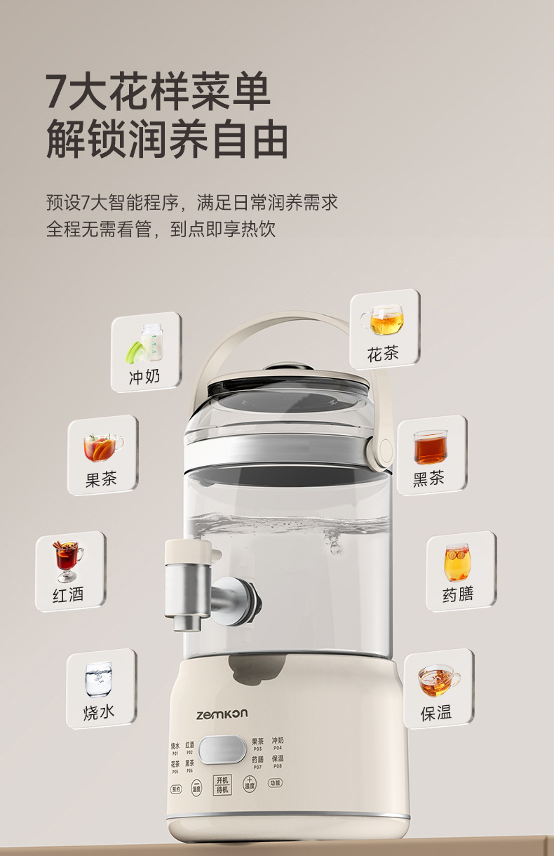 Zemkon家用3L养生壶炖煮一体花茶壶恒温玻璃智能全自动电热烧水壶