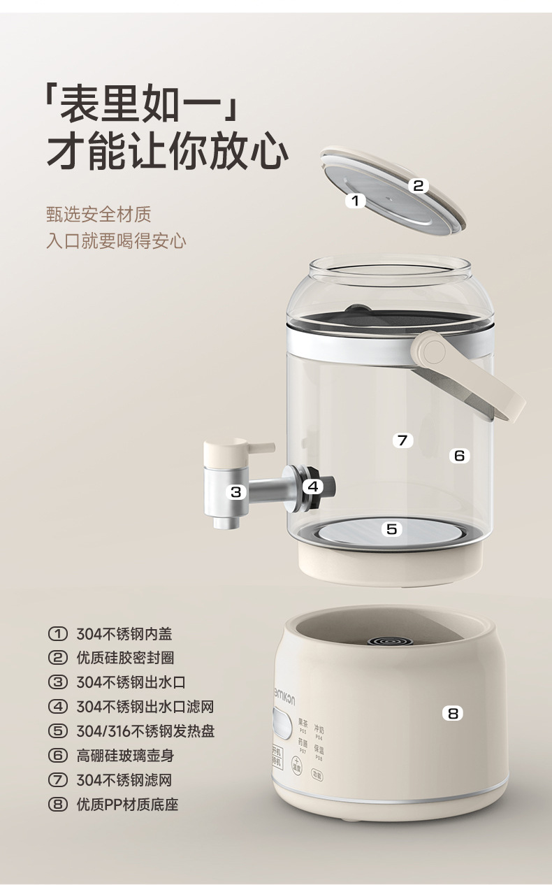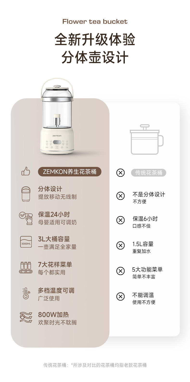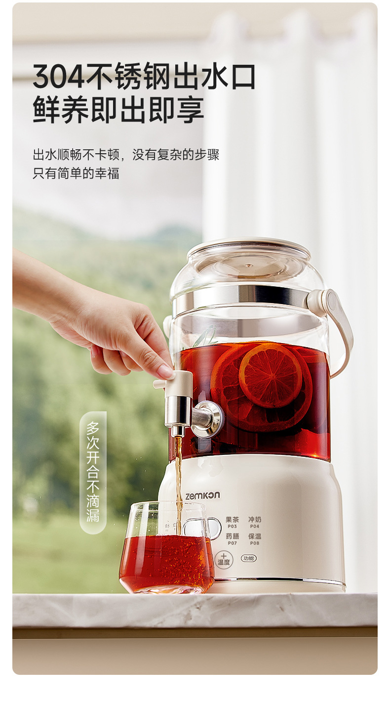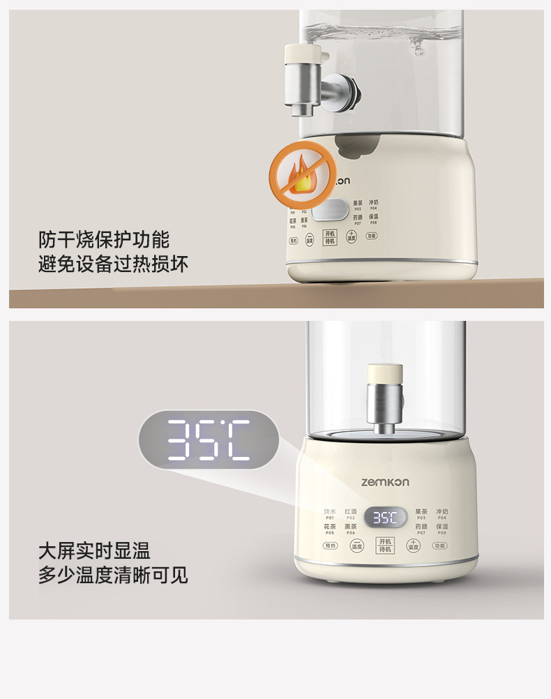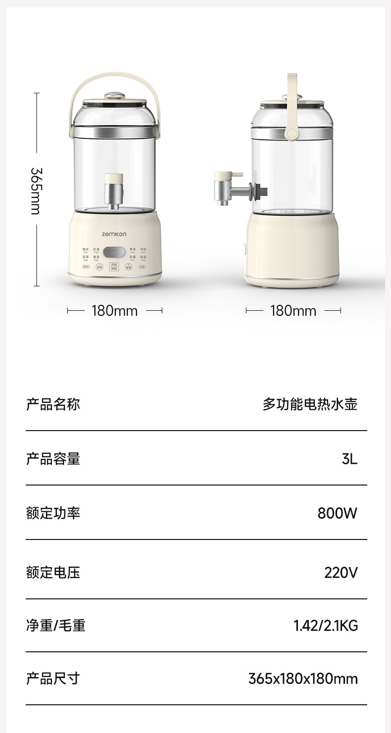 Zemkon家用3L养生壶炖煮一体花茶壶恒温玻璃智能全自动电热烧水壶