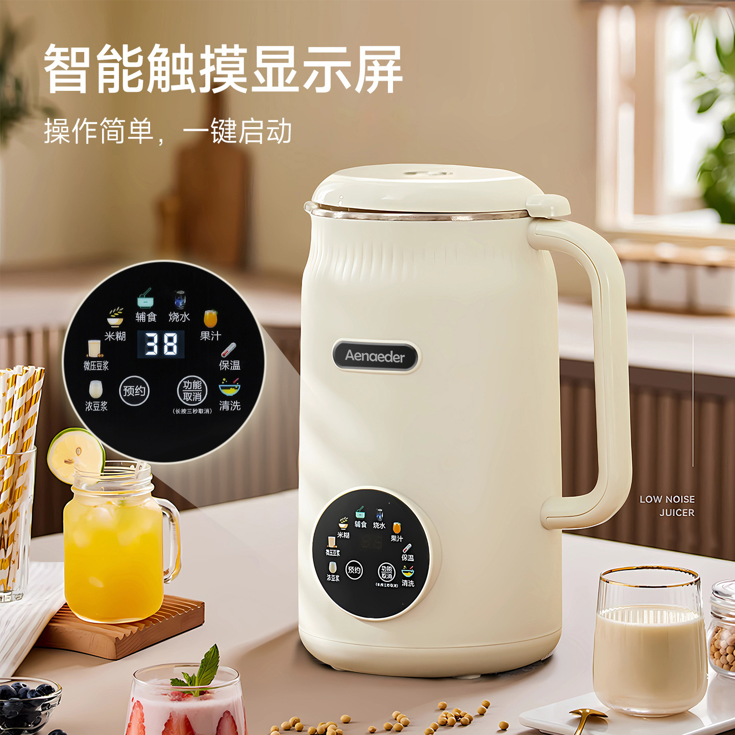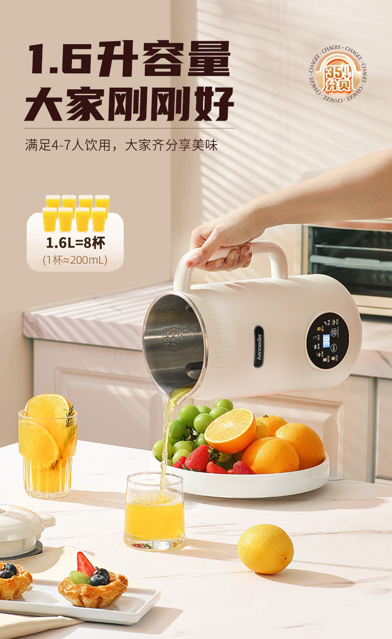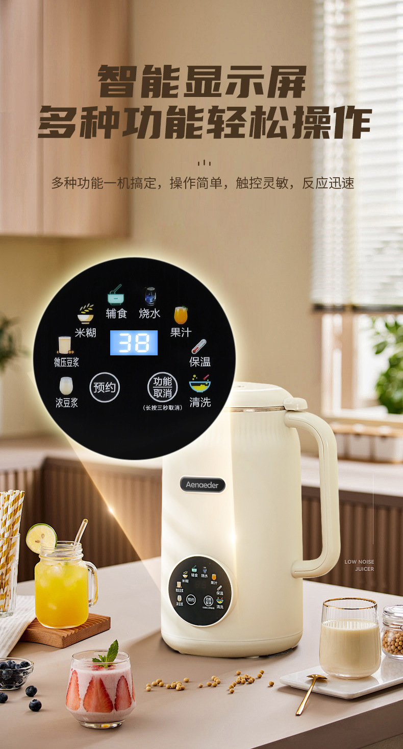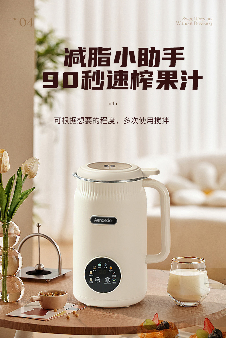 英国Aenaeder豆浆机大容量家用3-4人多功能全自动免滤小型破壁机