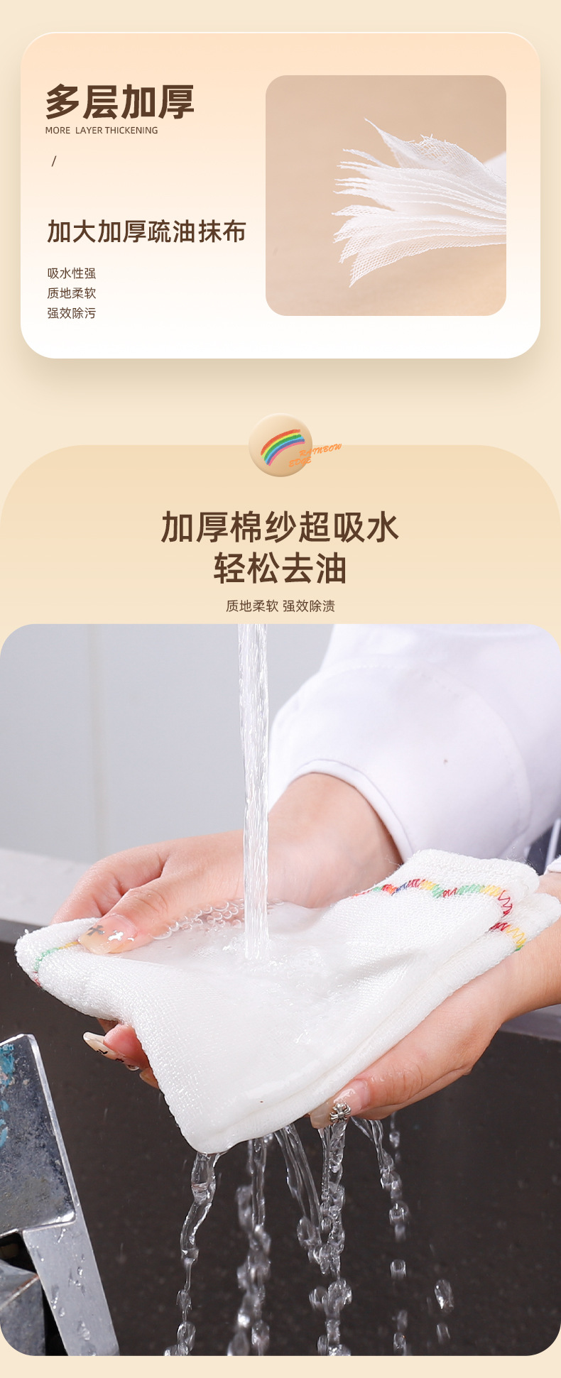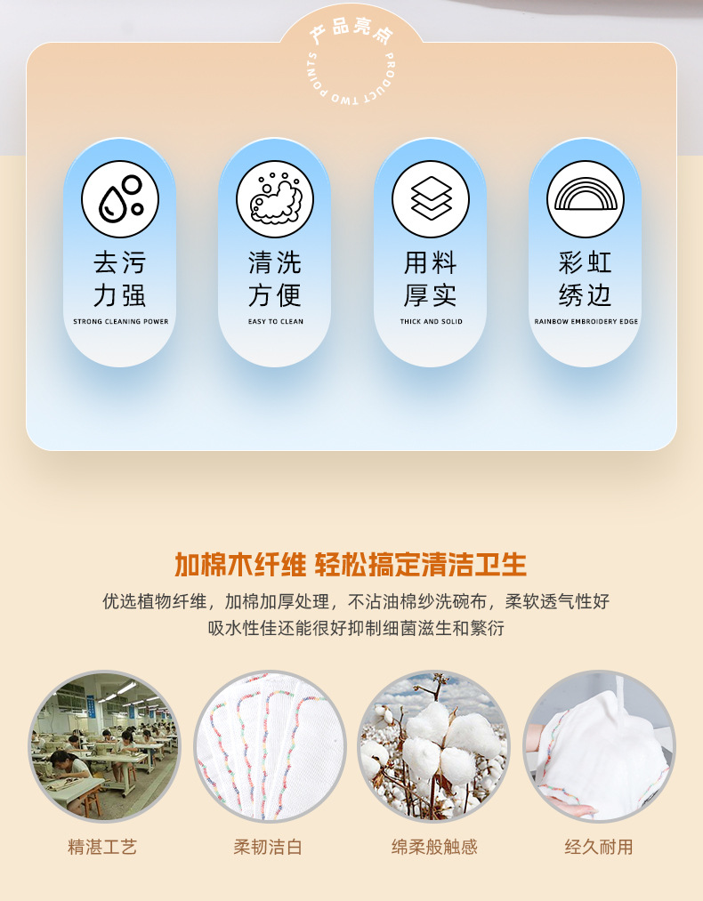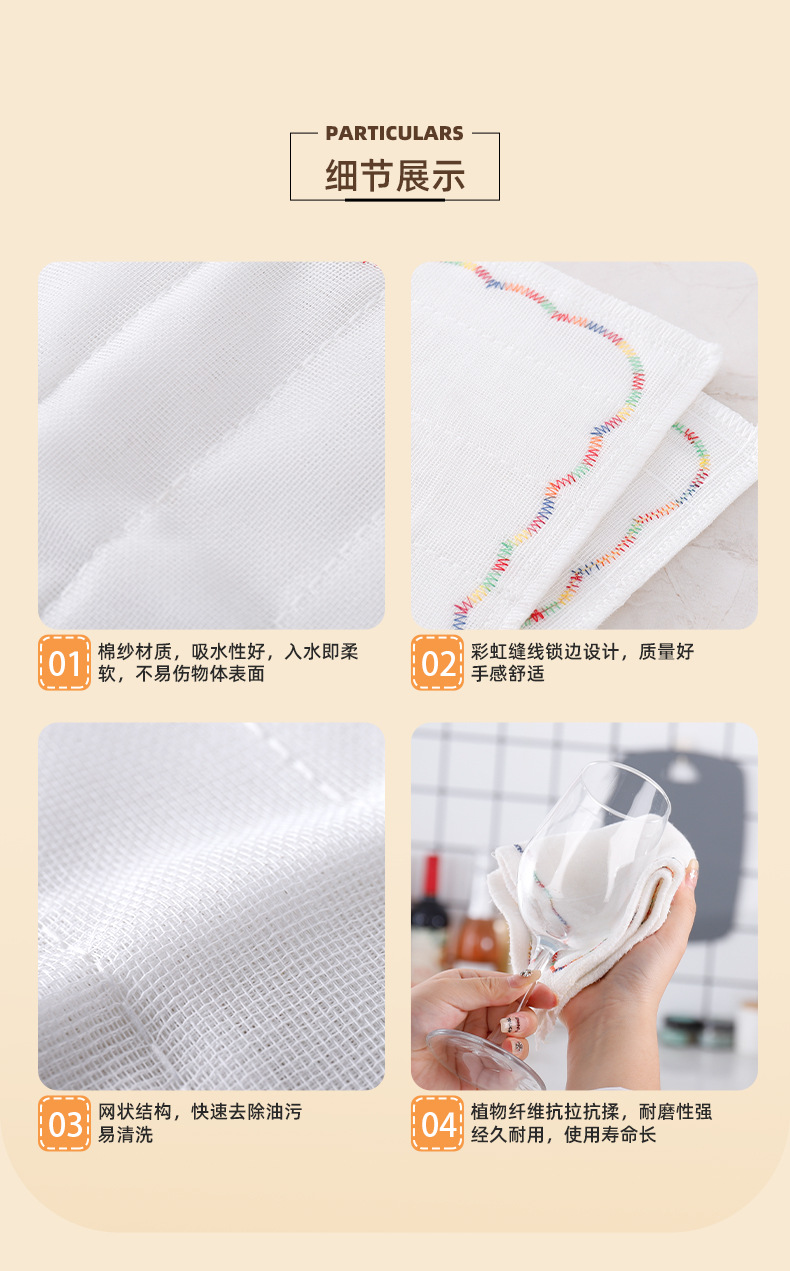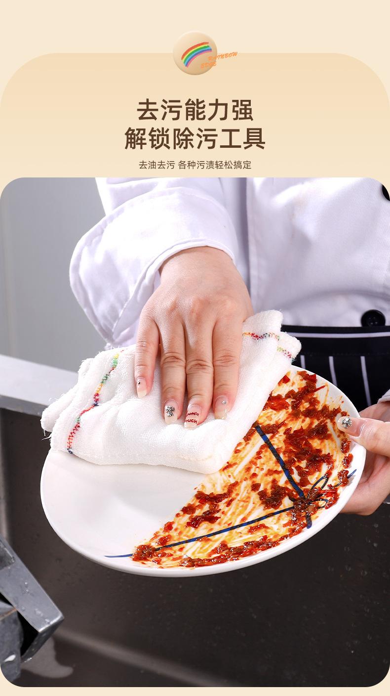 5层8层彩虹疏油抹布棉加厚全棉吸水洗碗布不粘油不掉毛厨房洗碗巾
