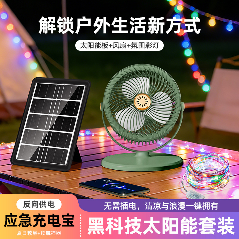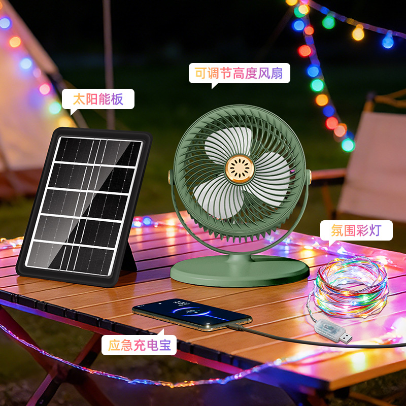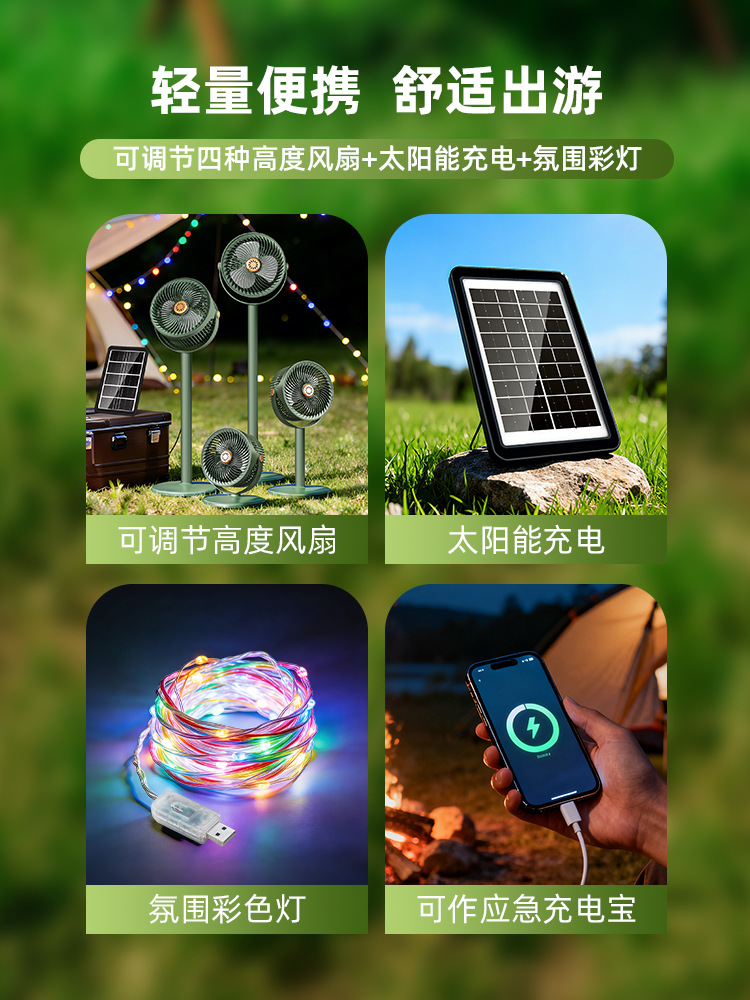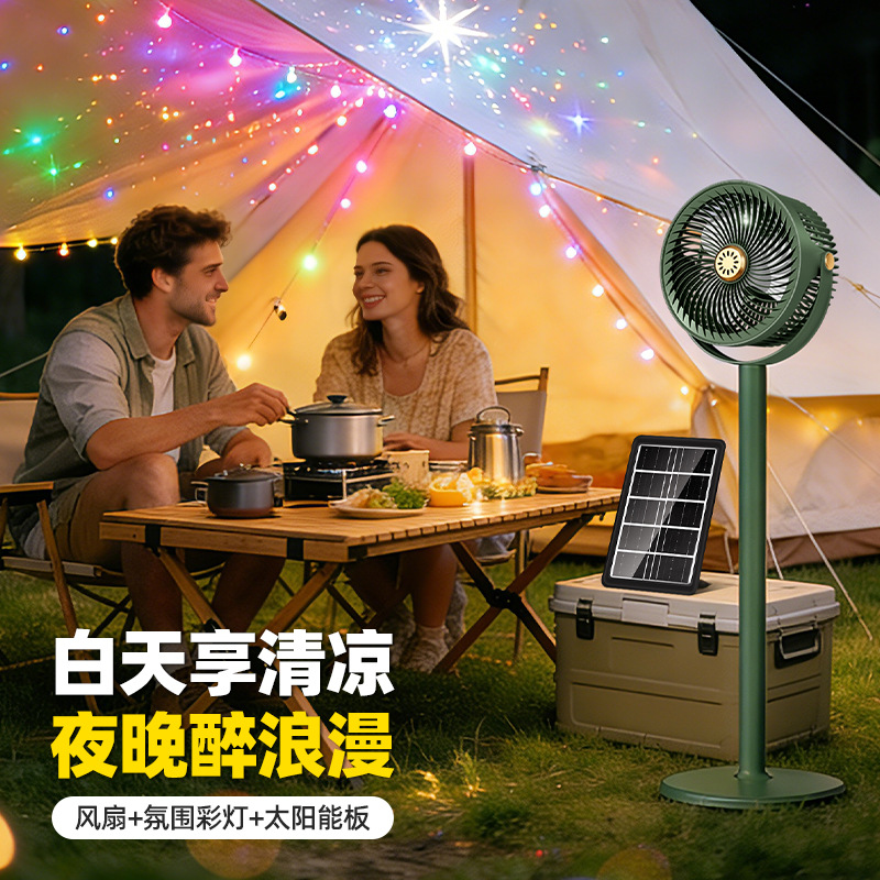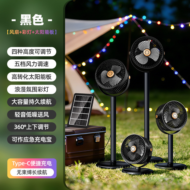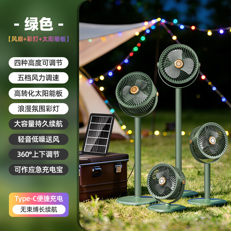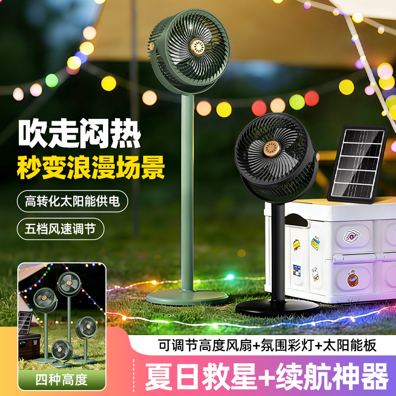 跨境太阳能充电落地扇可伸缩USB户外照明循环扇家用台式立式风扇