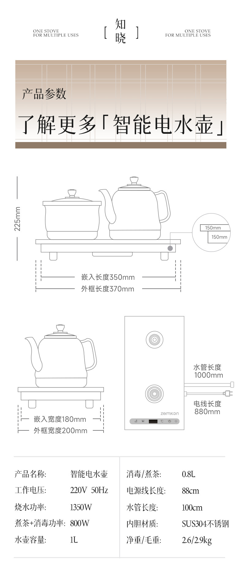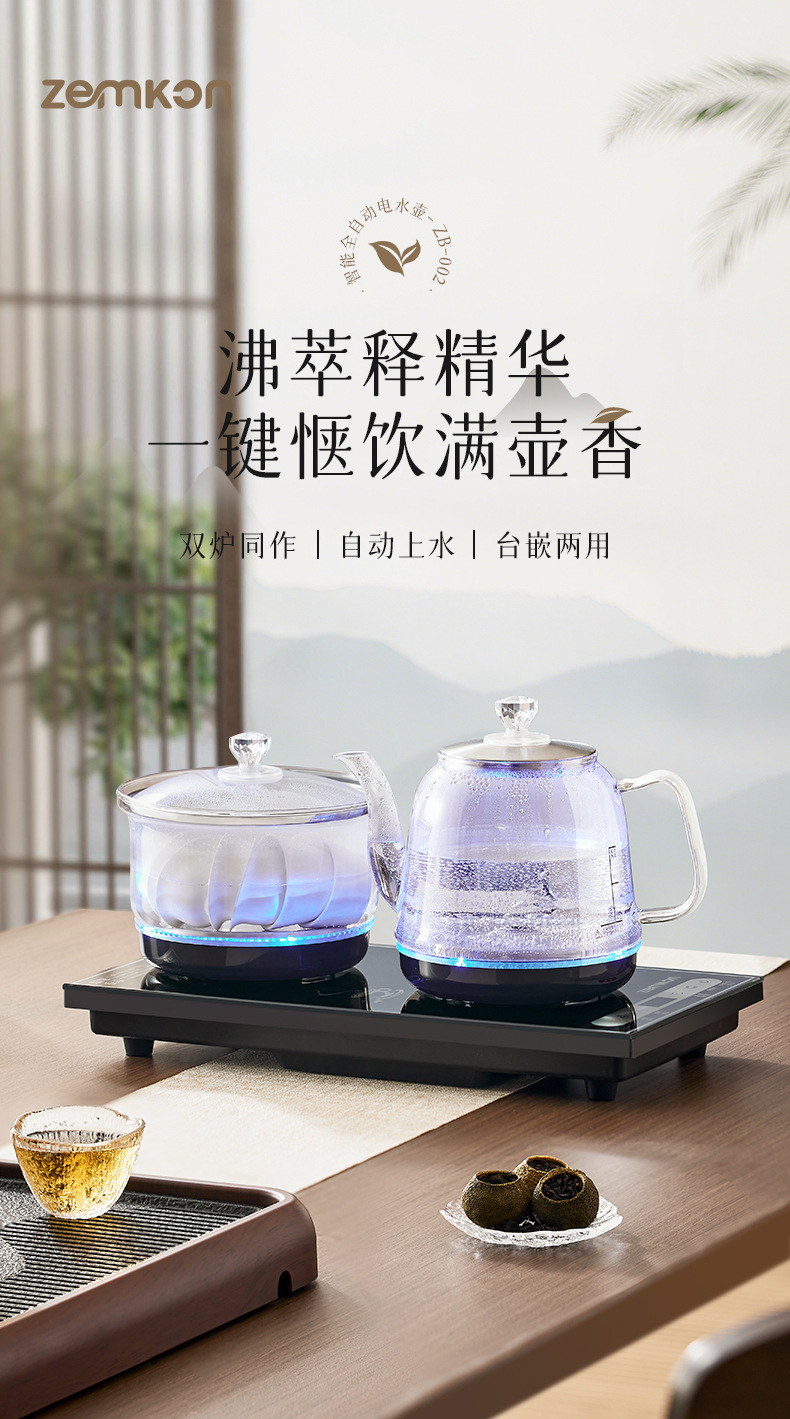 Zemkon全自动上水电热水壶嵌入式茶台泡茶烧水壶抽水一体煮茶器