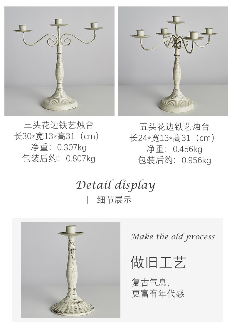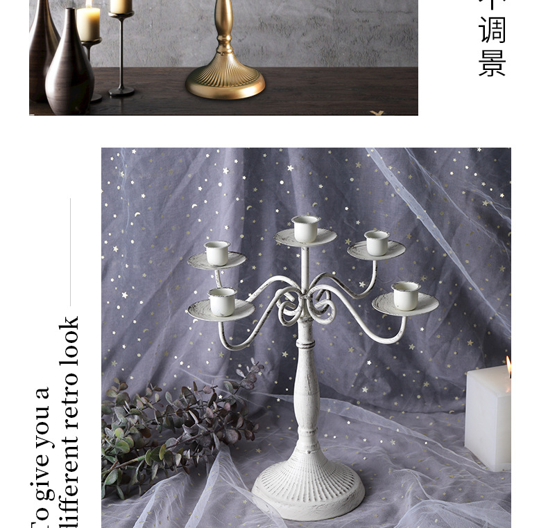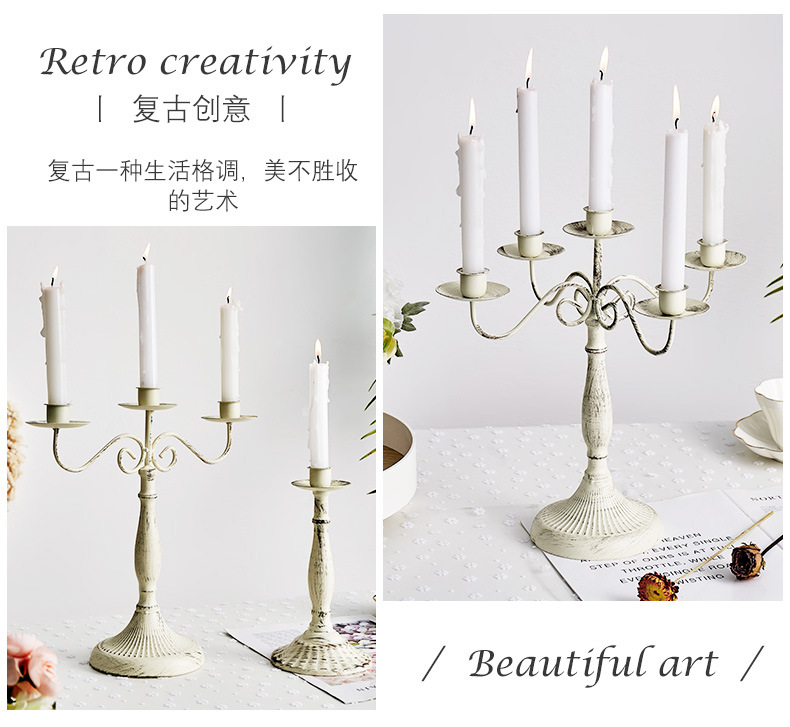 蜡烛台欧式复古做旧烛台摆件生日宴会婚礼餐桌浪漫晚餐拍摄道具