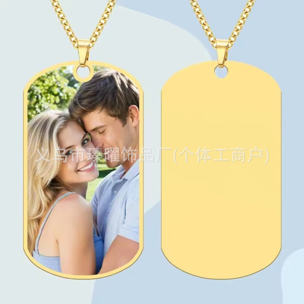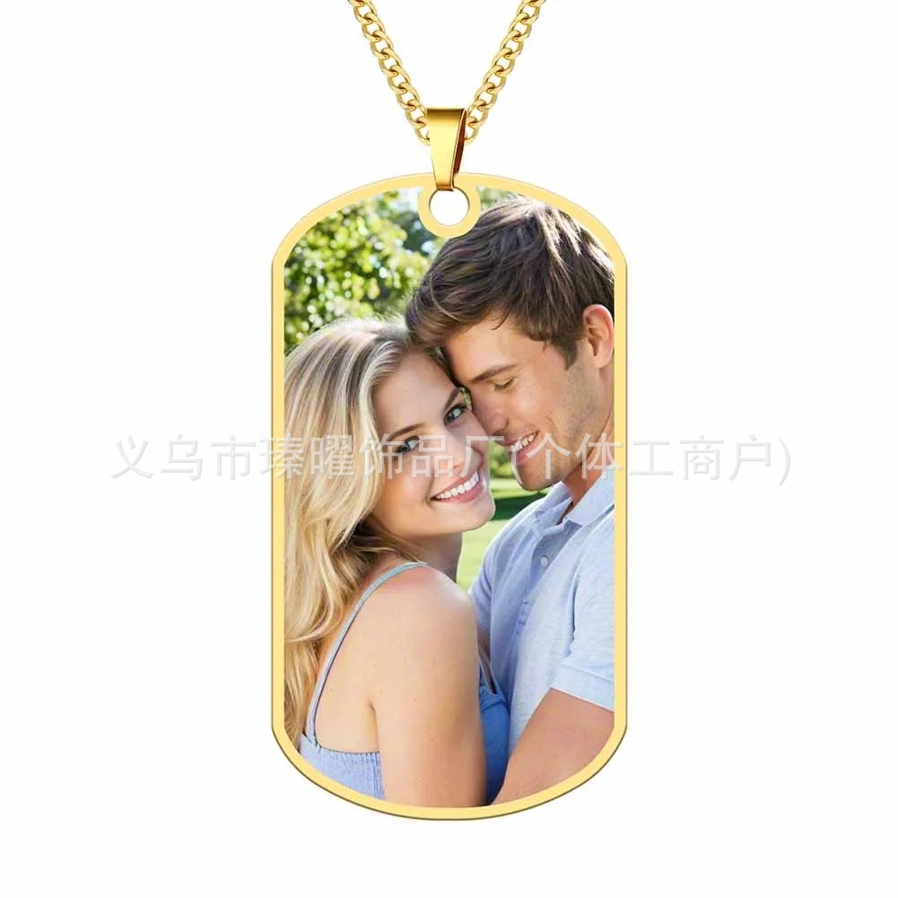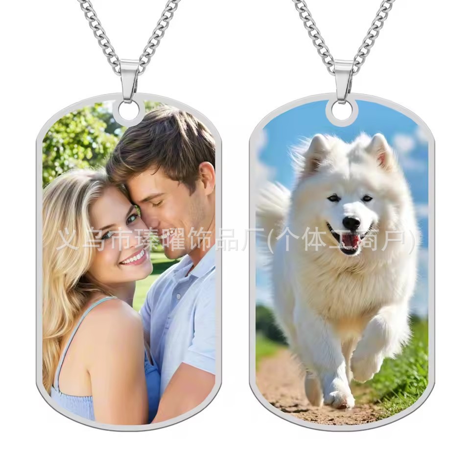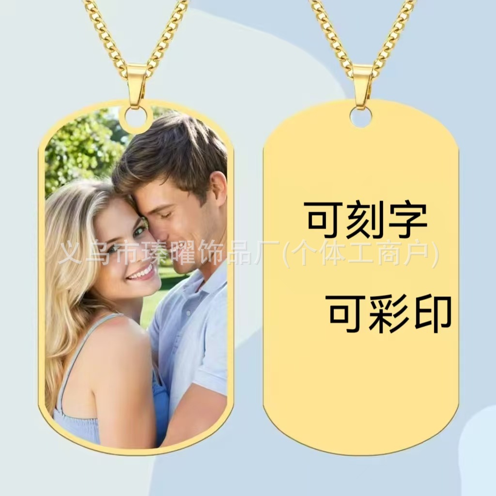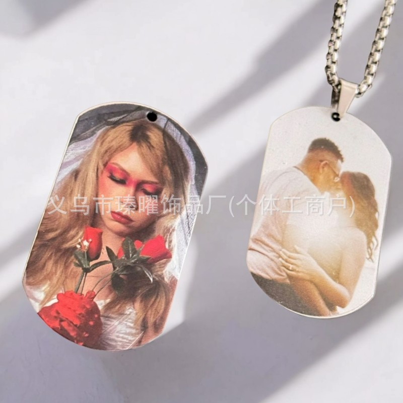 欧美款个性彩印不锈钢军牌项链饰品可刻文字照片金属挂牌镜面吊坠