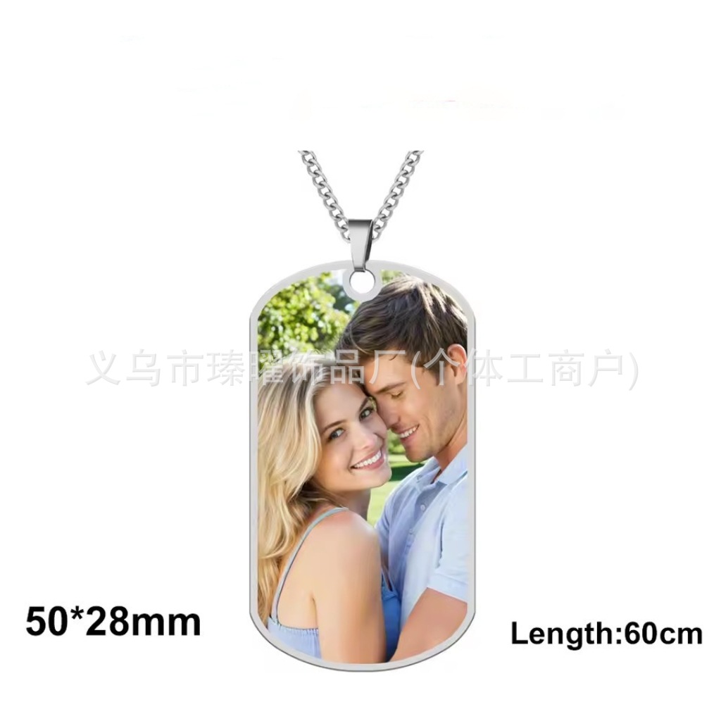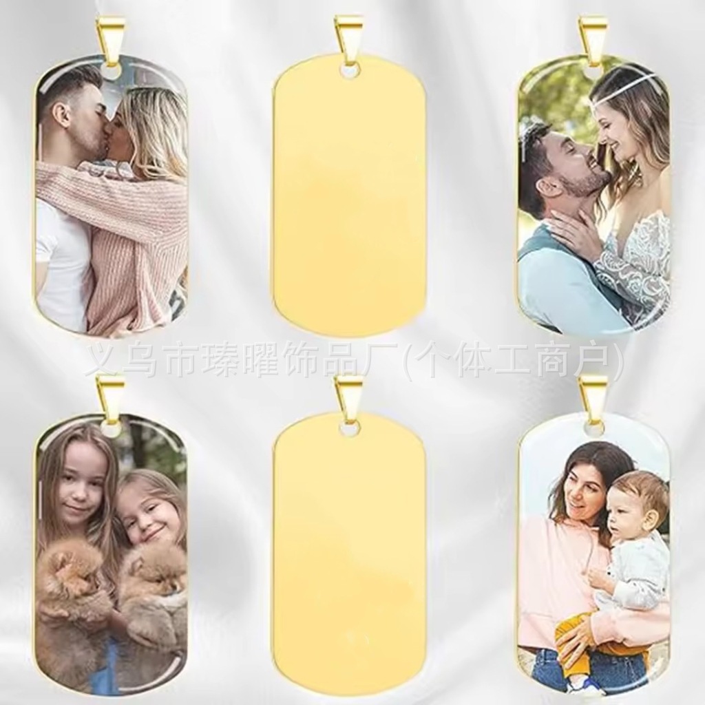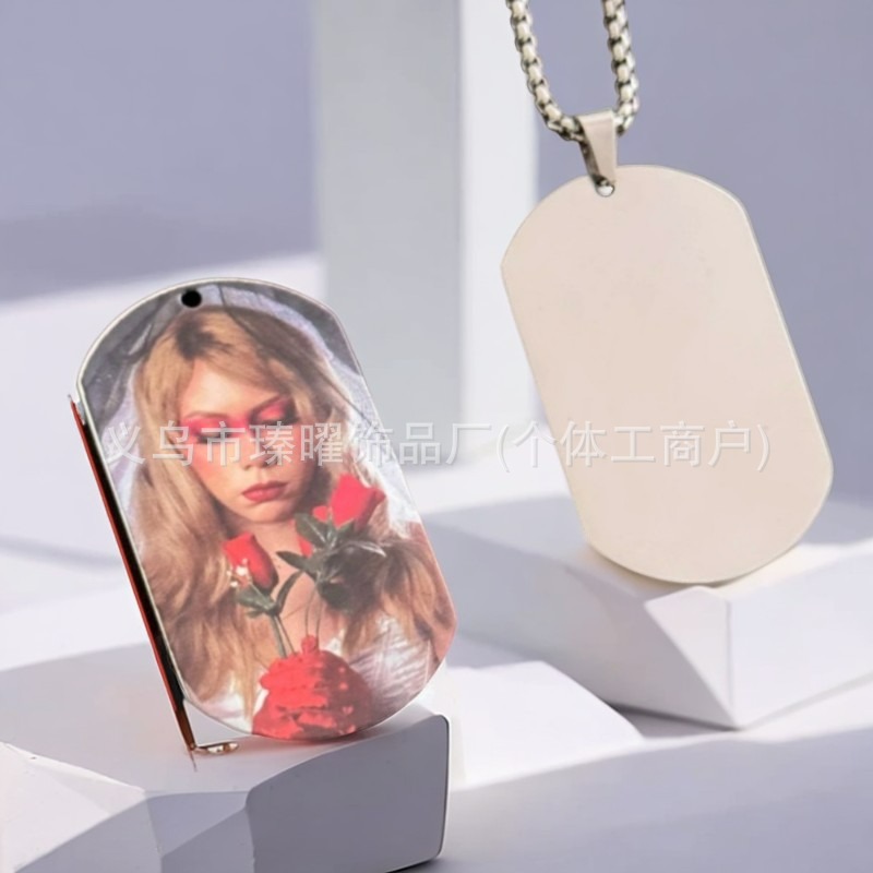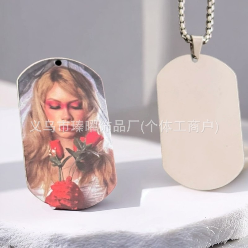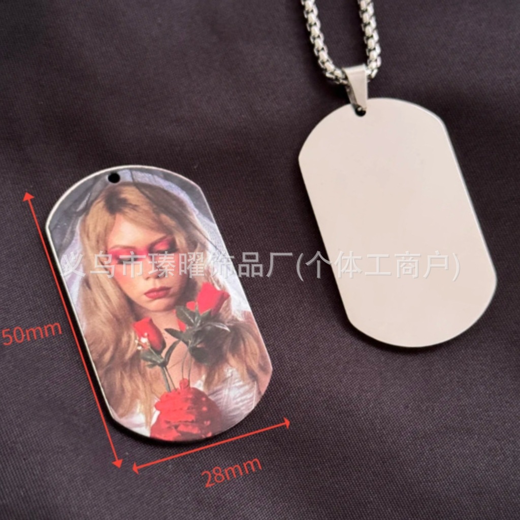 欧美款个性彩印不锈钢军牌项链饰品可刻文字照片金属挂牌镜面吊坠